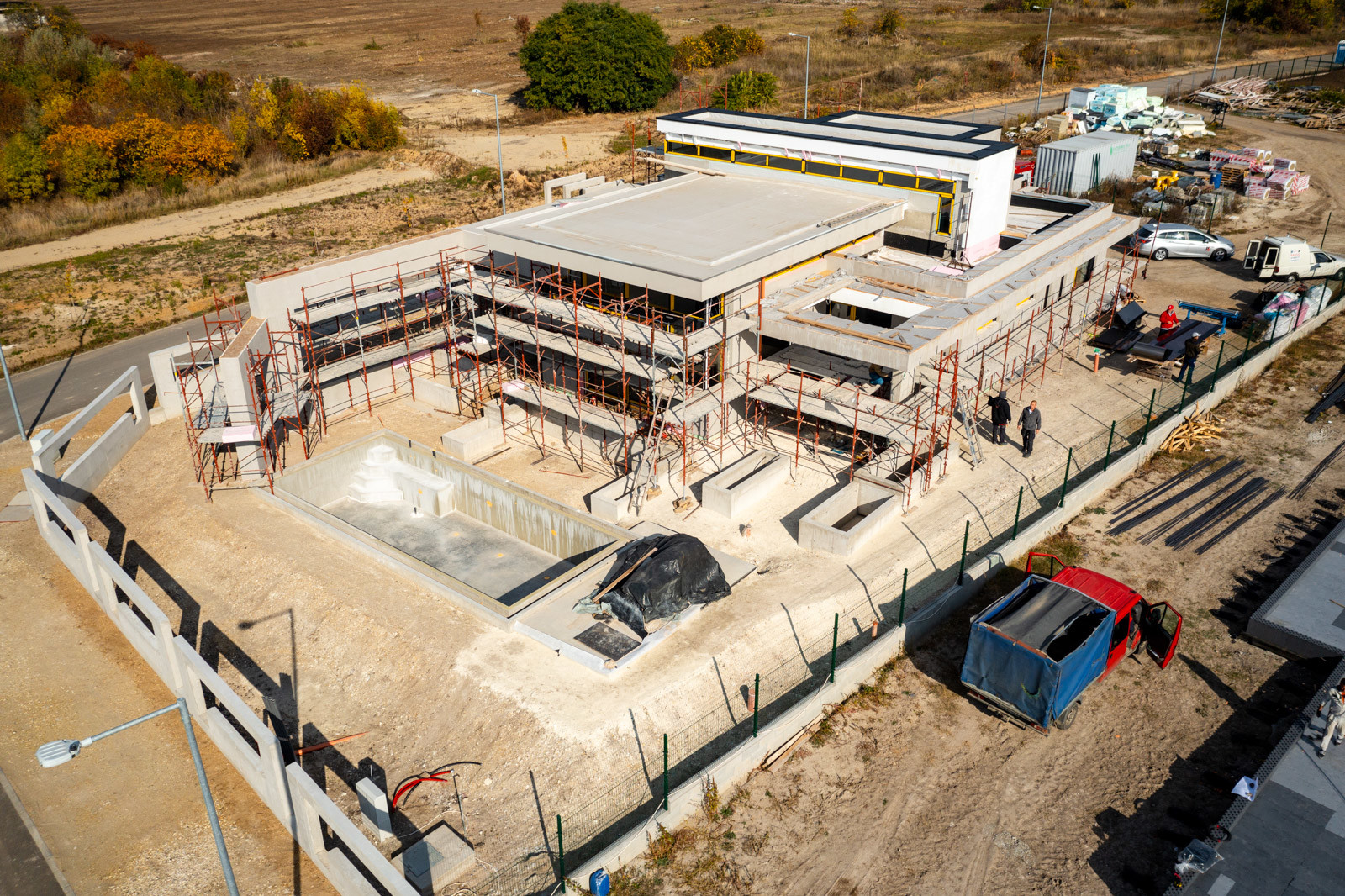 Az ökopark közintézményi részében a háromcsoportos óvoda és a kétcsoportos bölcsőde épületének földmunkái a Scorpio-Trans Kft. kivitelezésében az október 18-i héten kezdődtek meg, a szerkezetépítési munkákat pedig a B Build&Trade Kft. projektvezetői irányításával novembertől végzik.