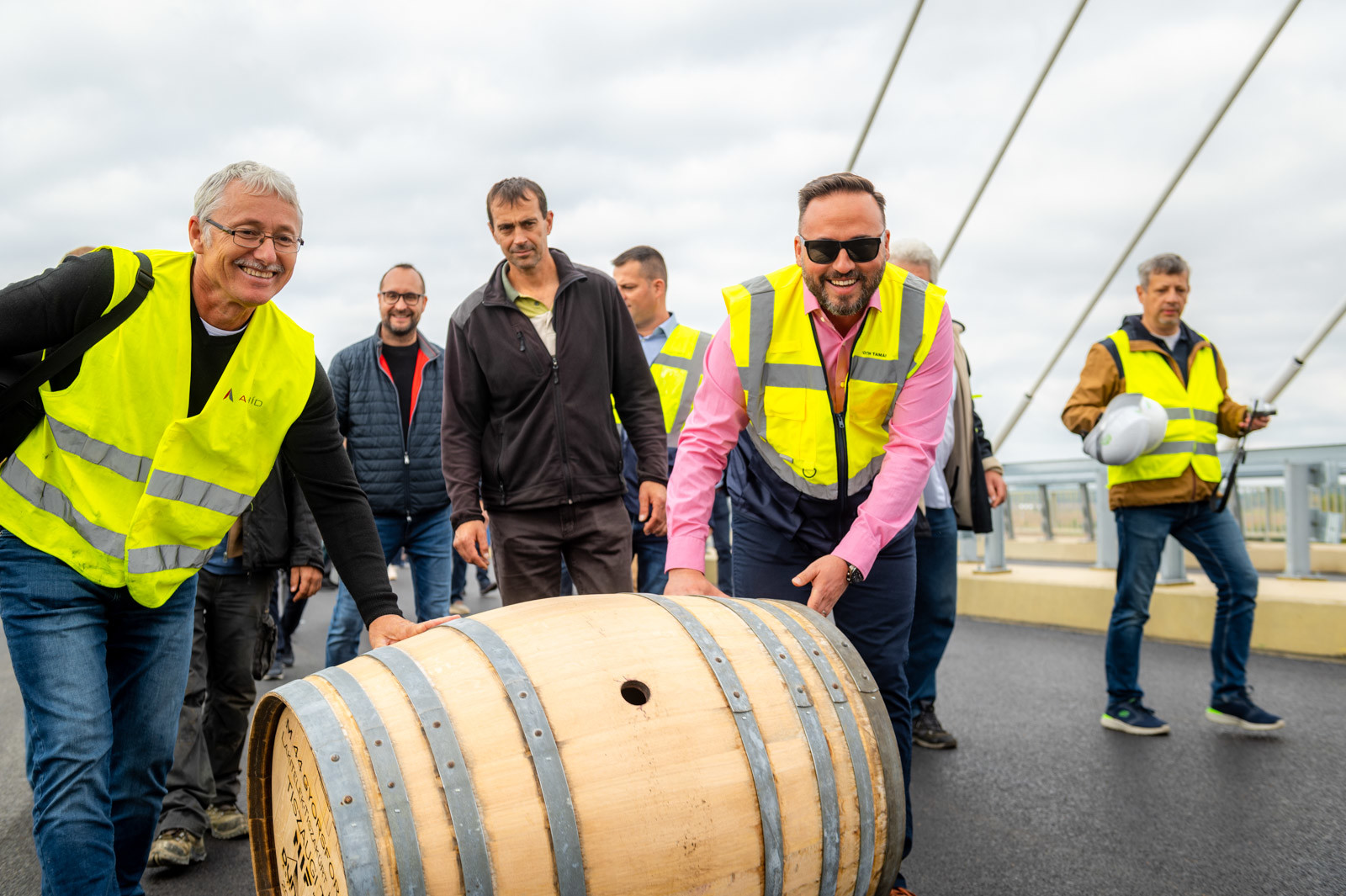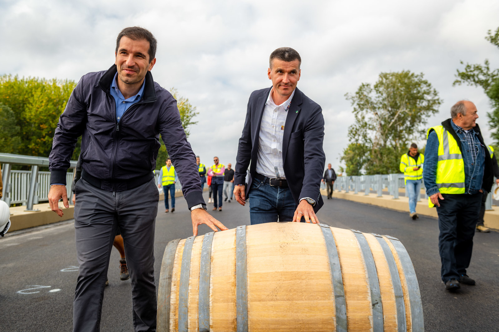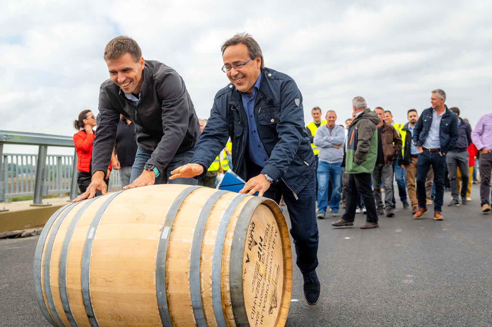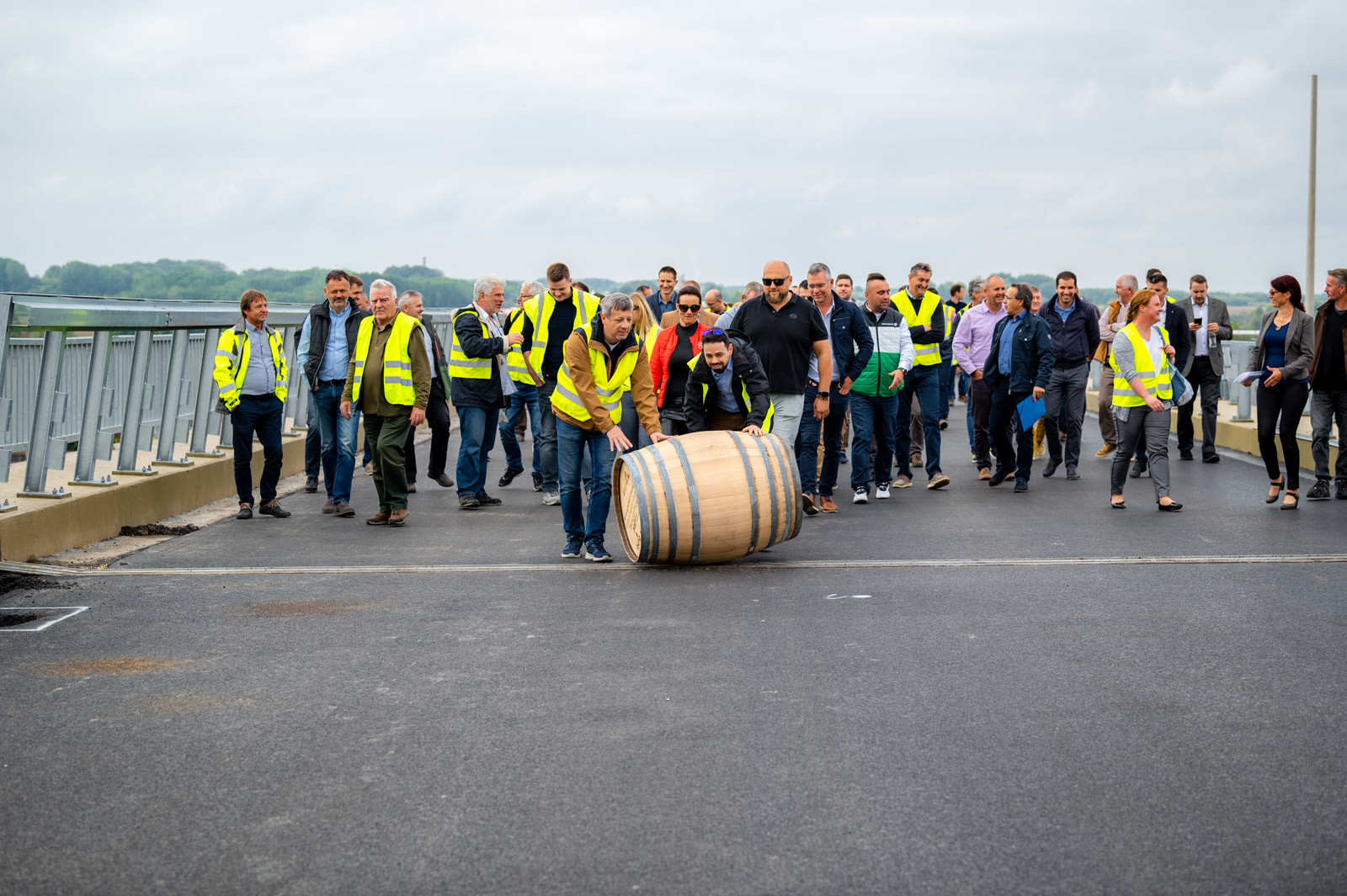 Az ünnepélyes hordógurításon felszólalt Varga Antal, a Duna Aszfalt ügyvezetője és Sal László, az A-Híd vezérigazgatója.