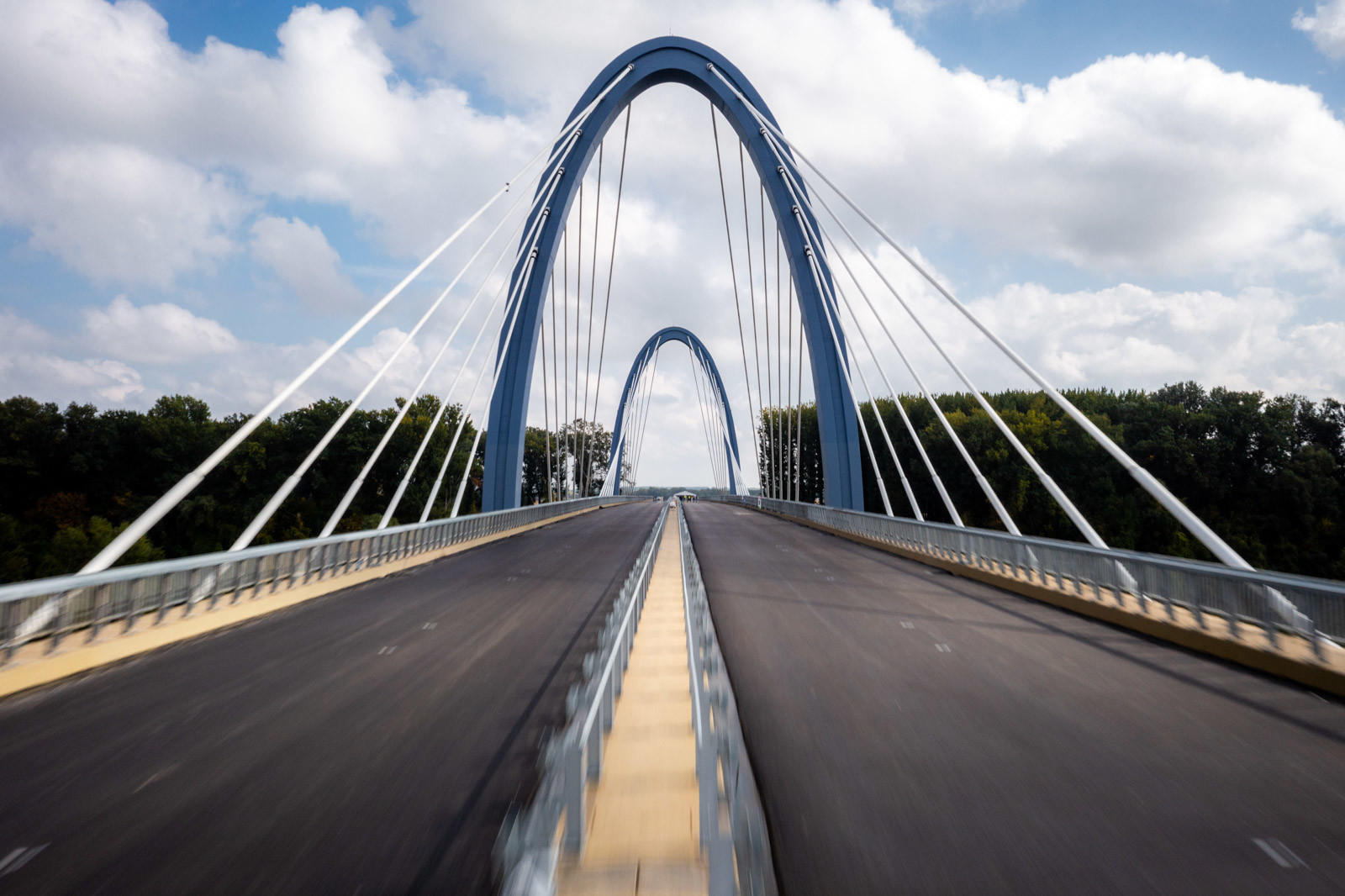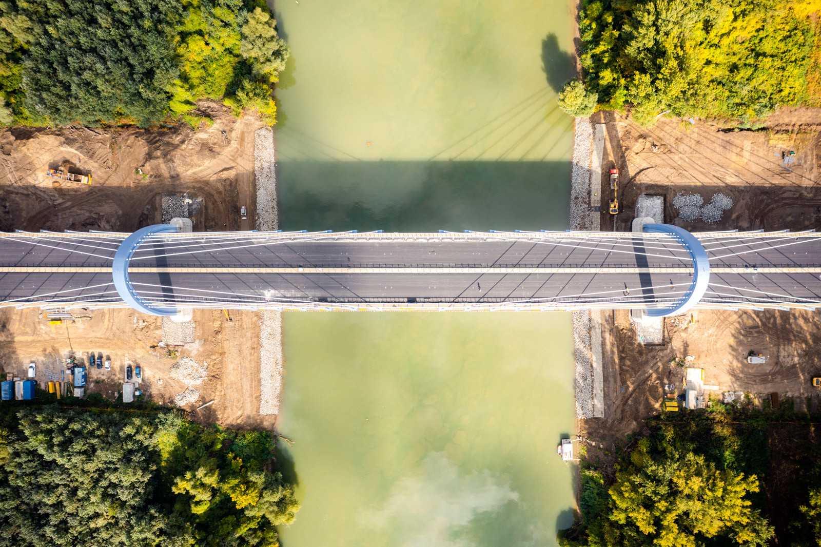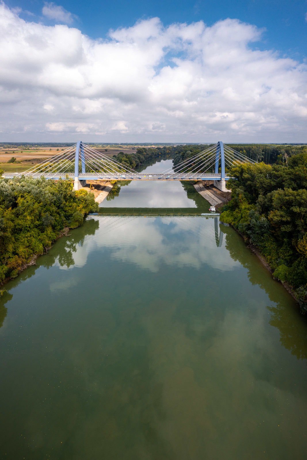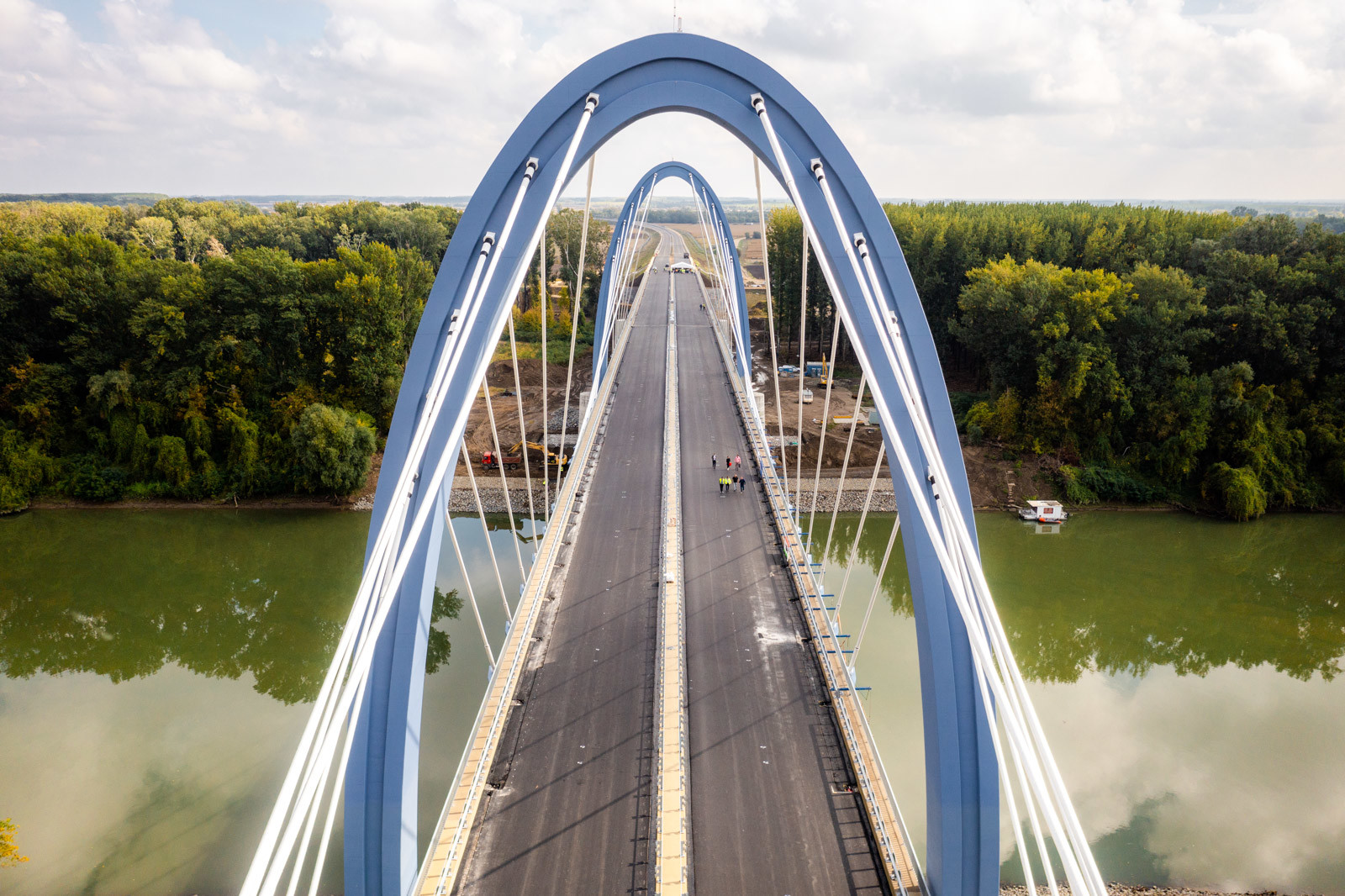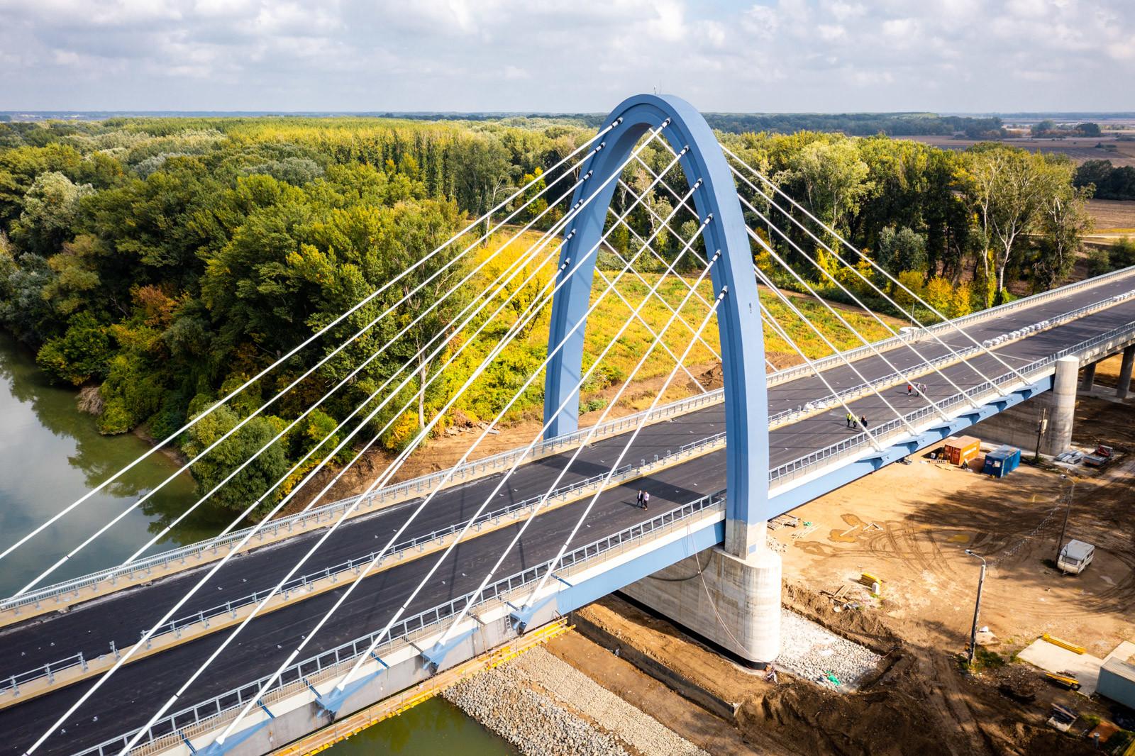 A Nemzeti Infrastruktúra Fejlesztő Zrt. beruházásával és a Duna Aszfalt Zrt. generálkivitelezésével megvalósuló híd építése a végéhez közeledik, már csak a befejező munkálatok vannak hátra.