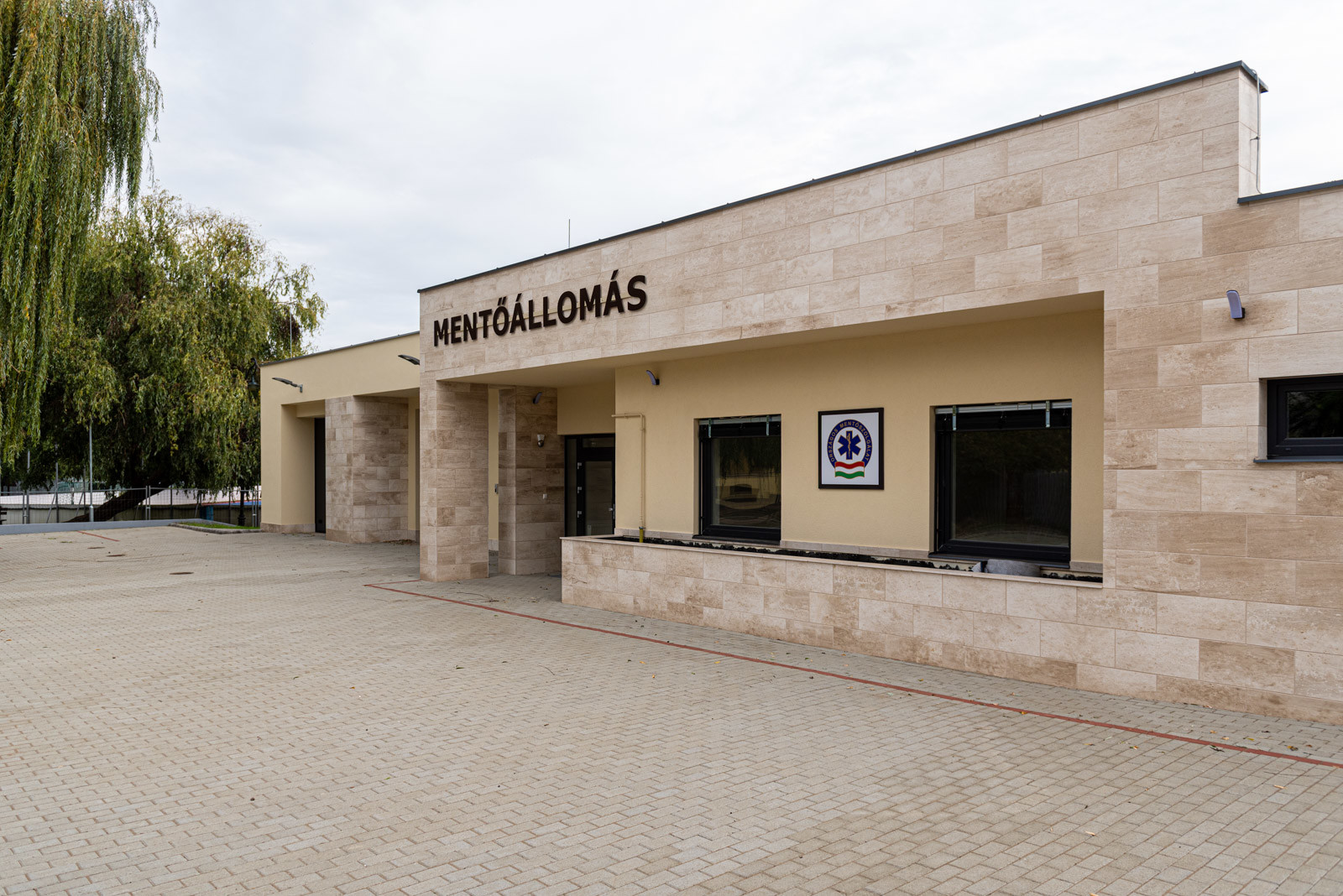 Jelenleg már nem folyik helyszíni munkavégzés, a mentőállomás elkészült, a használatbavételhez szükséges engedélyezési eljárást elindította a megrendelő. Azonban egy pótmunka még hátravan: a területre történő bejutást biztosító kétszárnyú kaput cserélni szükséges az új OMSZ előírásoknak megfelelő szekcionált ipari kapura. Ennek folyamata jövő év elején zárul le.