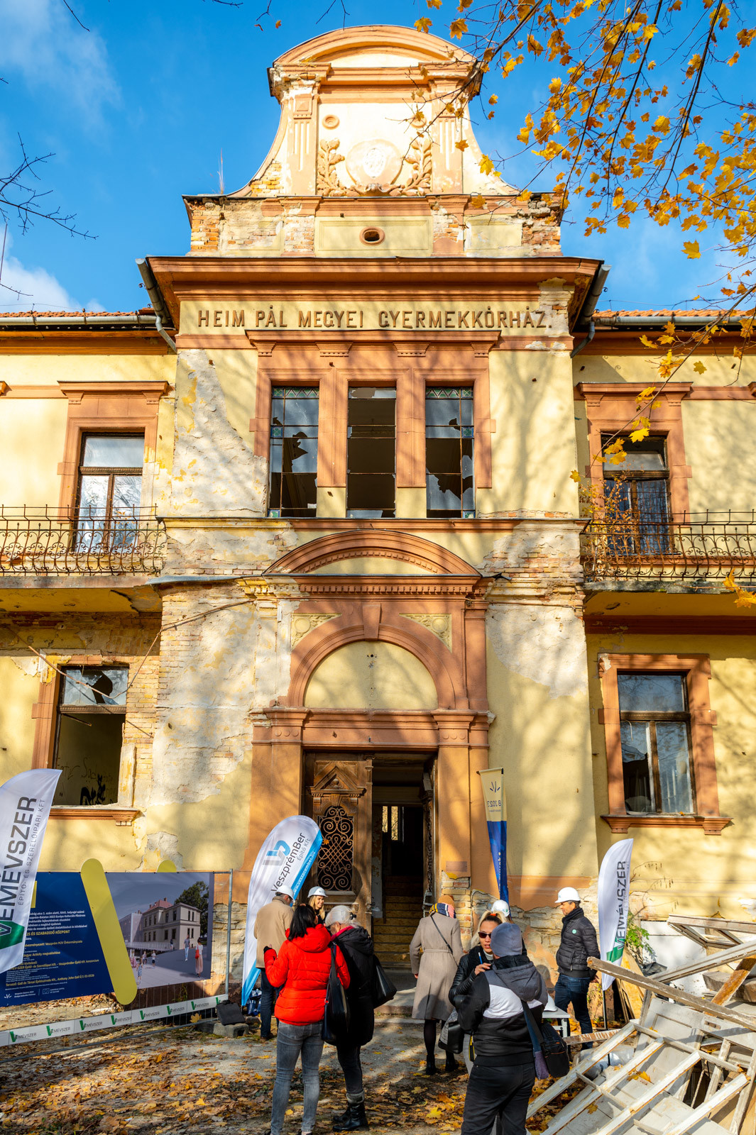 A veszprémi Magyar Királyi Állami Gyermekmenhelyet 1904-ben nyitották meg, az 1954. január 1-jétől Heim Pál Gyermekkórházként, később pedig, 1977 és 1995 között, a bezárásáig a veszprémi Csolnoky Ferenc Kórház gyermekosztályaként működött. Az ingatlanegyüttest 2007-ben a szomszédos egyetem kapta meg tudományos kutatás céljából, de a fejlesztési elképzelések végül nem valósultak meg, így tovább romlott az épület és környezete állapota - áll a rendezvényre kiadott sajtóközleményben.