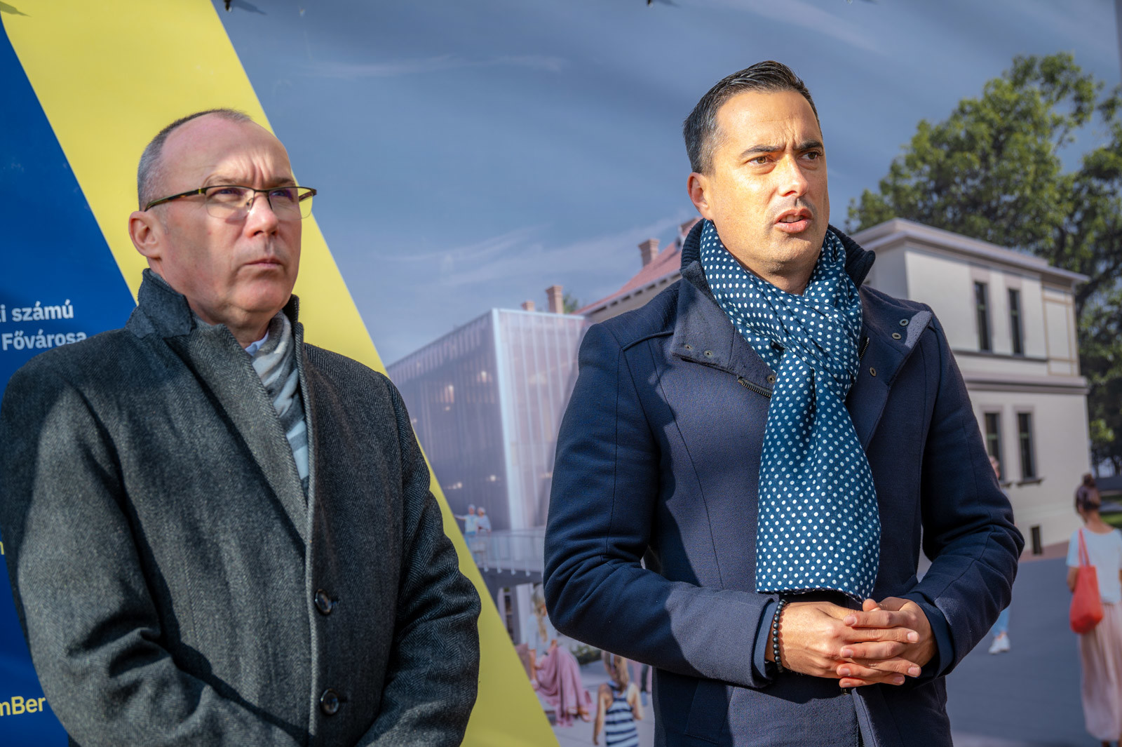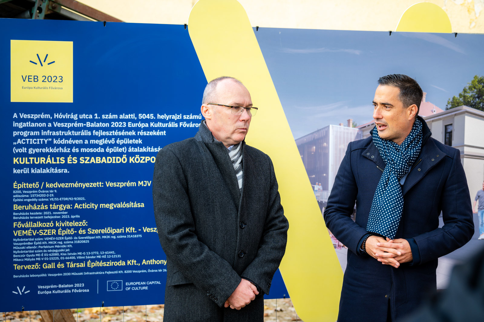 A Veszprém kulturális és építészeti arculatában fontos fejlesztés lényeges elemeit Navracsics Tibor a Veszprém-Balaton 2023 EKF program megvalósításáért felelős kormánybiztos, Ovádi Péter országgyűlési képviselő, Porga Gyula Veszprém Megyei Jogú Város polgármestere és Bélafi László a Hangvilla igazgatója mutatta be a sajtótájékoztatón.