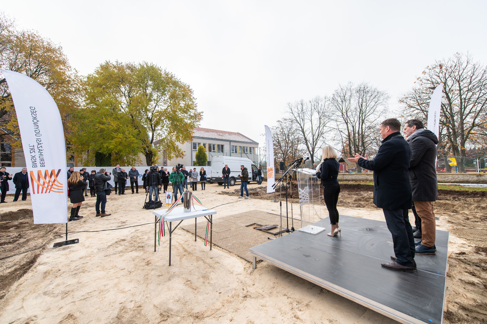 Hozzátette: a vecsési Halmi tér ma a legdinamikusabban fejlődő városrész, ahol nagy szükség van a folyamatos fejlesztésekre, ennek érdekében az elmúlt évtizedekben több intézményt és közparkot is létesítettek. „Igyekeztünk hívek maradni ahhoz a jelmondatunkhoz, hogy sportos és egészséges város lehessünk” – emelte ki a polgármester. Beszédében továbbá kitért arra is, az oktatás kezdetétől fogva rendszeres fejlesztésen esett keresztül az iskola, ezúttal pedig most ezt az 1990-ben épült tornatermet szeretnék egy nagyobbra felváltani.