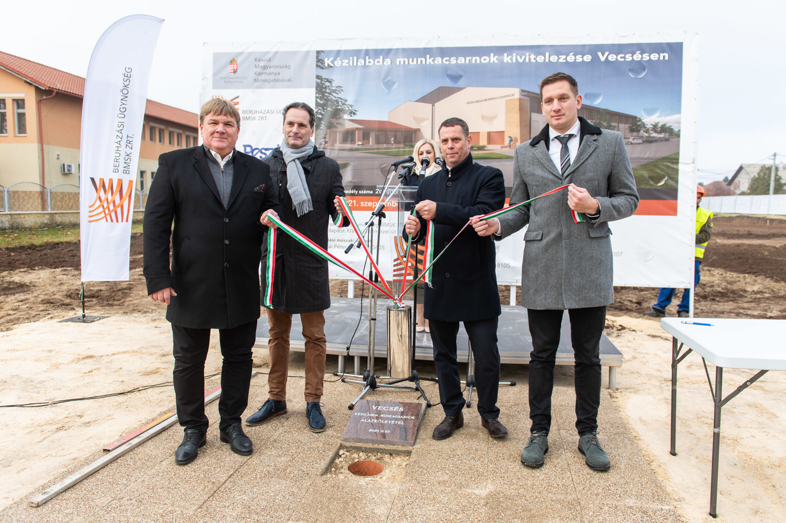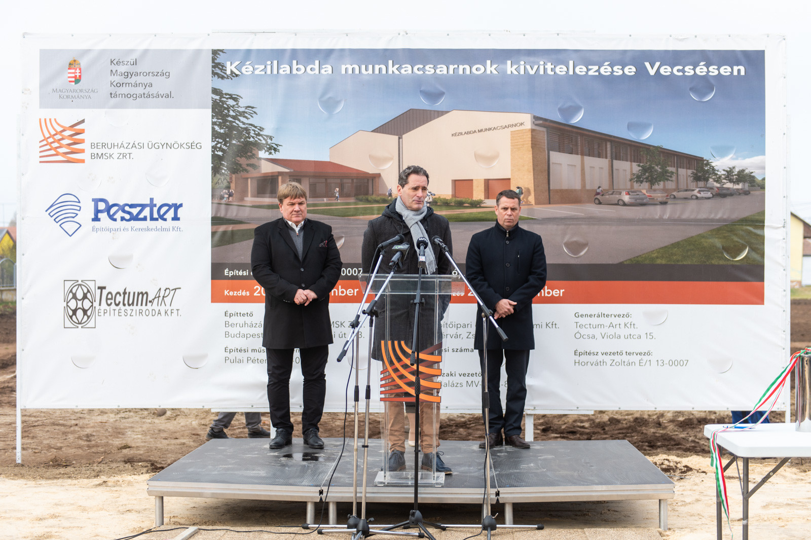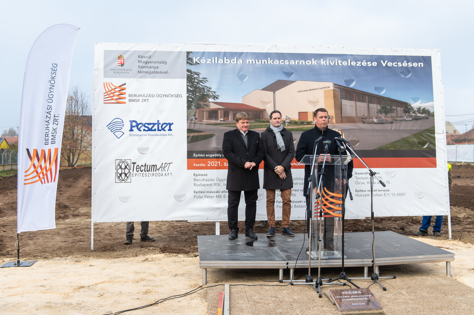 Letették a vecsési Kézilabda Munkacsarnok alapkövét, ezzel hivatalosan is elkezdődött az építkezés a PESZTER Ingatlanforgalmazási, Építőipari és Kereskedelmi Kft. kivitelezésében.