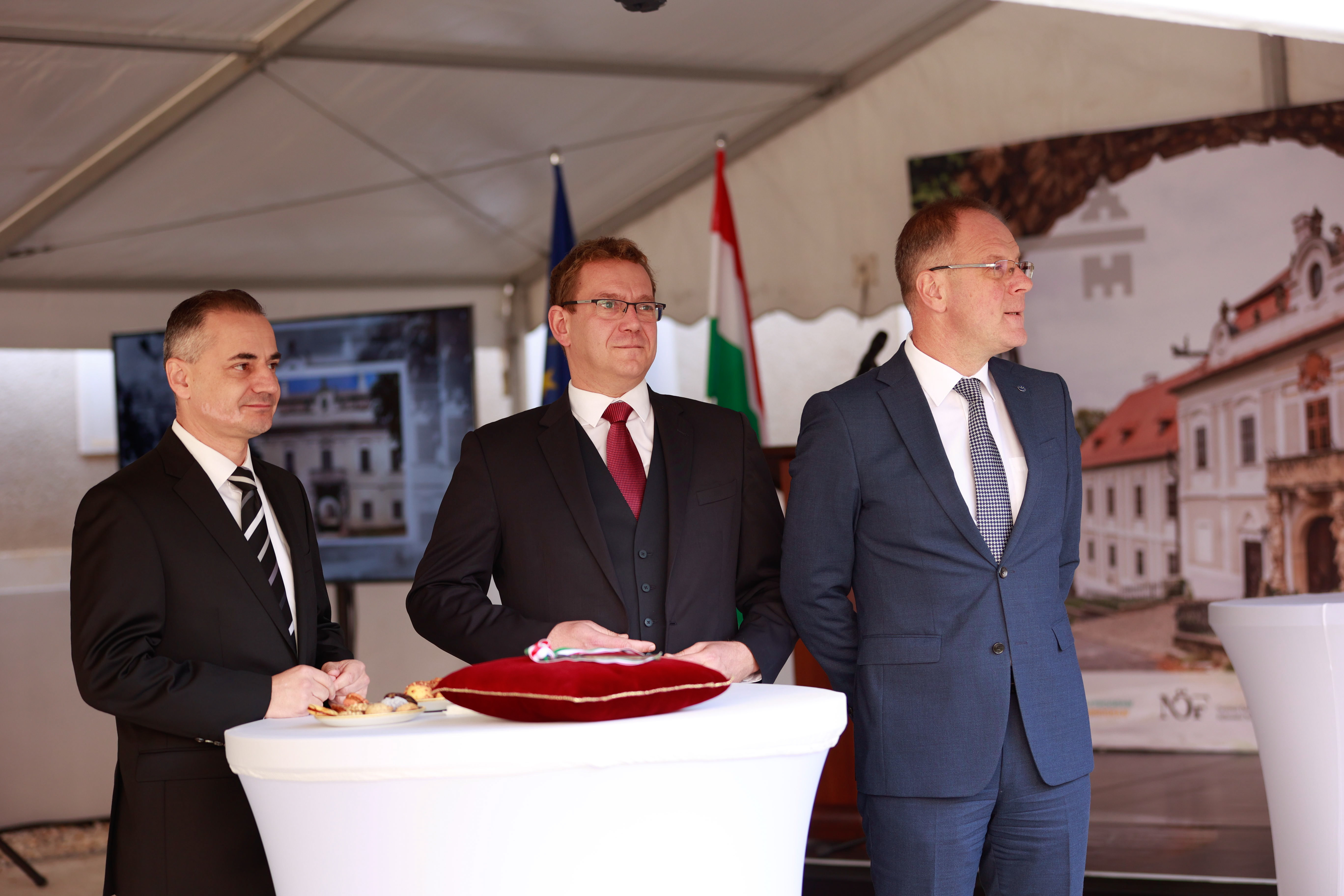 A püspöki palota fejlesztése a NÖF Nemzeti Örökségvédelmi Fejlesztési Nonprofit Kft. koordinációjában, a Nemzeti Kastélyprogram keretein belül valósult meg, összesen 2.043.380.007, - Ft forrásból, részben uniós, részben hazai támogatásból. A kivitelezést a Dunántúli Magasépítő Kft. és az SZ-L BAU Építőipari Kft. végezte, amelyről lapunk már korábban is beszámolt.