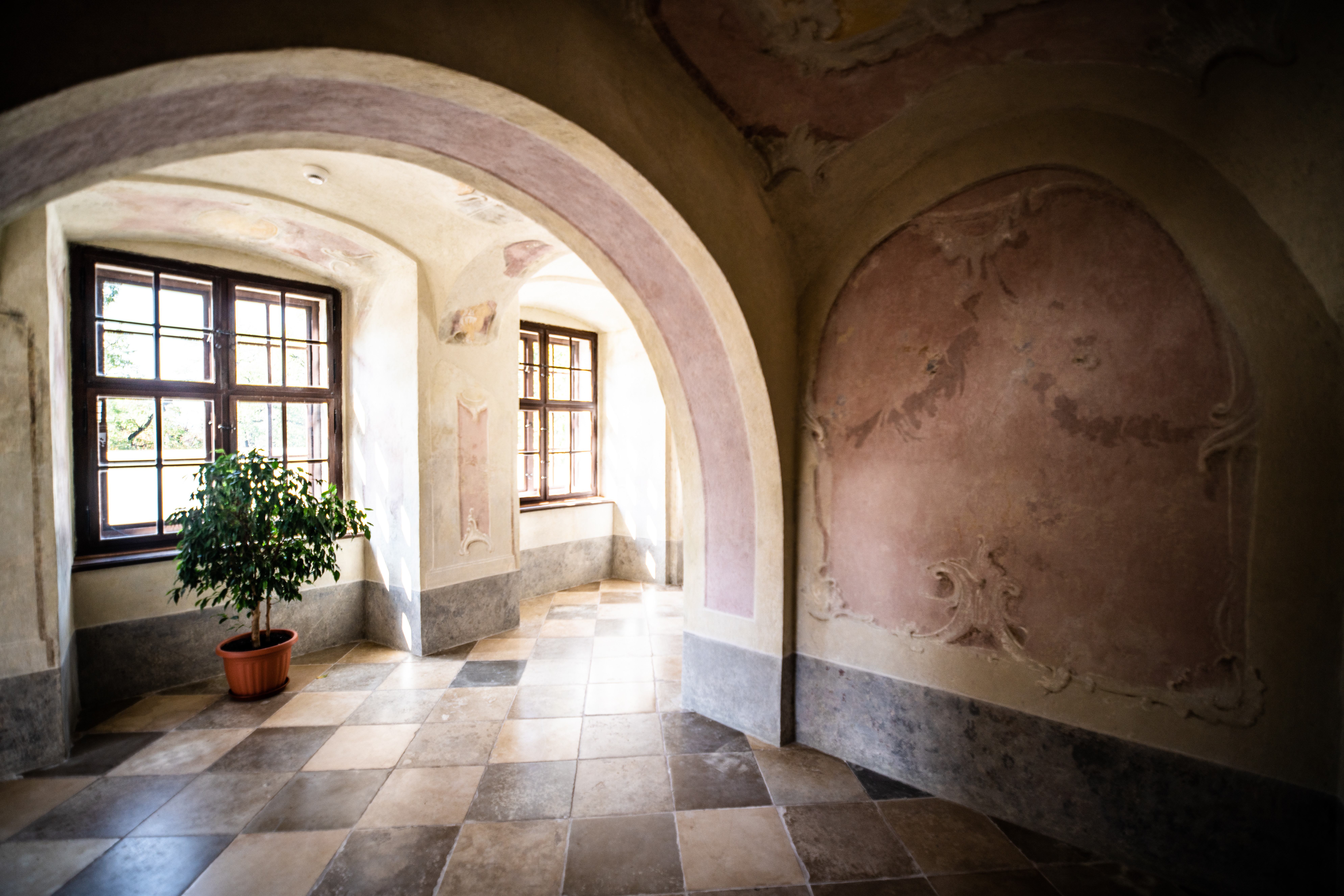 A falképrestaurálási munkákat a legkorszerűbb műemlékvédelmi elvek szerint végezték. A palotában 18. századi rokokó, 19. századi klasszicista és 20. századi neobarokk fal- és mennyezetfestések is láthatók.