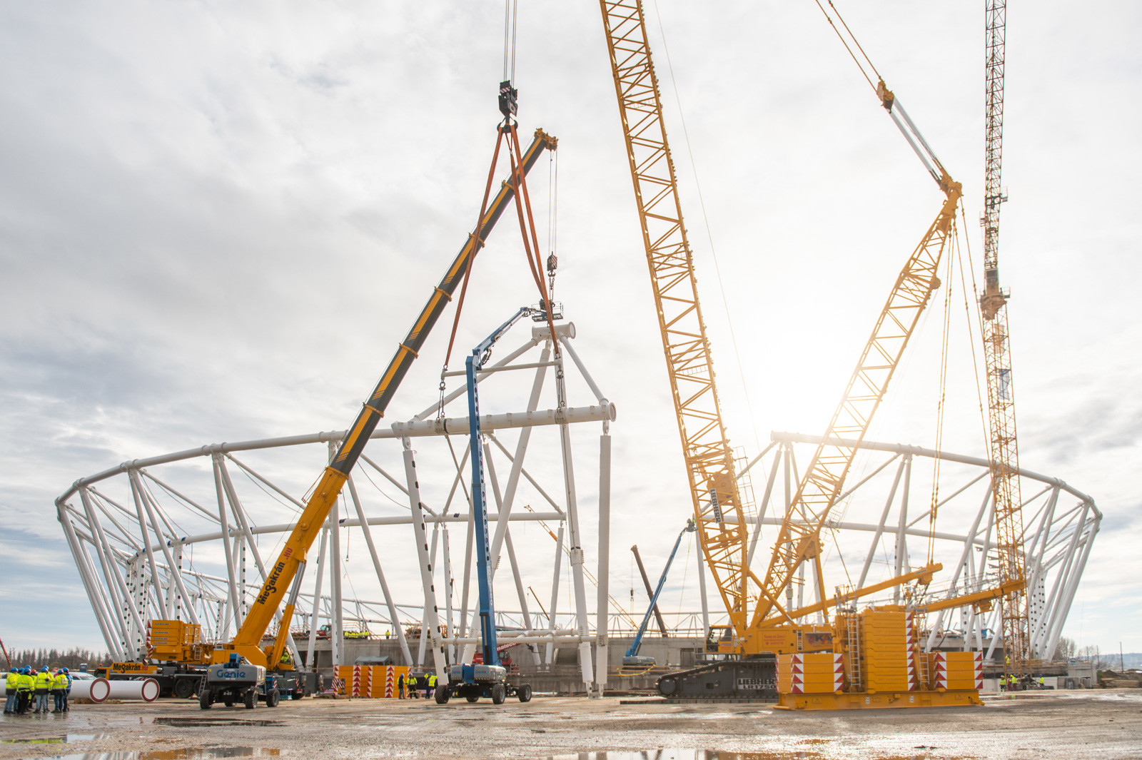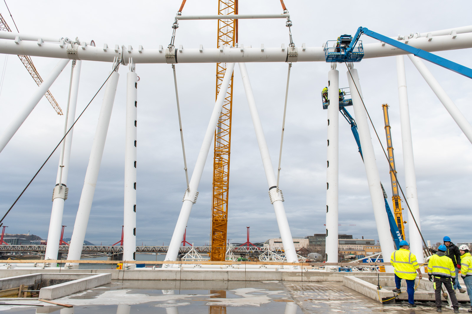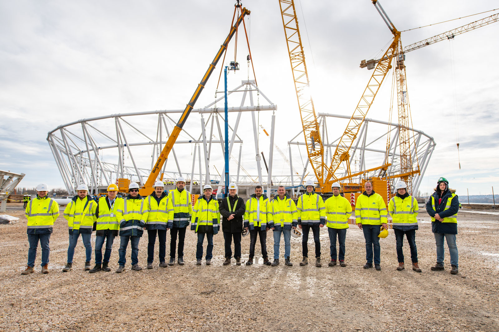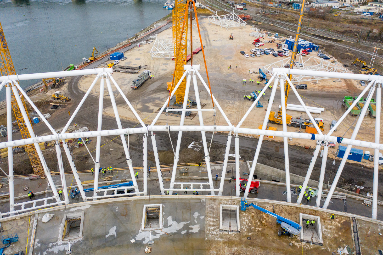 A szakemberek által beemelt gyémánt alakú acél elemből összesen 48 darab került a helyére, mely által a létesítmény elnyerte végleges formáját. A folyamat nemzetközi szinten is kiemelkedő technológiai megoldásokkal valósult meg.
