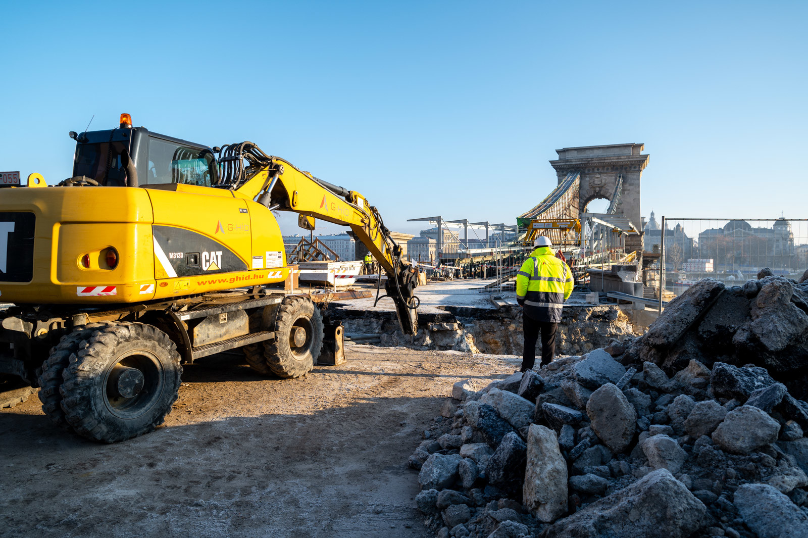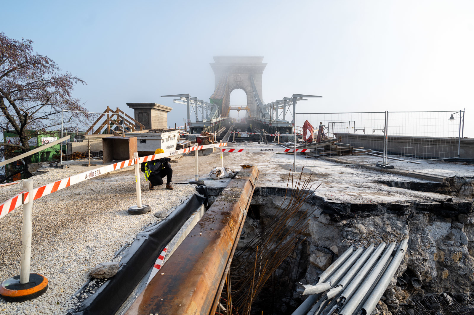 A Lánchíd járdáinak jelentős részét elbontották már, januárban majd a parti nyílásokban dolgoznak a kivitelező A-Híd Zrt. szakemberei a járdák újjáépítésén.