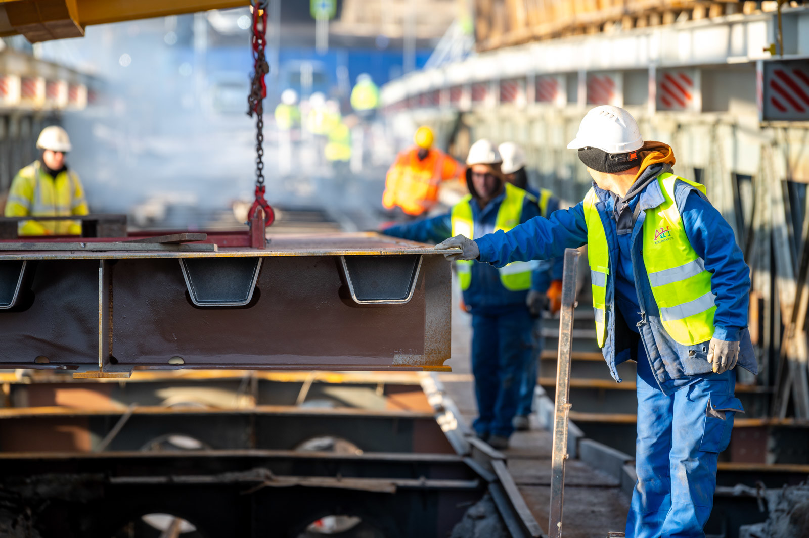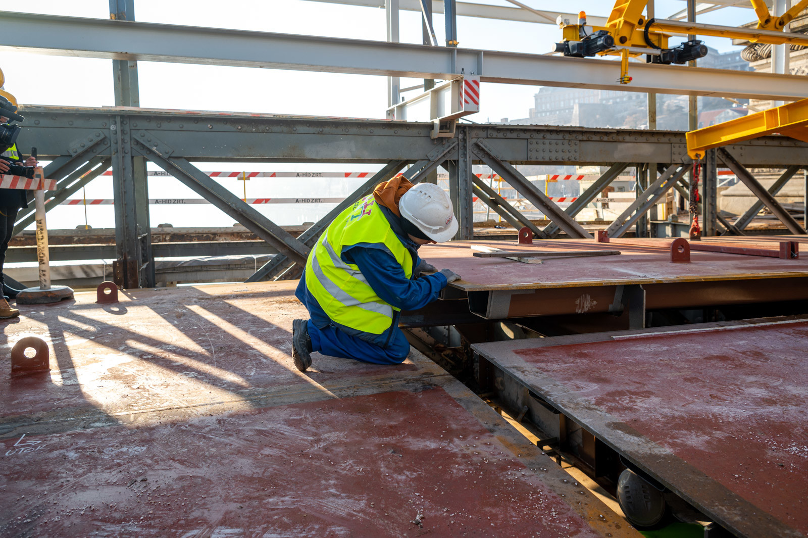A keddi eseményen helyére tették a két hídpillér közötti utolsó pályatáblát a medernyílás fölötti utolsó pályalemez beemelésével.