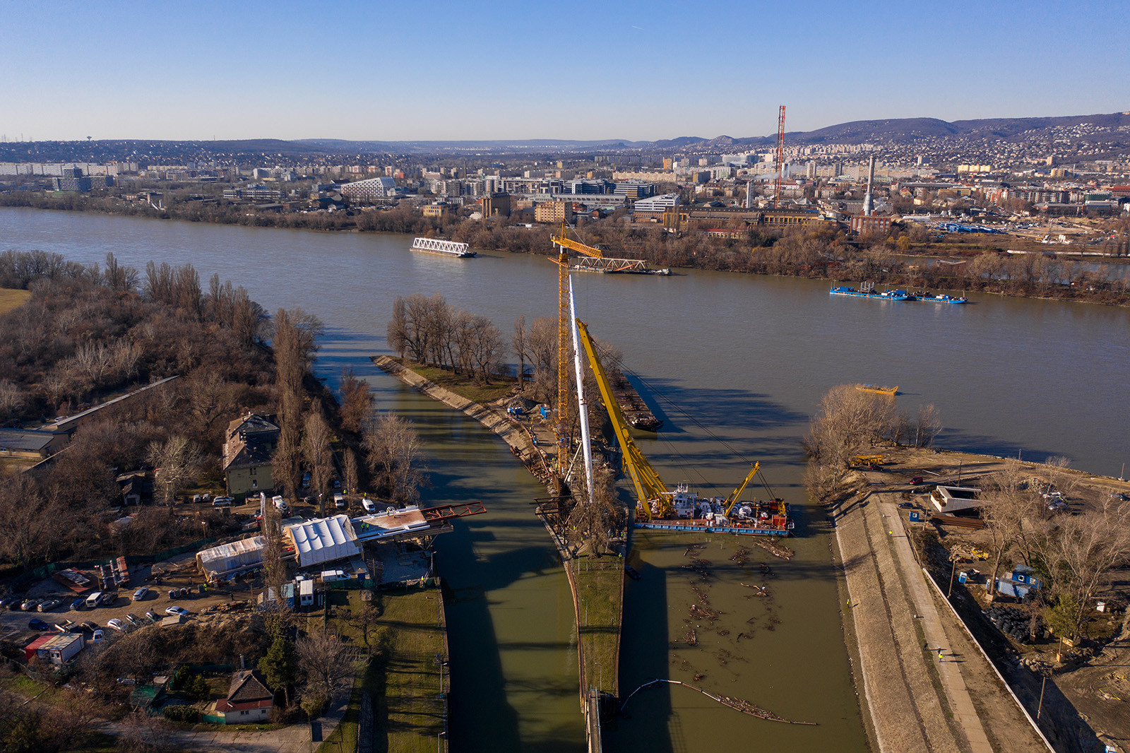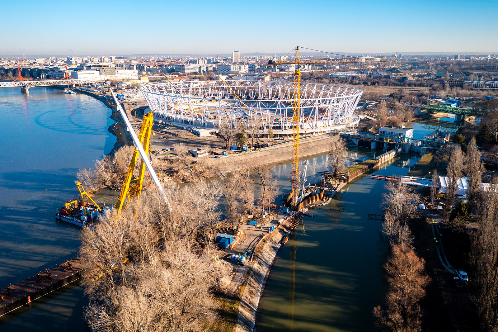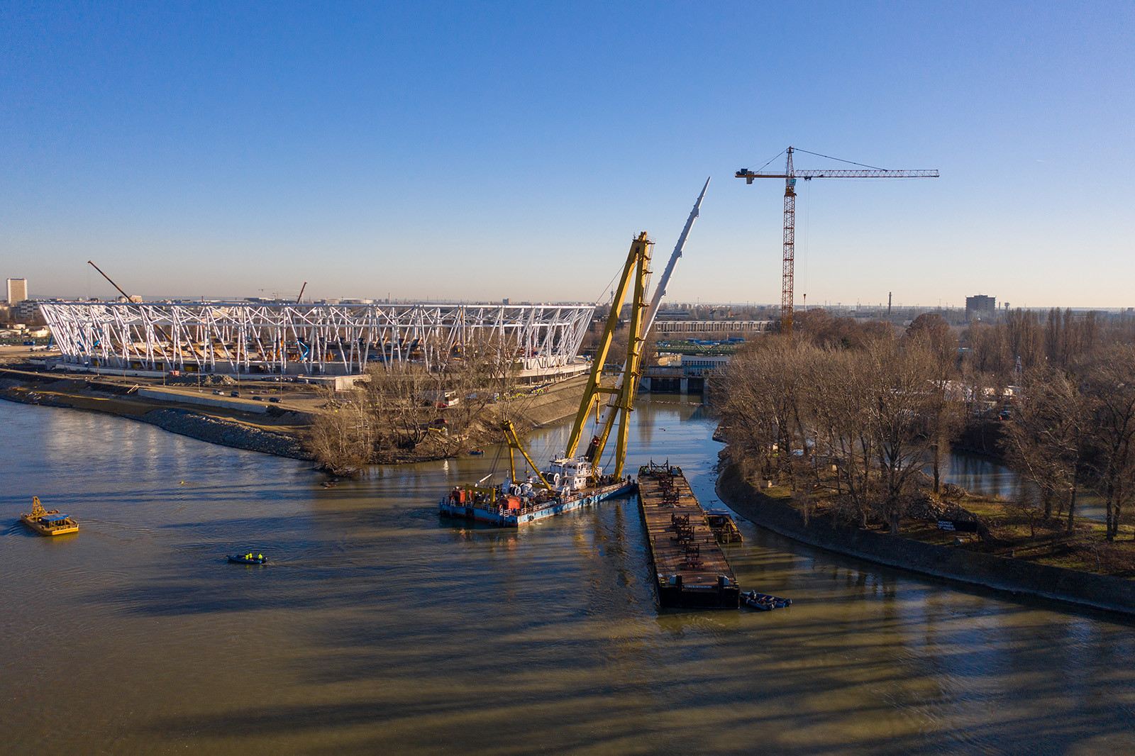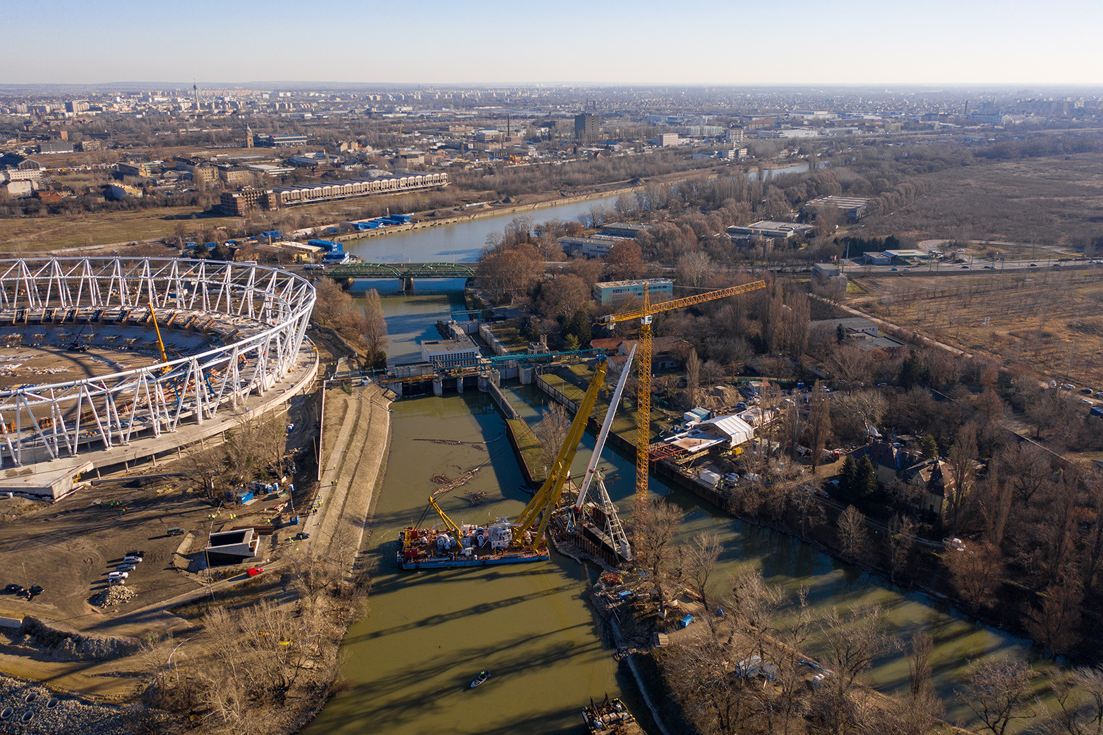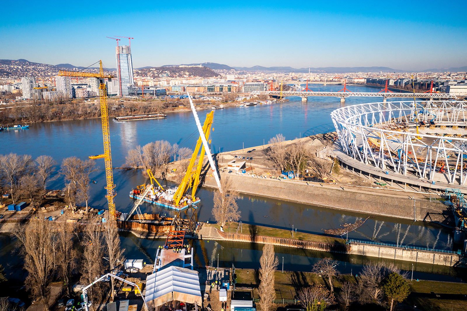 január 7-én megtörtént az Atlétikai Stadion mellett épülő híd pilonjának beemelése.