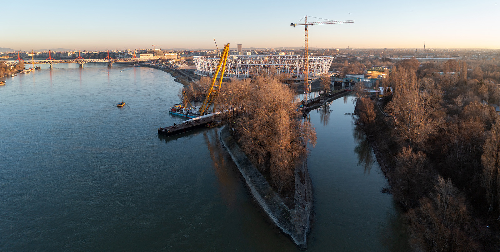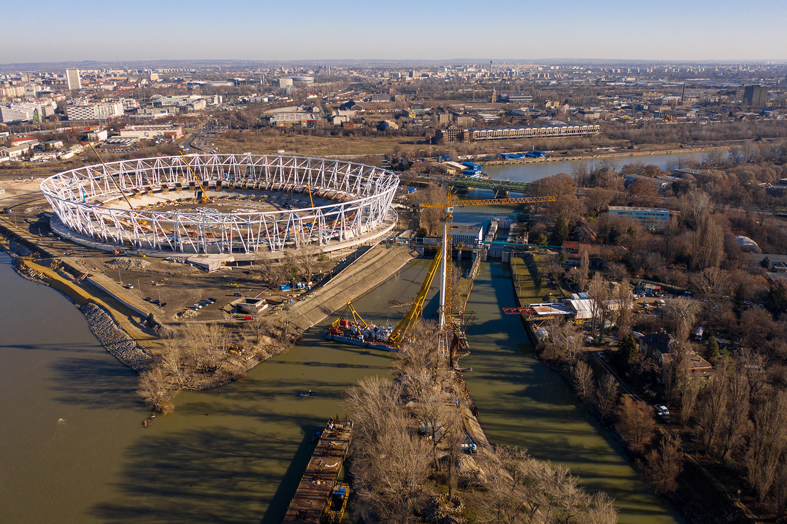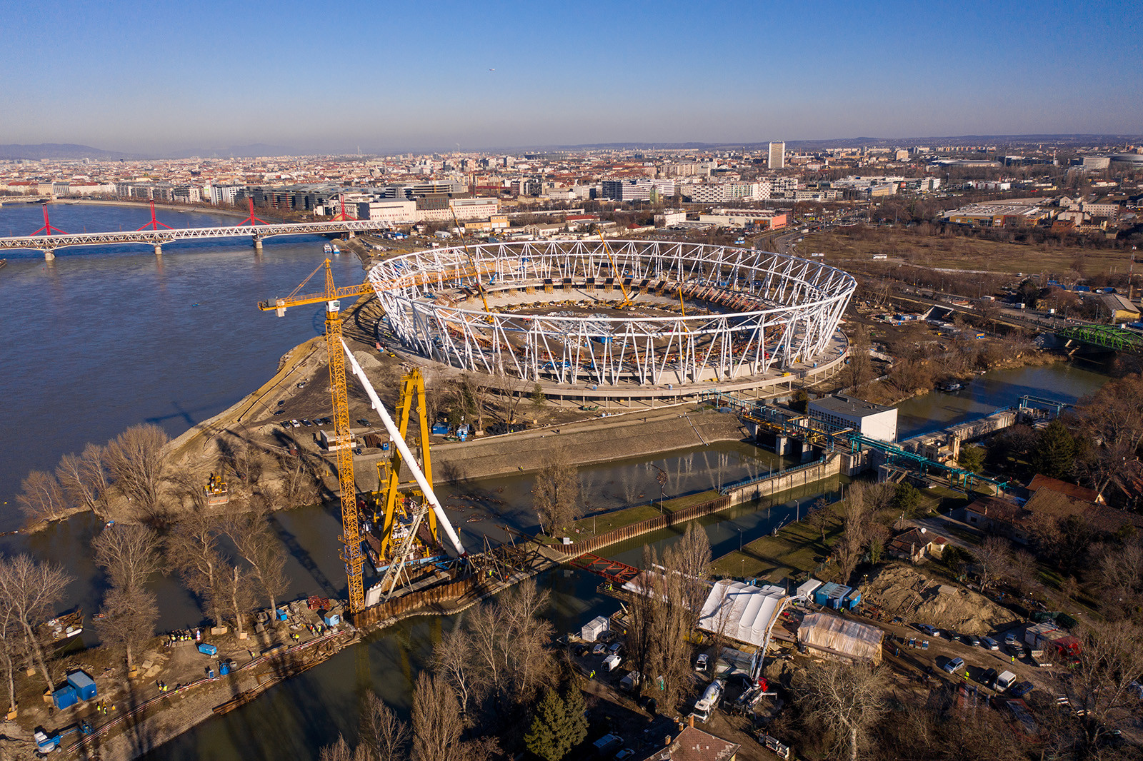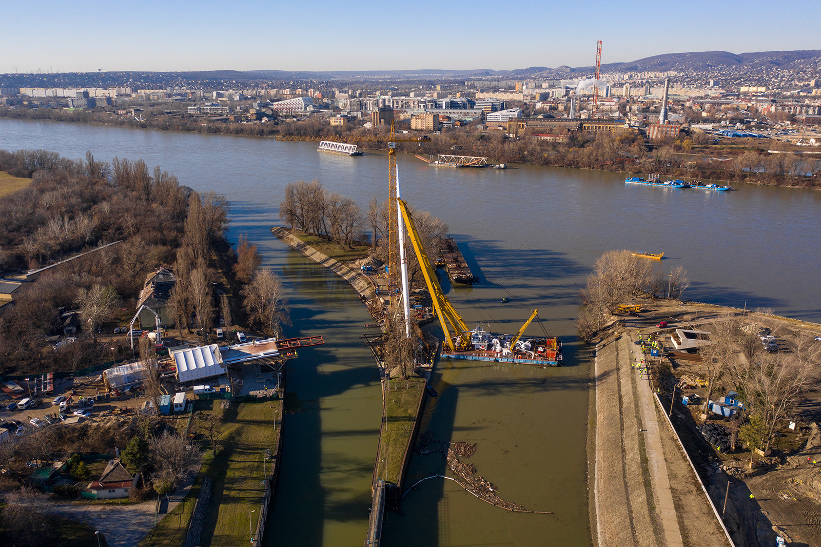 január 7-én megtörtént az Atlétikai Stadion mellett épülő híd pilonjának beemelése.