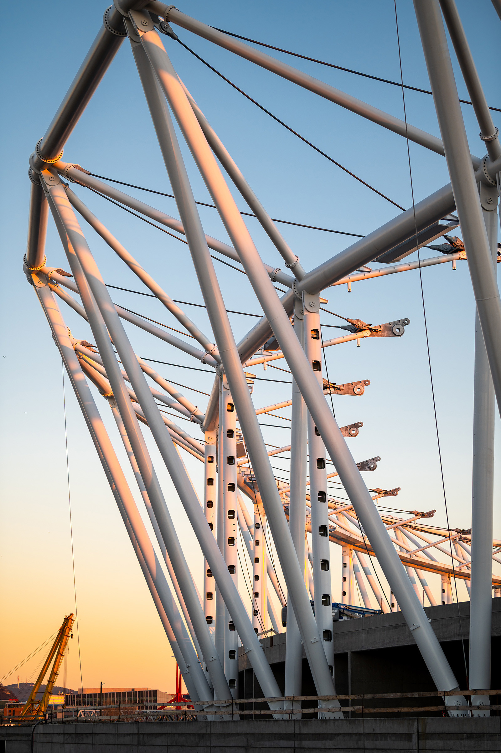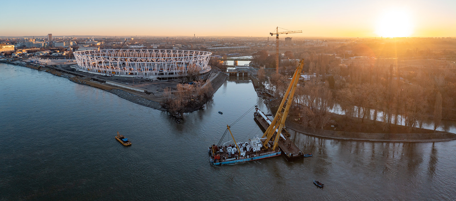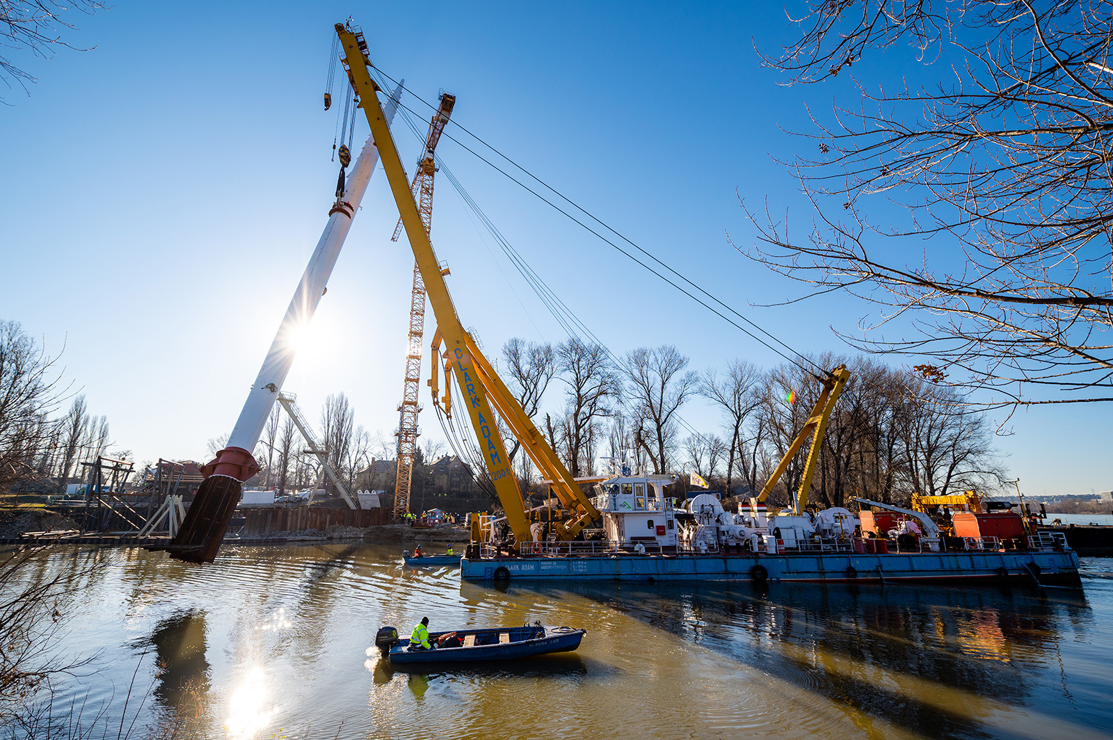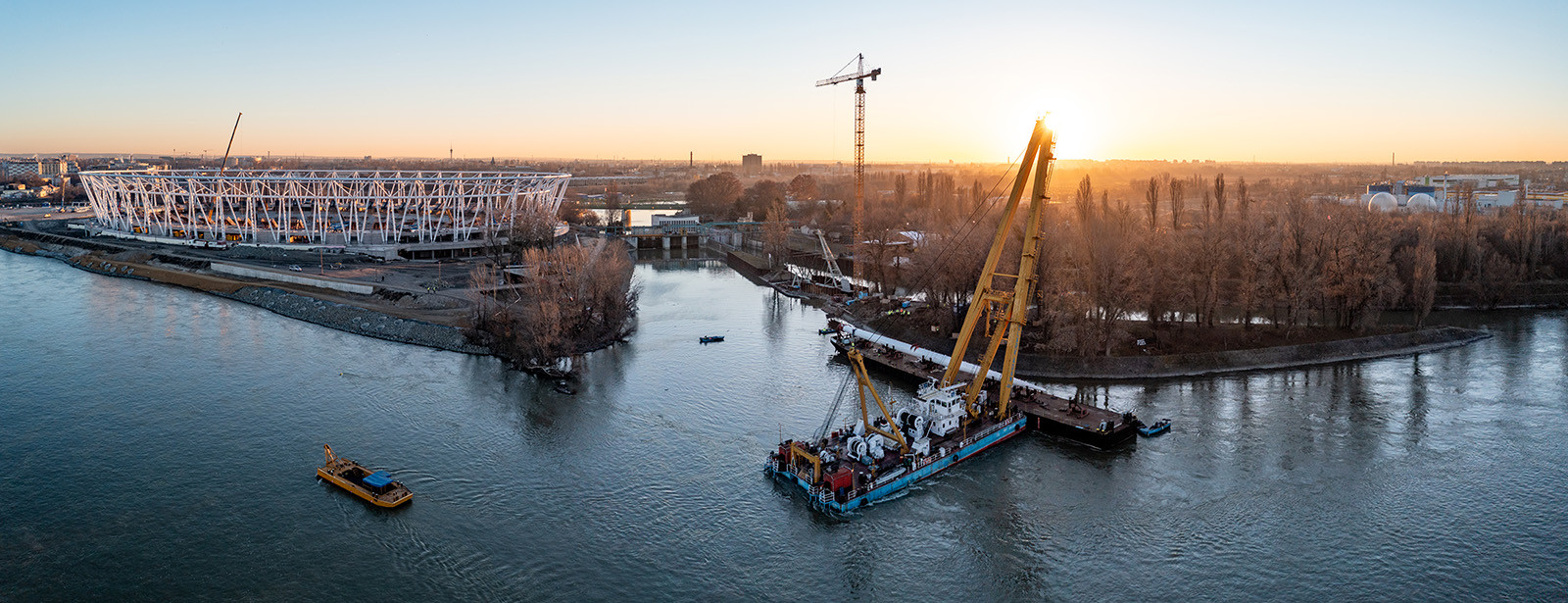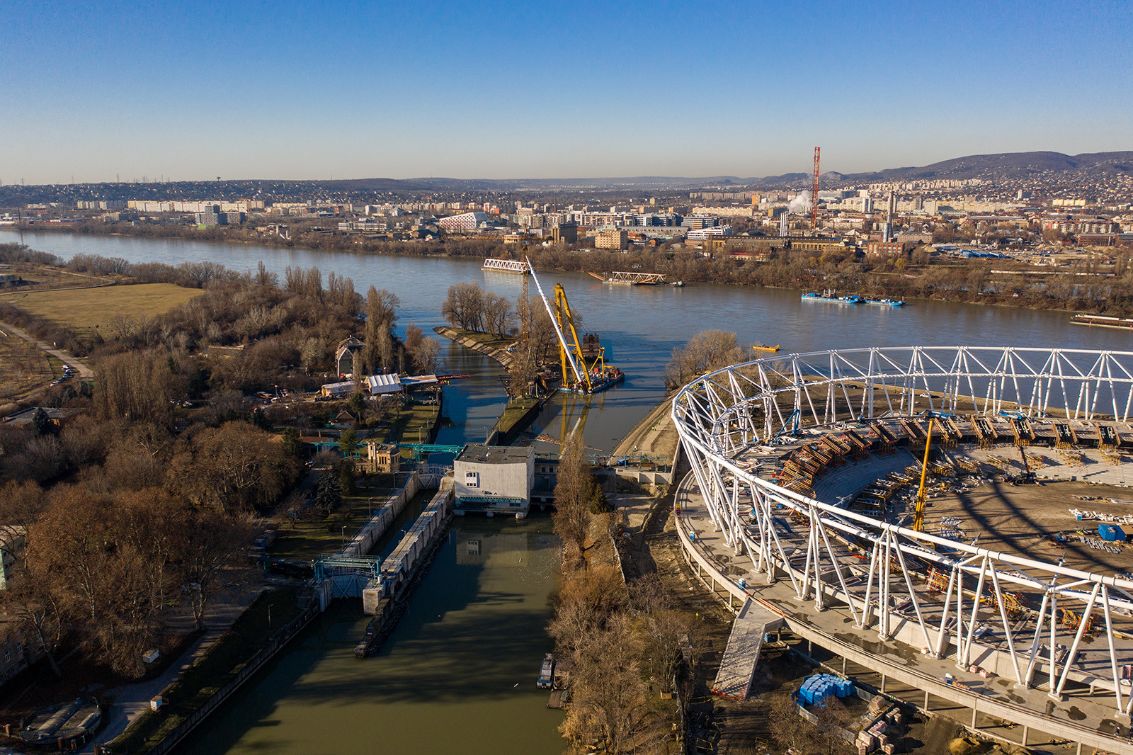 január 7-én megtörtént az Atlétikai Stadion mellett épülő híd pilonjának beemelése.