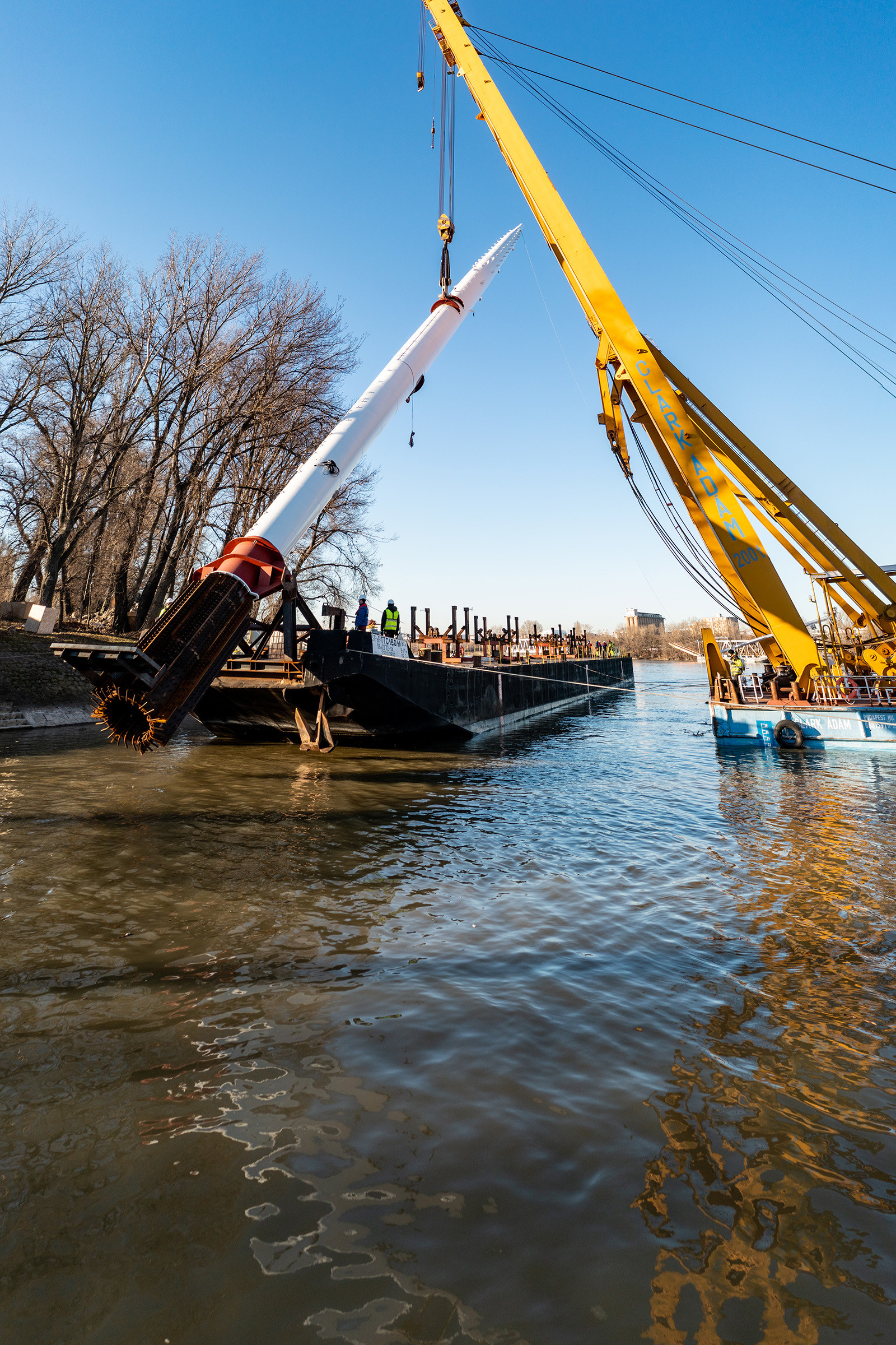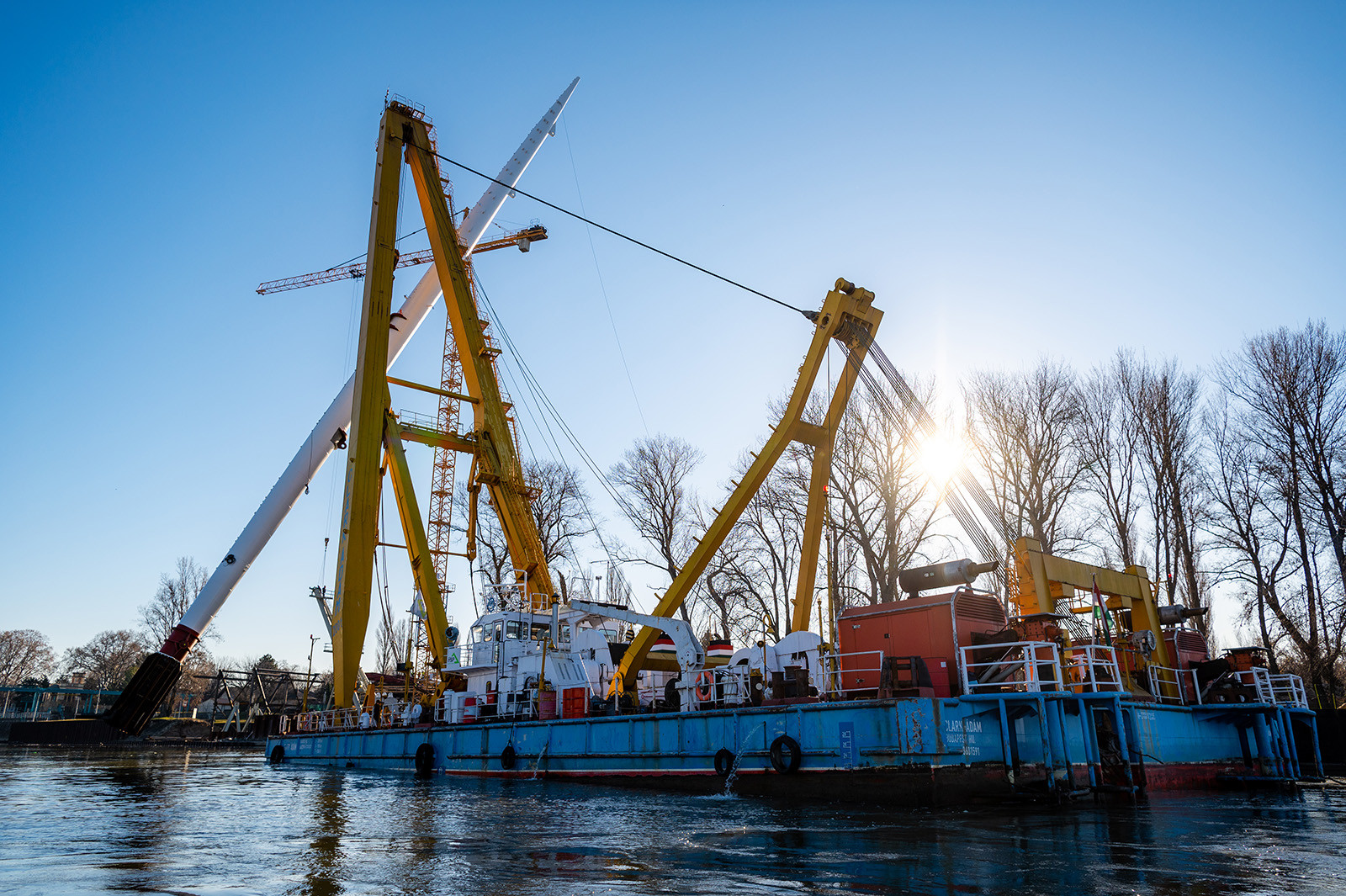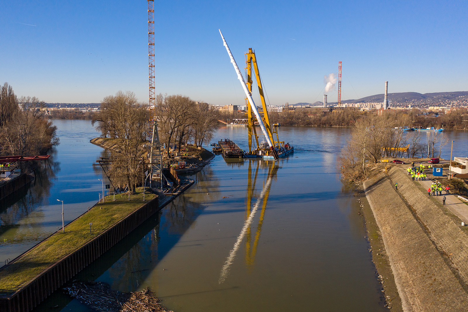 Az úszódaru beúszása minimum 200 centiméteres budapesti Duna vízállásnál volt csak lehetséges, amelyre hónapokat vártak a kivitelezők.