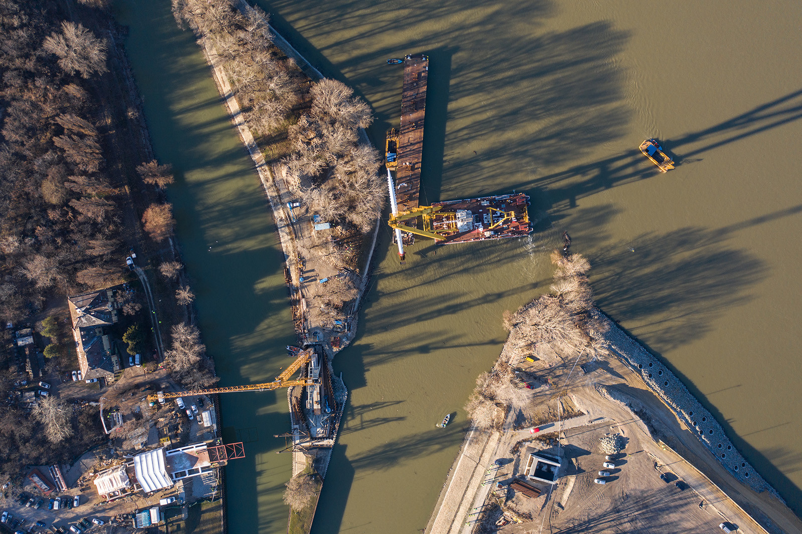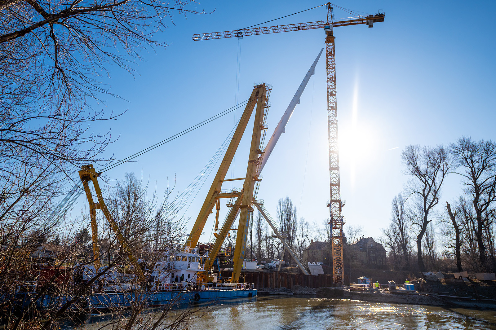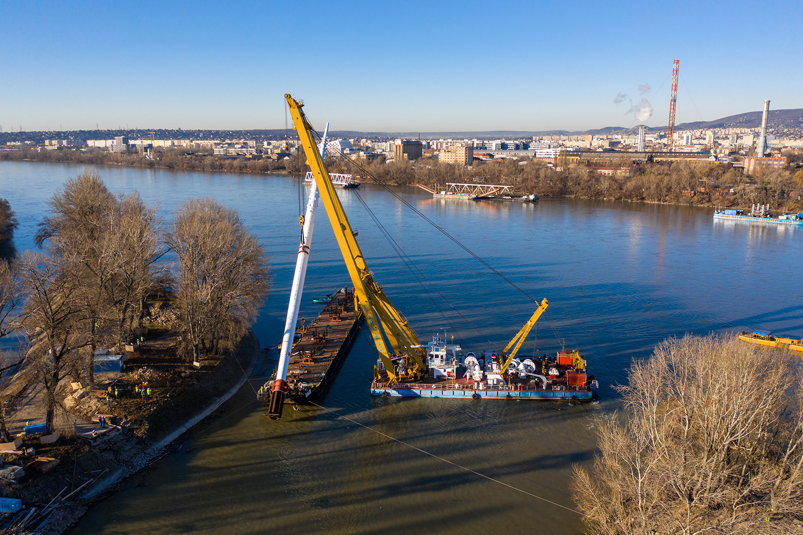 Az úszódaru beúszása minimum 200 centiméteres budapesti Duna vízállásnál volt csak lehetséges, amelyre hónapokat vártak a kivitelezők.