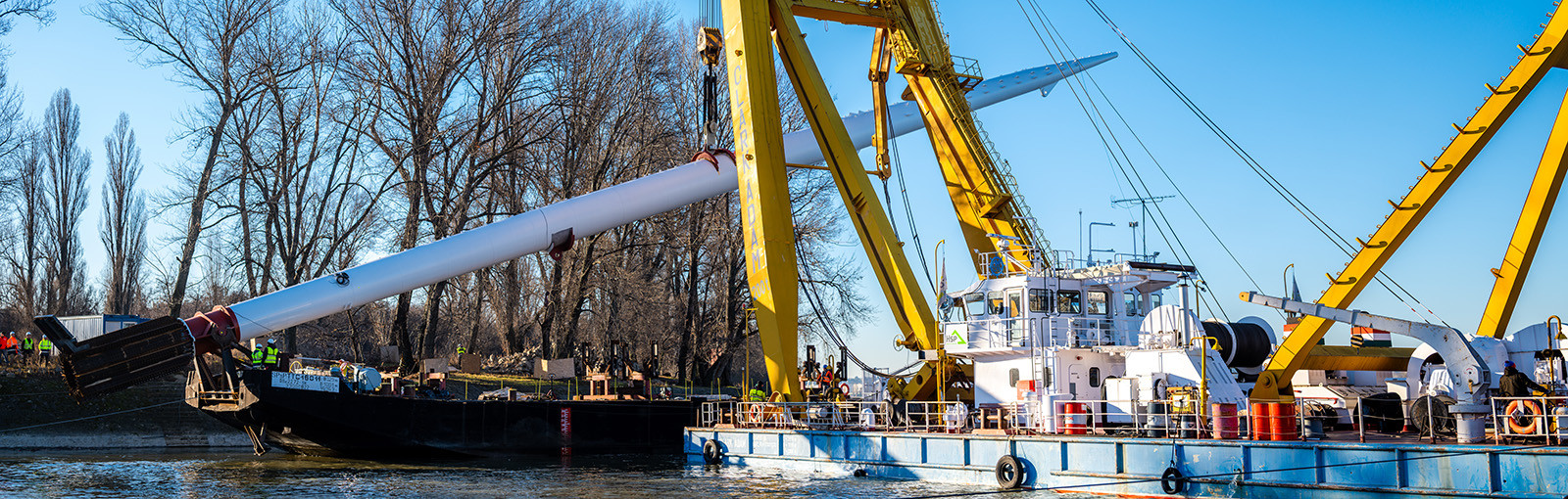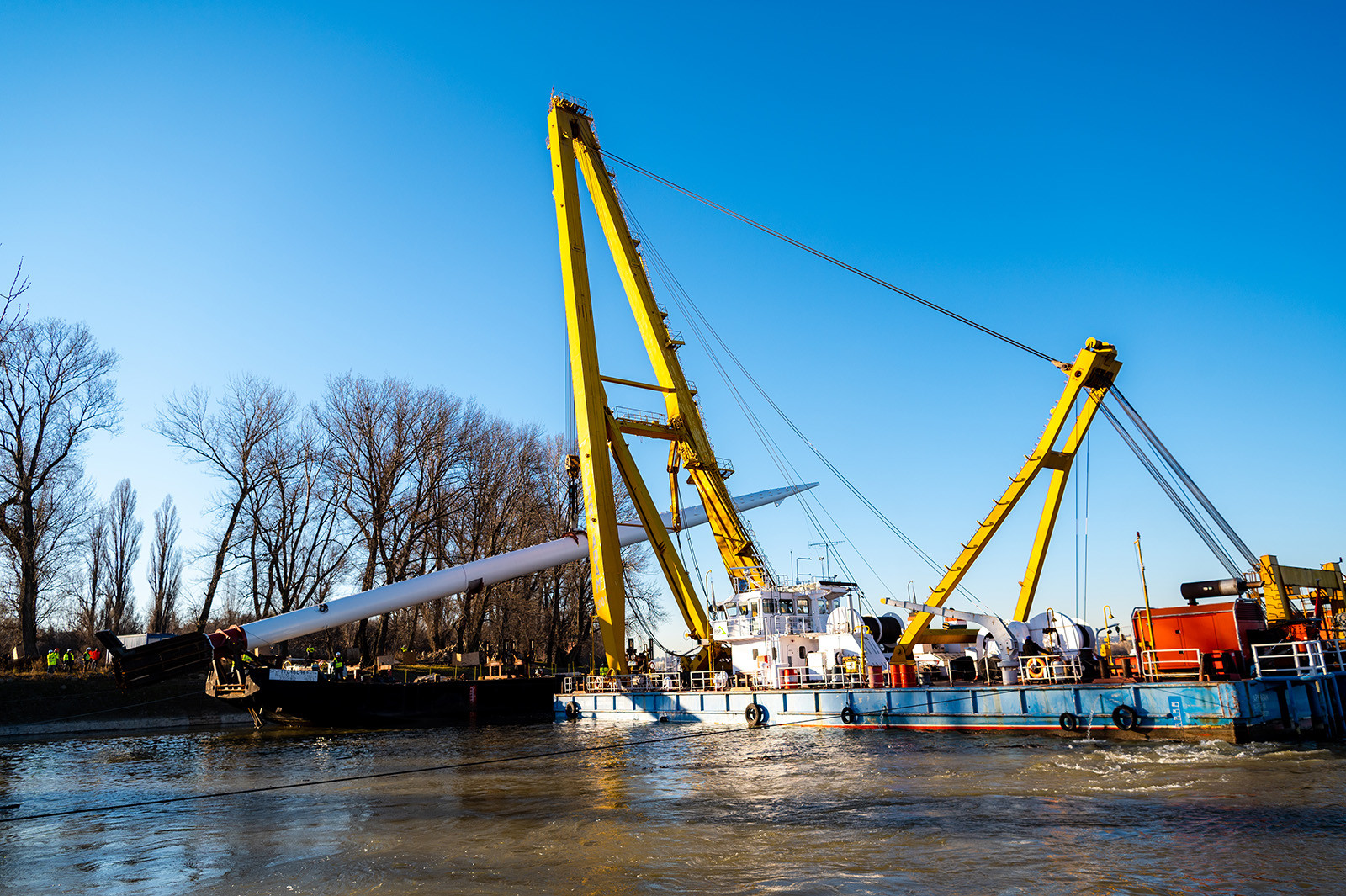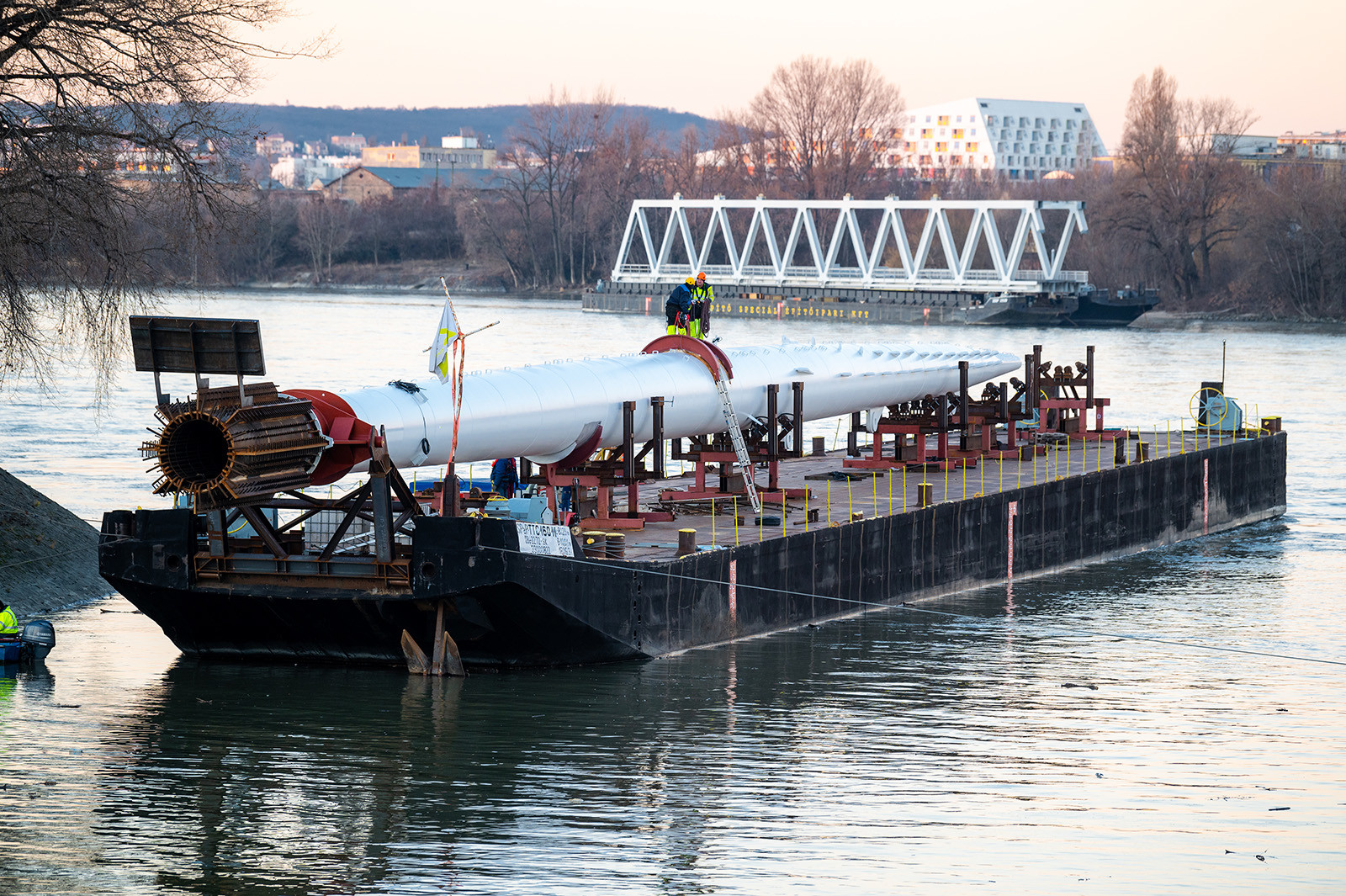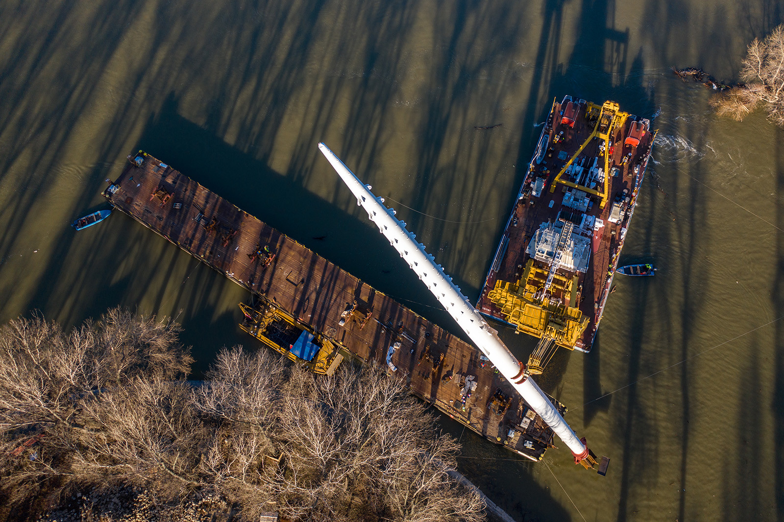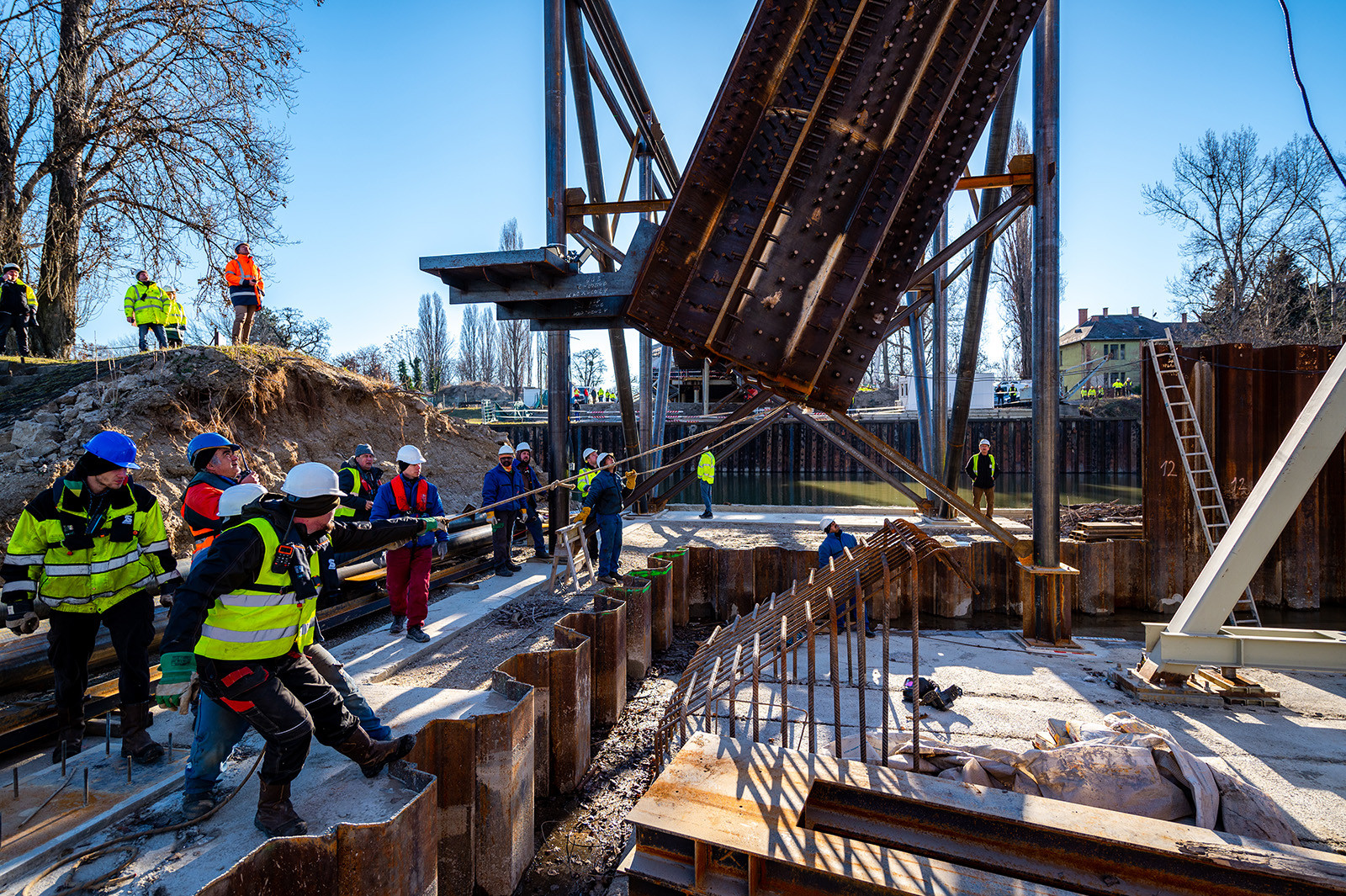 A 70 méter hosszú, közel 200 tonnás acélelem behelyezése a Clark Ádám úszódaru segítségével valósult meg mindössze néhány óra leforgása alatt.