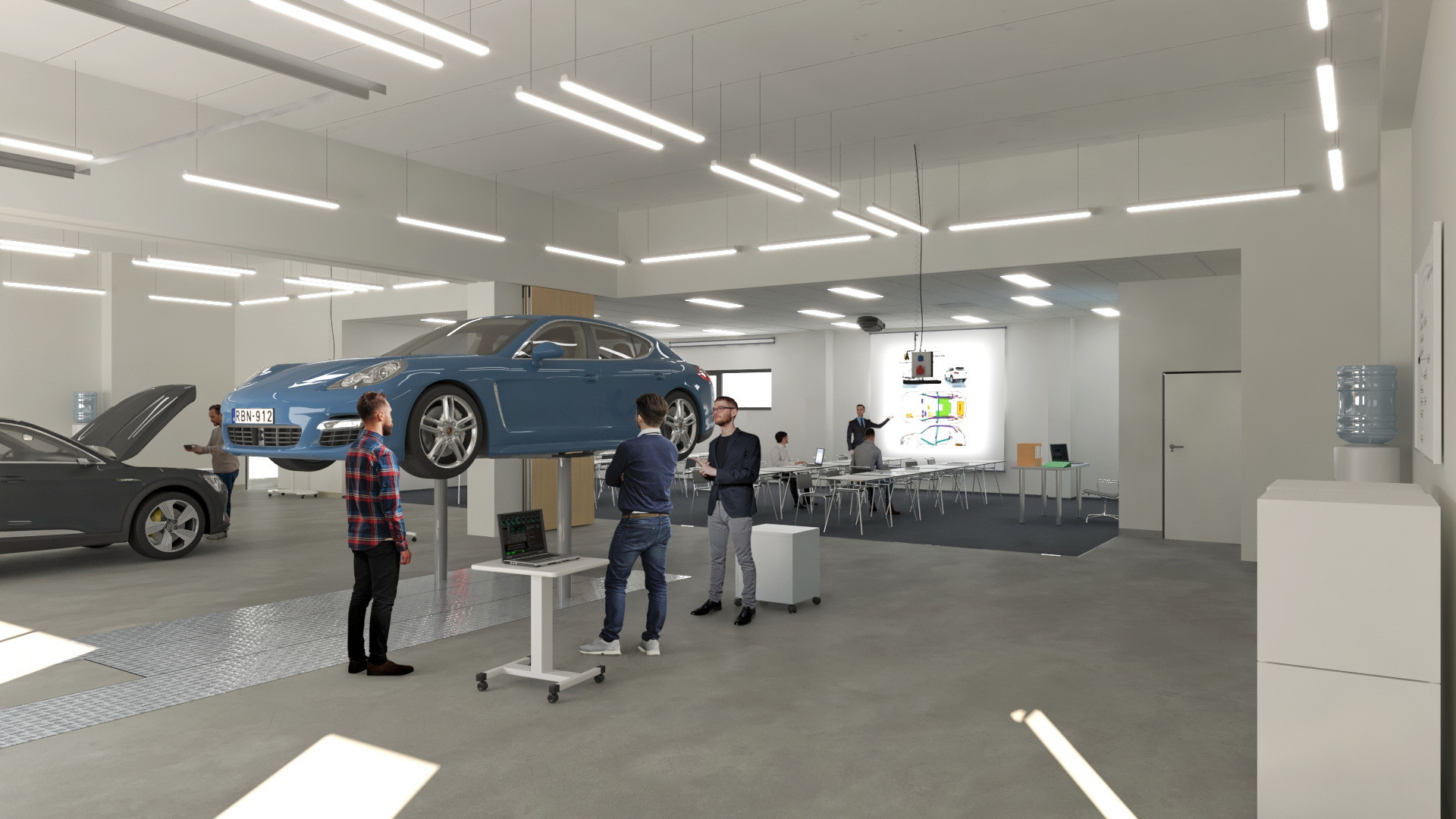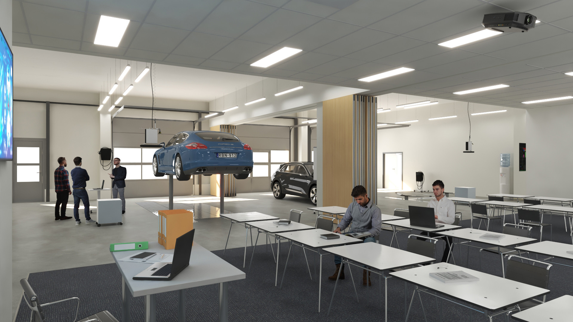Utóbbiban a legmodernebb autóemelők, futómű-, fékberendezés-, és vezetéstámogatási rendszerek beállítására alkalmas műszerekkel felszerelt szervizrészleg biztosítja majd munkatársak átképzését és oktatását. Ugyanezen szárny emeleti részén kapnak helyet az oktatók irodái, illetve további elméleti tantermek.
