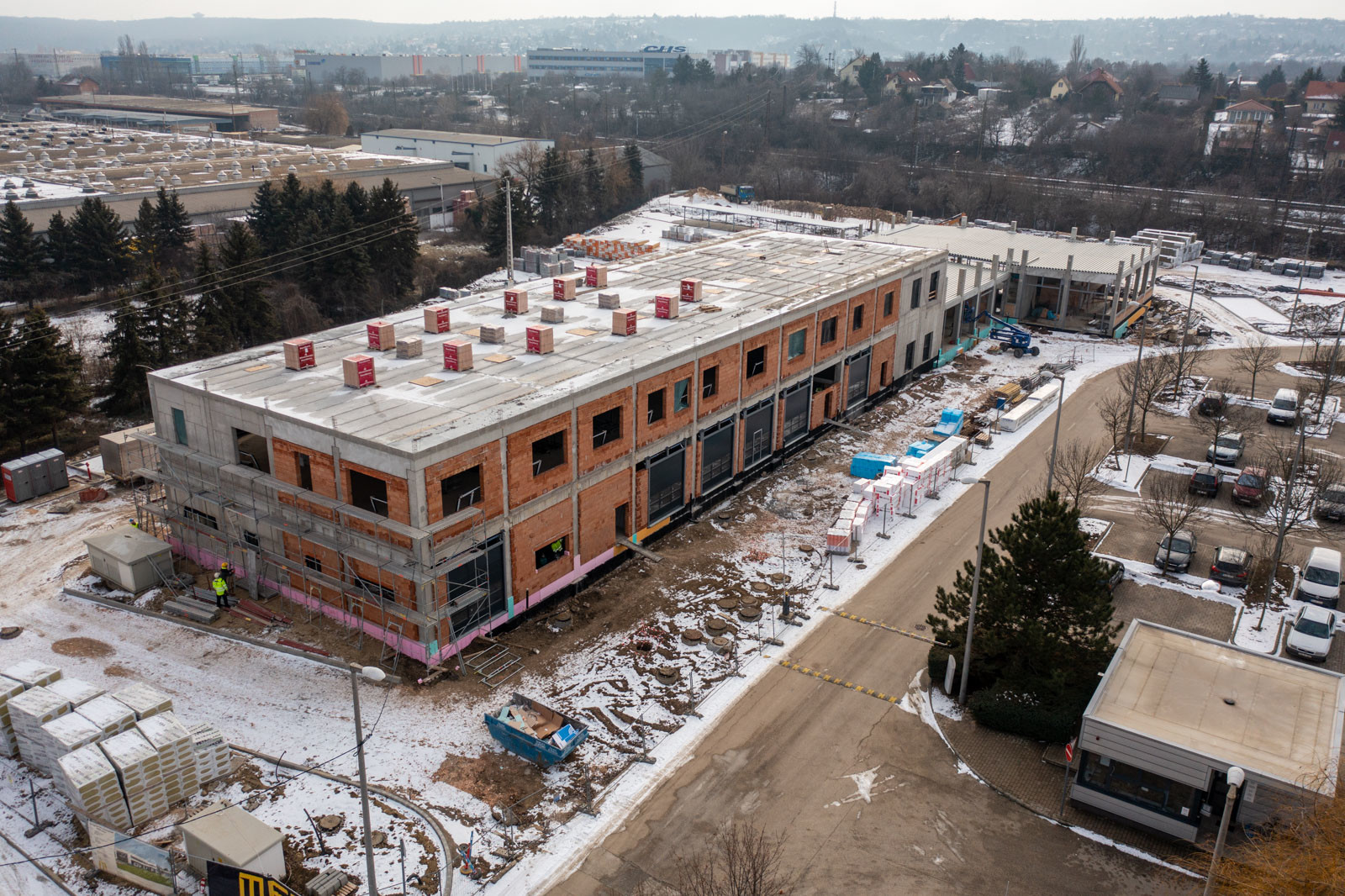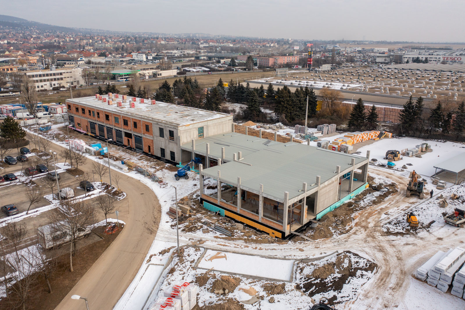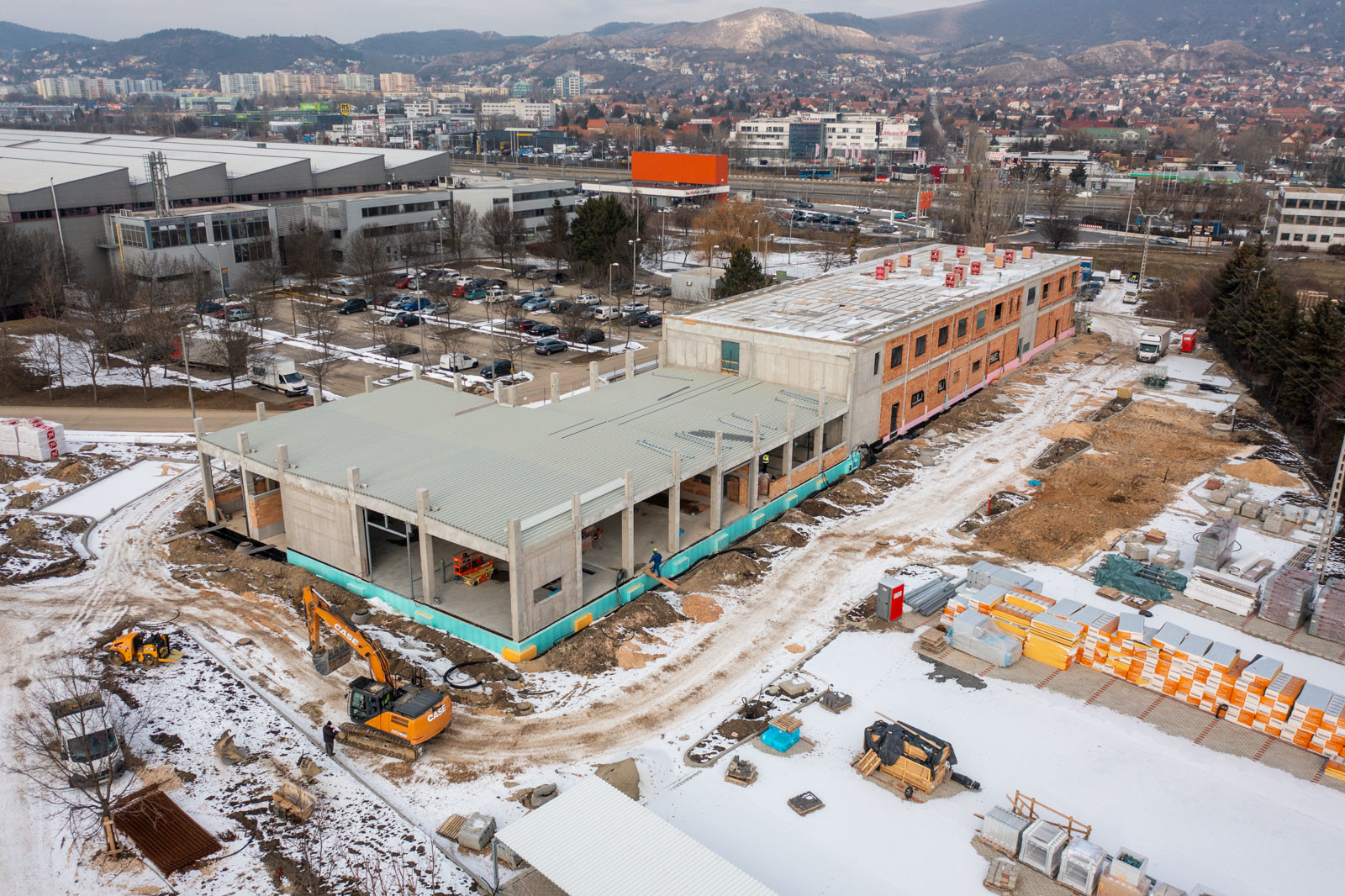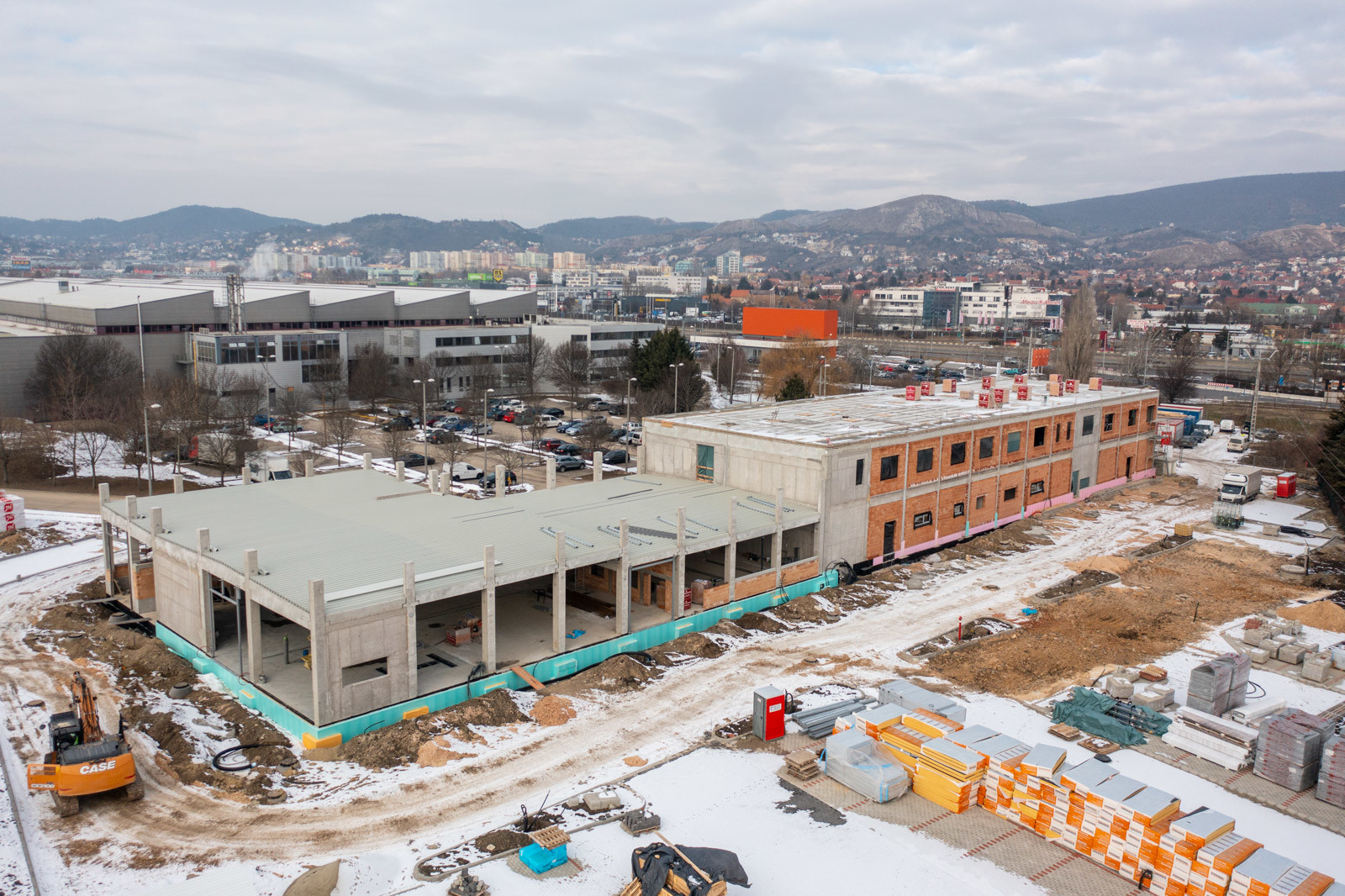 A fejlesztés építőipari paramétereiről lapunk a CLC-Construct építésvezetőjétől érdeklődött. Glázer Miklós szavaiból kiderült, az épület mélyalapozással - CFA cölöpalapozással - készült. A CLC-Construct szerkezetépítőként az épület helyszíni vasbeton szerkezeteinek elkészítését végezte. A munkálatokat 2021 júniusában a monolit, helyszínen készülő pillér alapok és előregyártott pillér kelyhek elhelyezésével és kibetonozásával kezdték. Ez utóbbiak fogadják az előregyártott pilléreket.