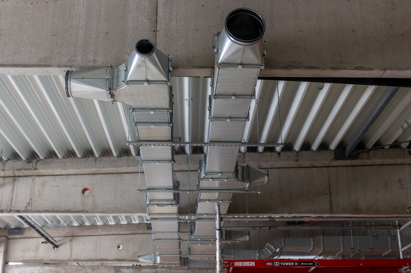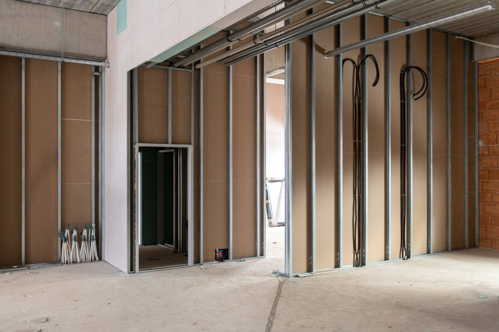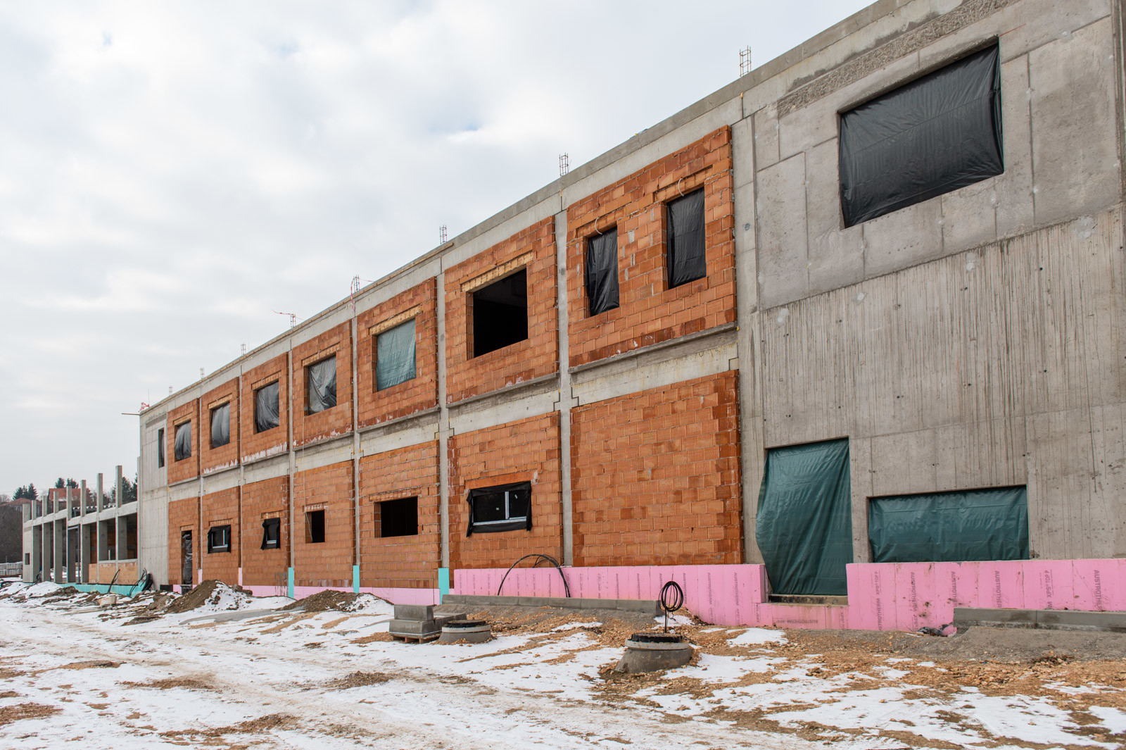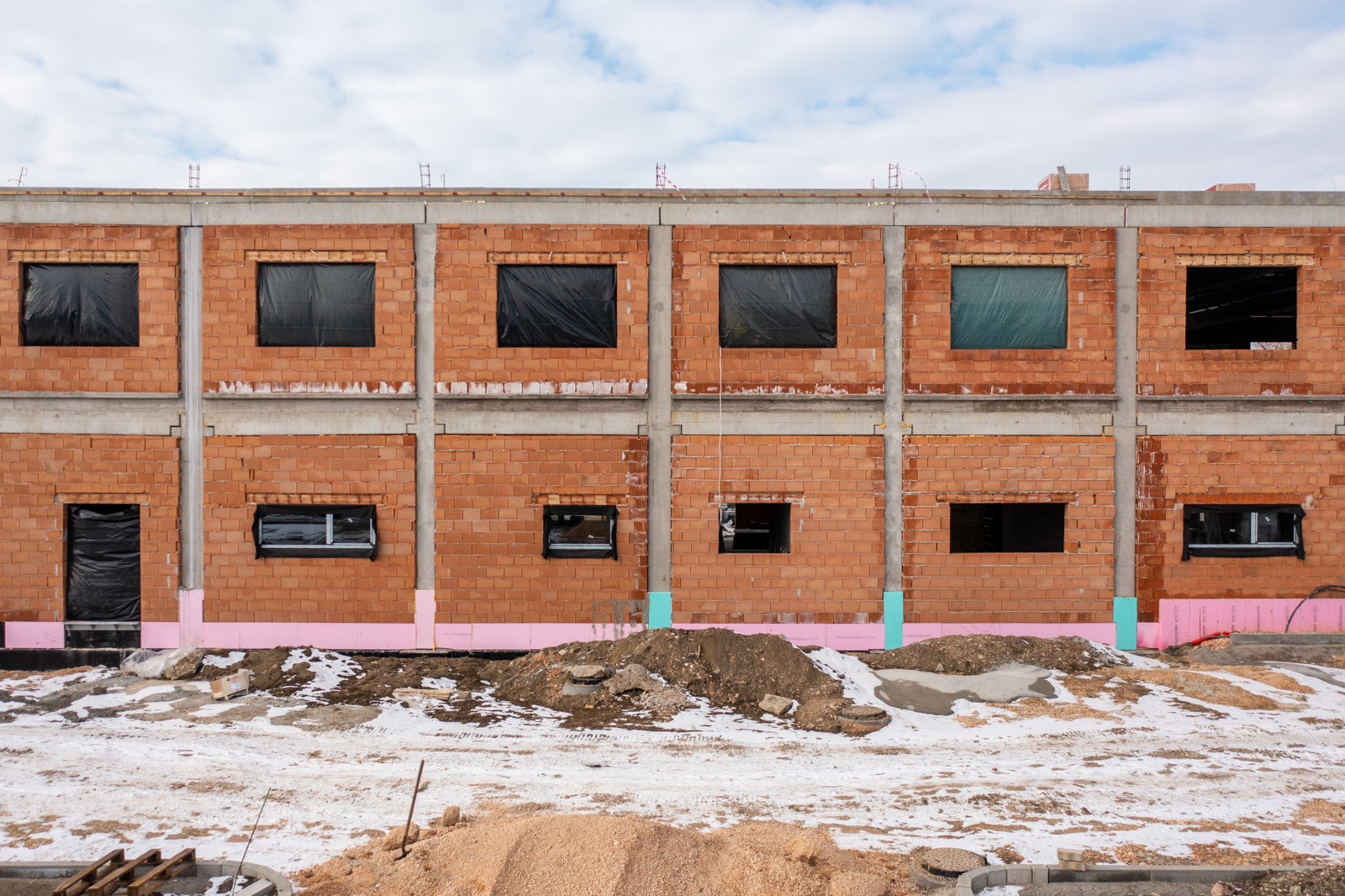 „Az északi szárny kétszintes, itt az osztó- és a zárófödém is körüreges födémpallókkal készül, míg a déli, egyszintes szárnyon feszített vasbeton gerendák hidalják át a közel harminc méteres szabad nyílásközt, melyekre magasbordás acél trapézlemez zárófödém készül” – árulta el a szakember.