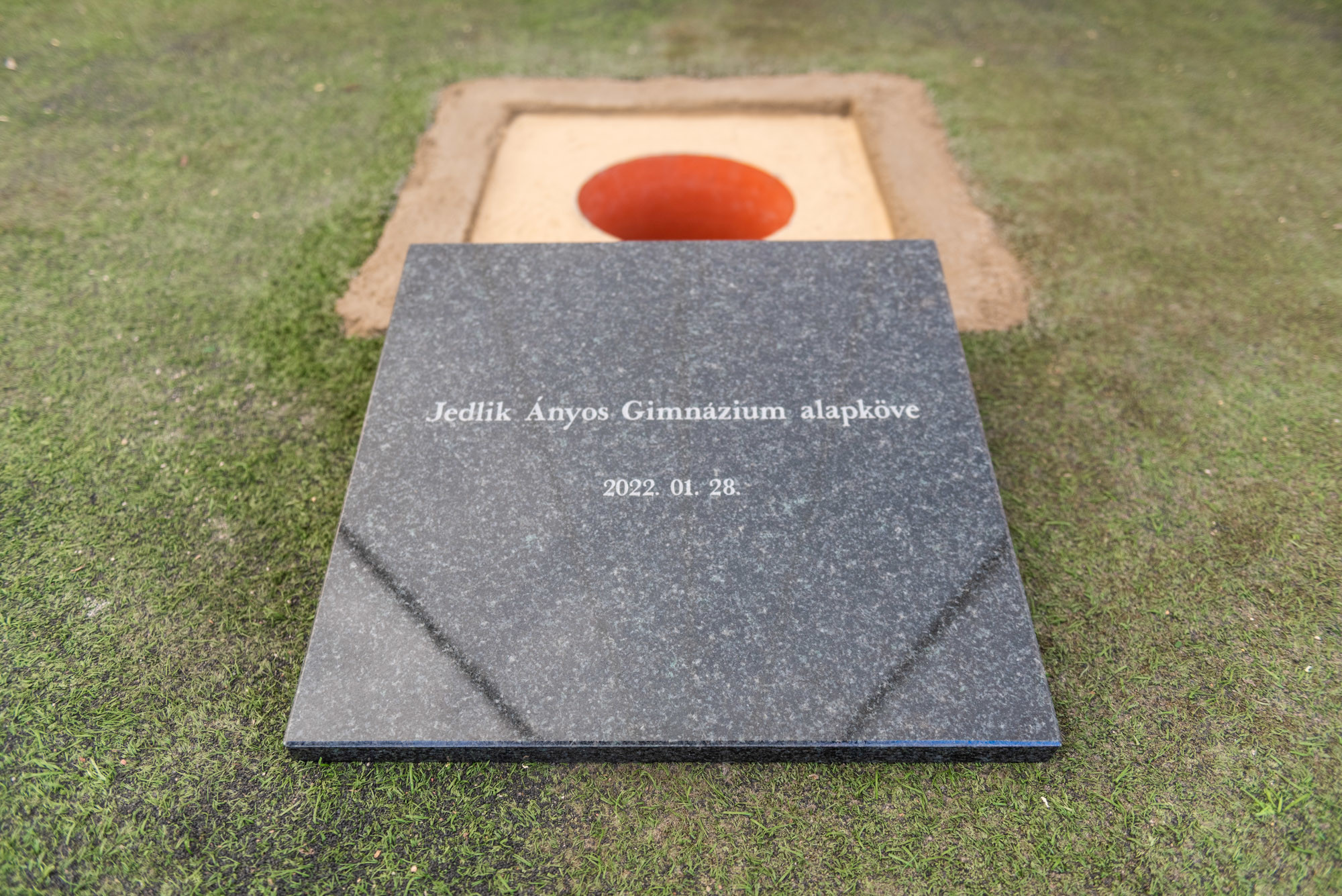 Az alapkőbe kerülő időkapszulába az aktuális magyar forint forgalmi érmesort, a Magyar Nemzet pénteki számát, a JÁG 70. és 75. évfordulójára készített évkönyveit, a tantestületről készült fotót, továbbá jedlikes nyakkendőt és sálat, az alapítás dokumentumait és egyéb, az iskolához kötődő emlékeket, továbbá a csarnok tervdokumentációját helyezték el.