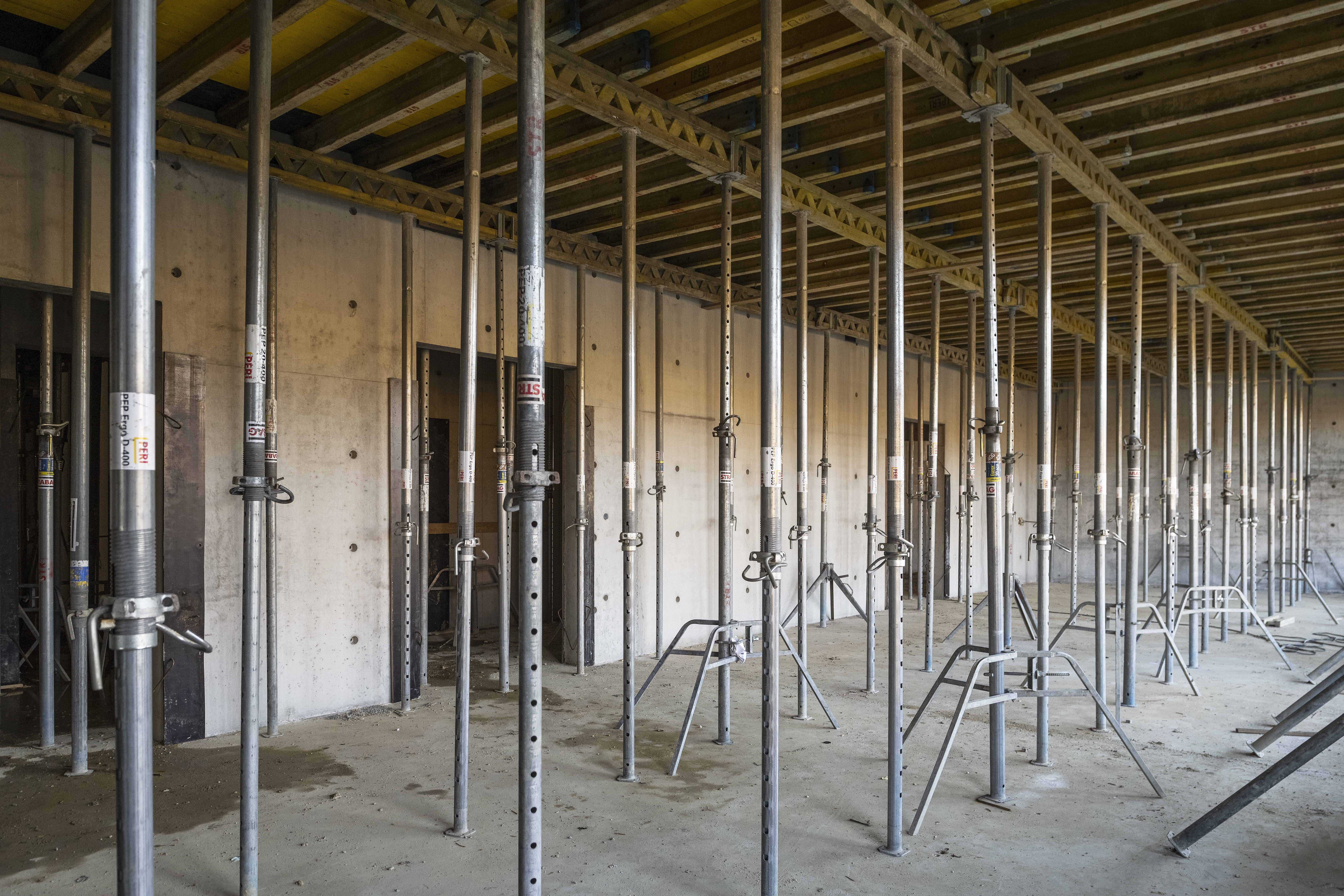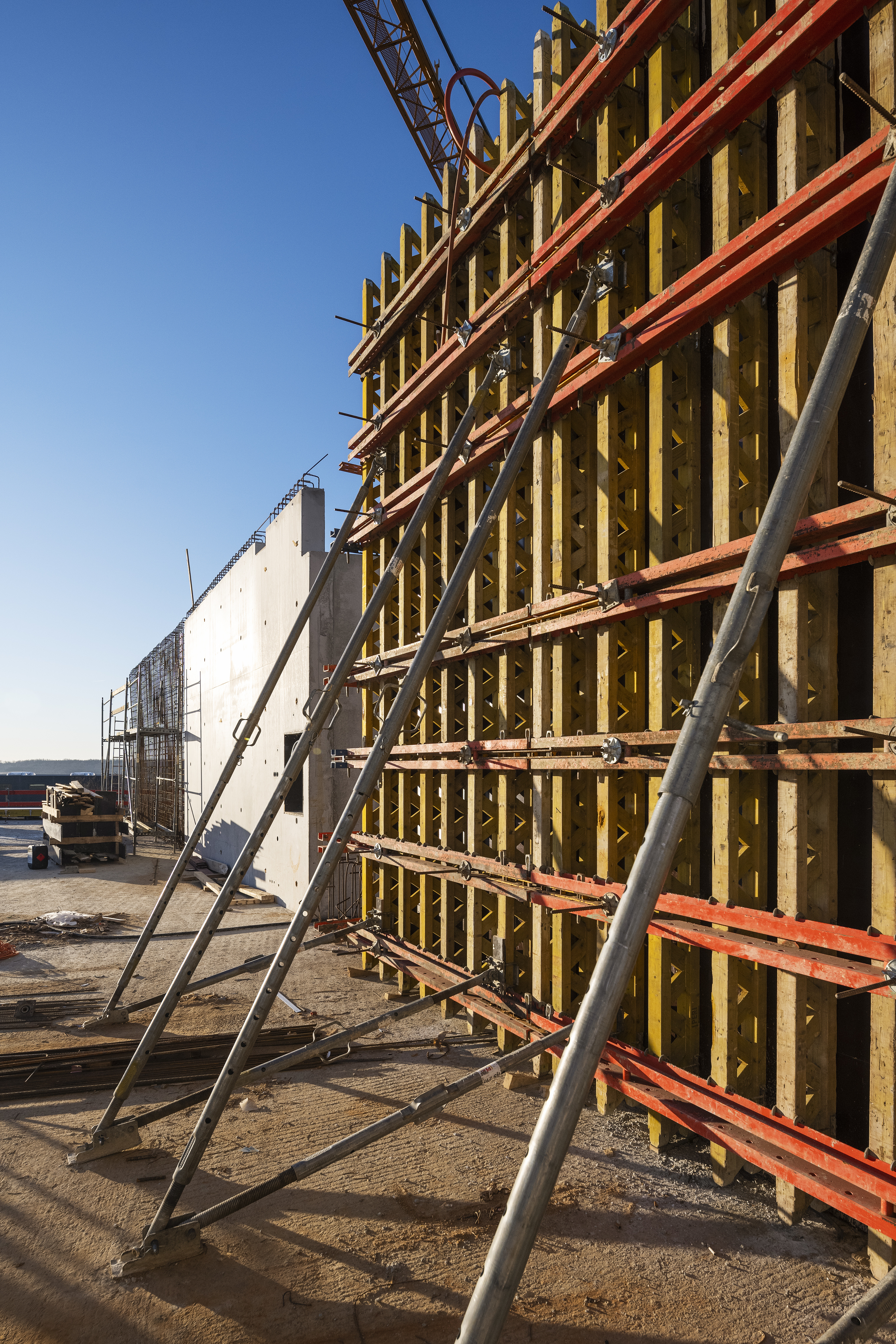 A látványos trapéz alaprajzú, 4150 négyzetméter bruttó összfelületű épület kiemelkedő minőségű, kétoldali látszóbeton falakkal valósul meg, melynek felépítéséhez a PERI VARIO GT24 fatartós falzsaluzatát választották a kivitelezők.