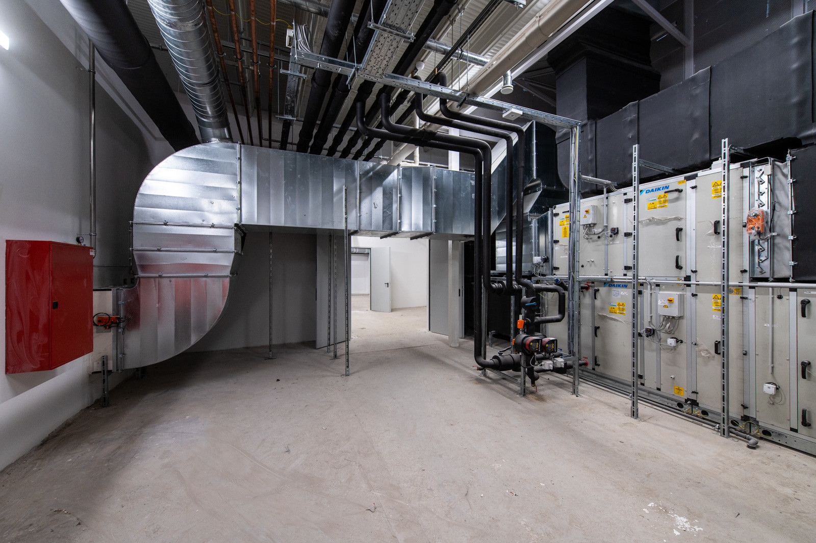 Elkészült az épület vasbeton alapozása, ipari padlója, az új, komplett homlokzati megerősített acélszerkezet és megtörtént a teljes homlokzat, valamint a tető szigetelése. A vásárlótér, irodák, raktárak, hűtőkamrák, oktatóterem, gépészeti és elektromos helyiségek 99 százalékban készen vannak.