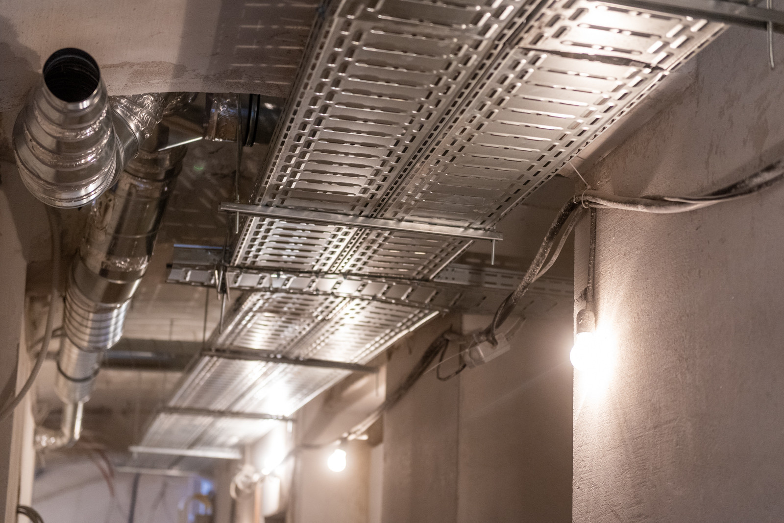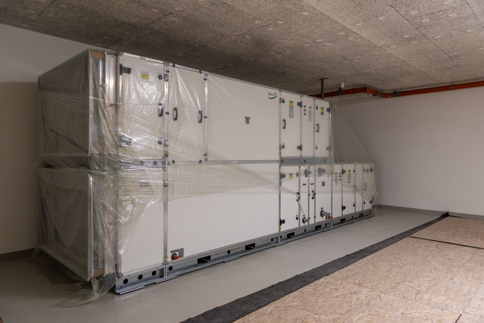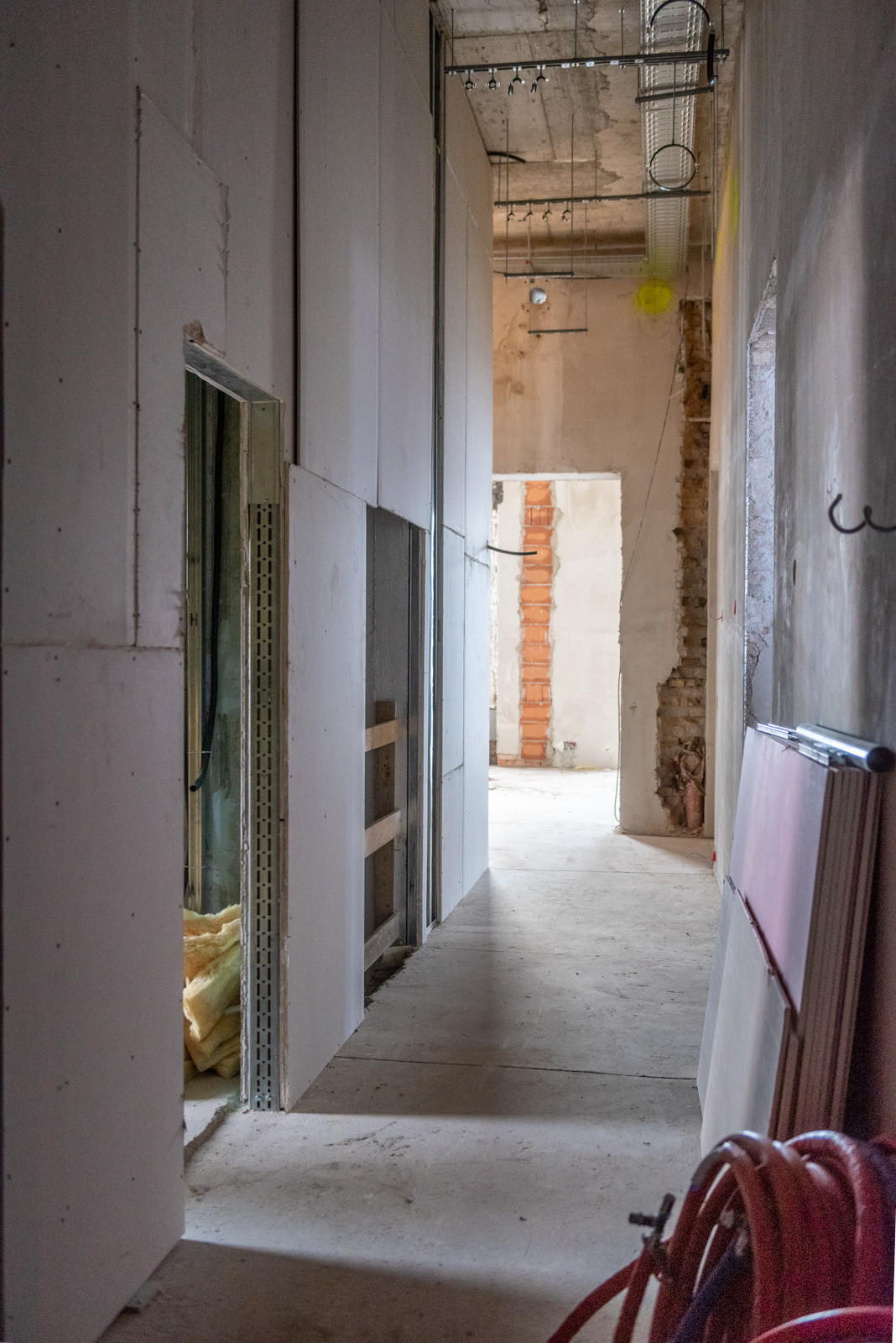 A belső falak kialakítása is folyamatban van, folynak a villanyszerelési és gépészeti munkák: helyükre kerültek a hűtőgépek, légkezelők.