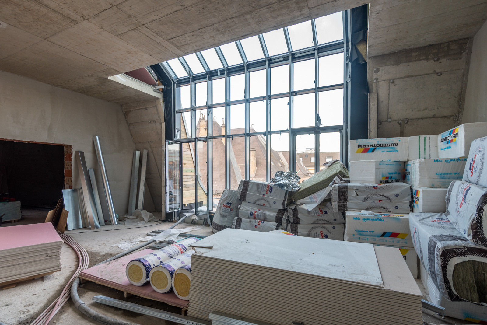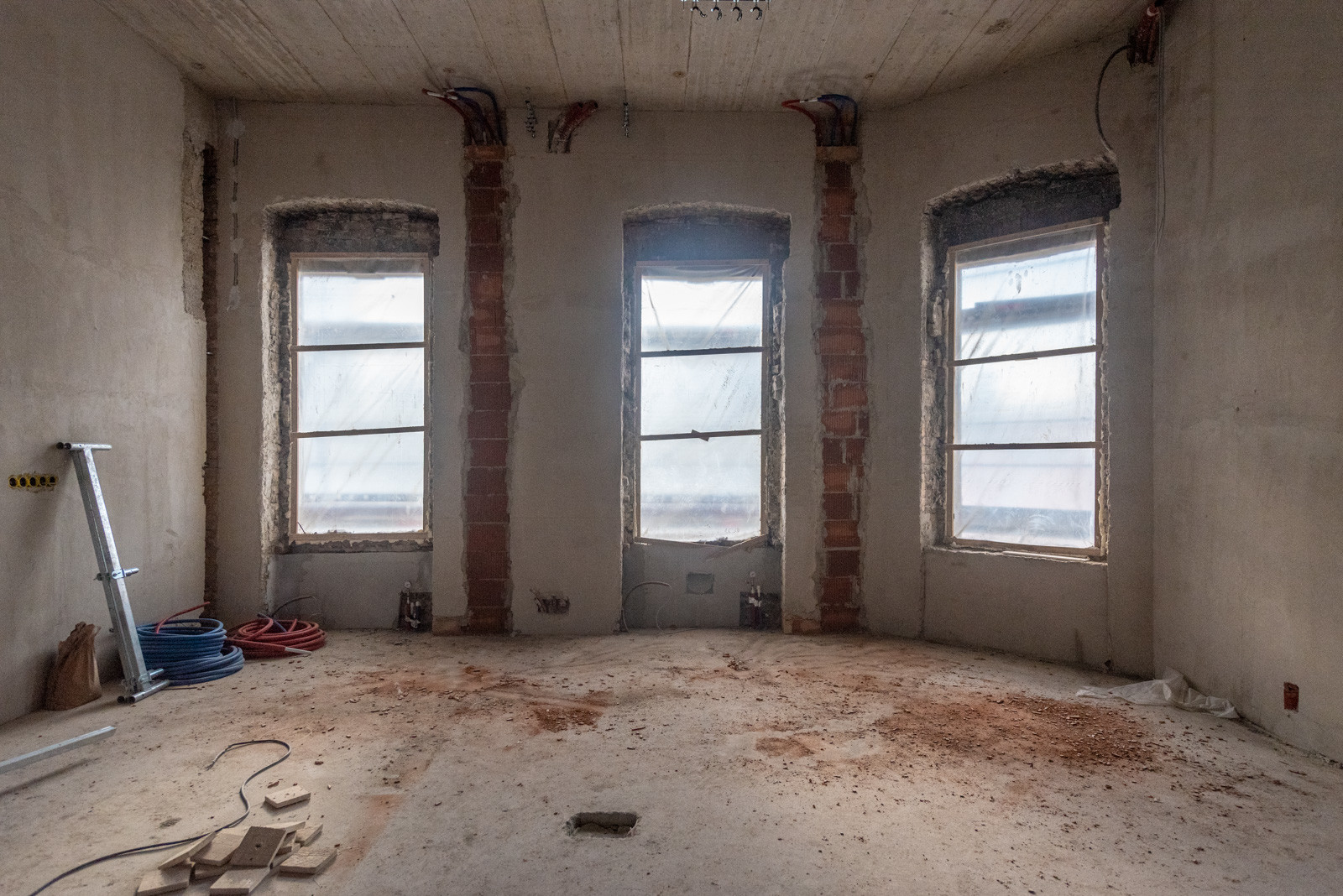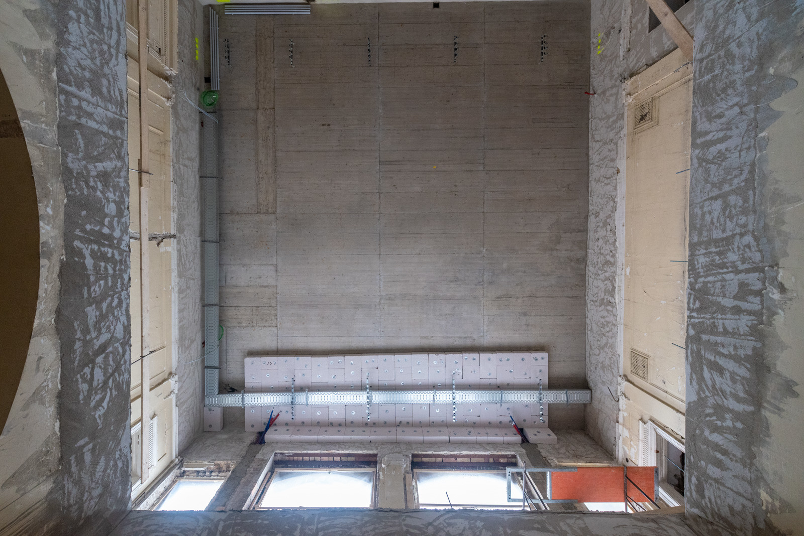 Majd folytatta: „Elbontottuk védőtetőt, elkészült az épület alá tervezett pinceszint, minden szerkezeti bontás, megerősítés, és az új vasbeton szerkezetek is. Az épület megkapta az új tetőszerkezetet, melyen elkészült a teljes rétegrend, a belső karton burkolattól a külső terméspala fedésig.”