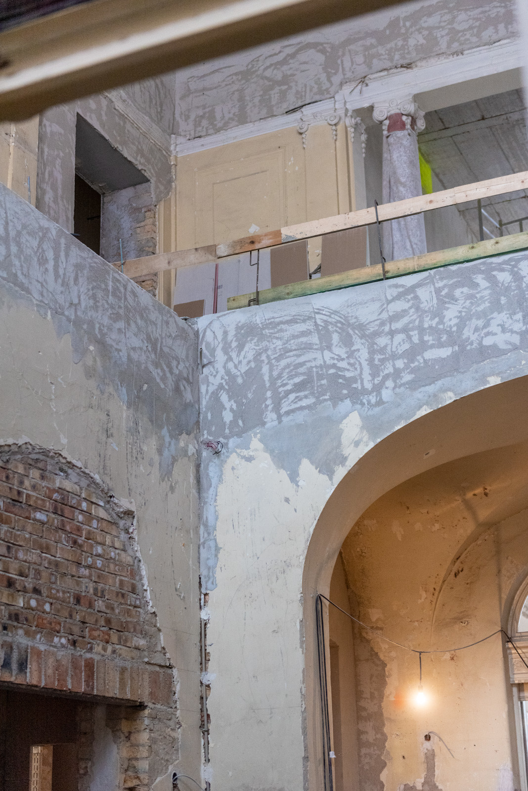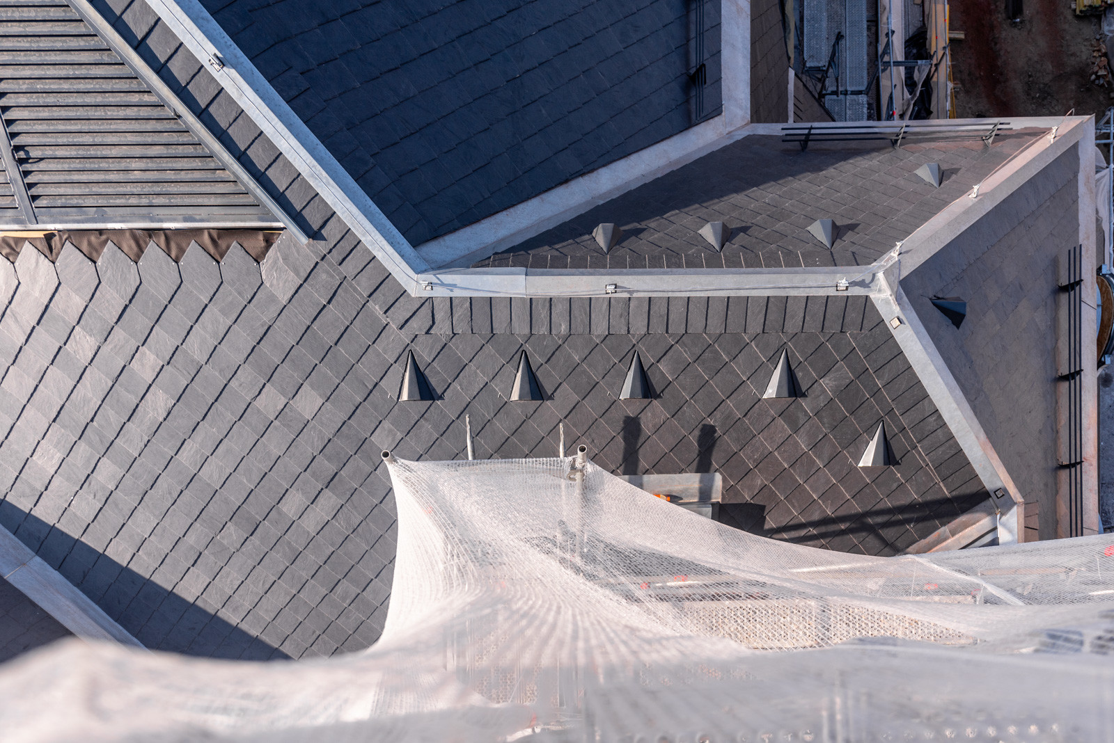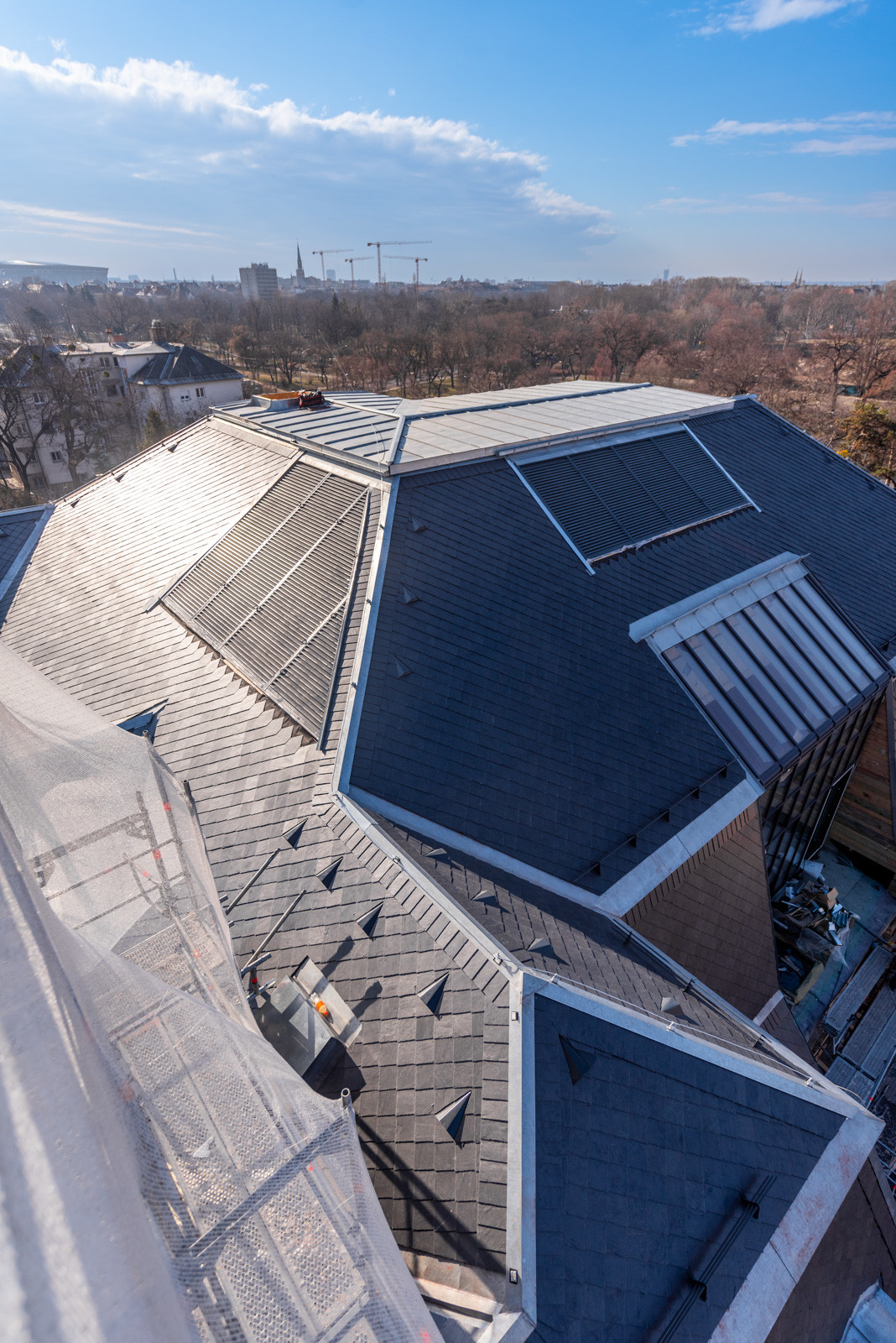 Majd folytatta: „Elbontottuk védőtetőt, elkészült az épület alá tervezett pinceszint, minden szerkezeti bontás, megerősítés, és az új vasbeton szerkezetek is. Az épület megkapta az új tetőszerkezetet, melyen elkészült a teljes rétegrend, a belső karton burkolattól a külső terméspala fedésig.”