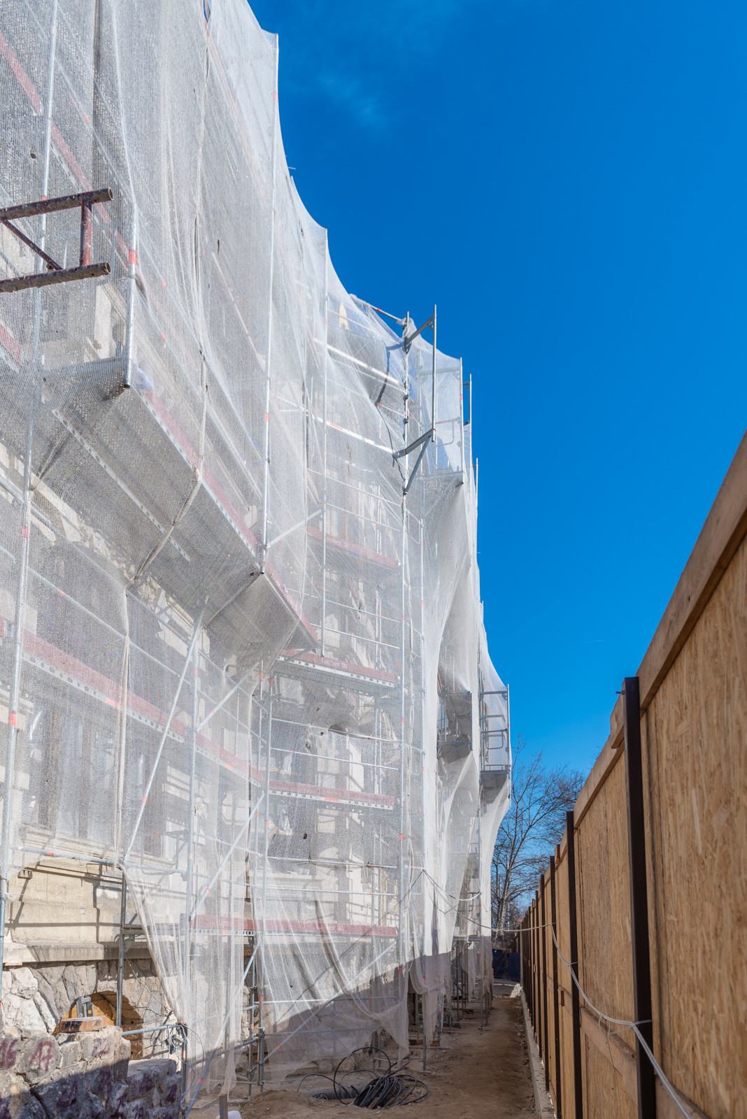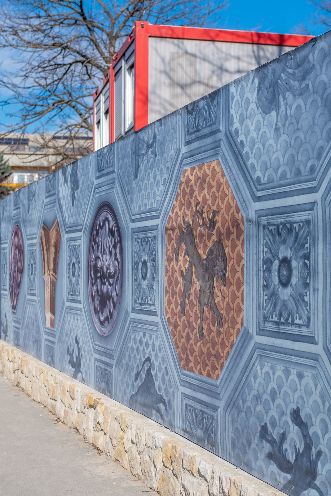 Ütemesen halad a homlokzat felújítása, sok helyen már látszik, milyen volt eredeti pompájában az épület külseje. A kovácsoltvas kerítés restaurálása, illetve a Pálma utcai új kerítés szakasz − ami gyakorlatilag pontos mása lesz a Hermina úti kerítésnek − műhelyben készül, a több ezer alkatrész lassan összeáll egy nagy egésszé, és a helyére kerül.