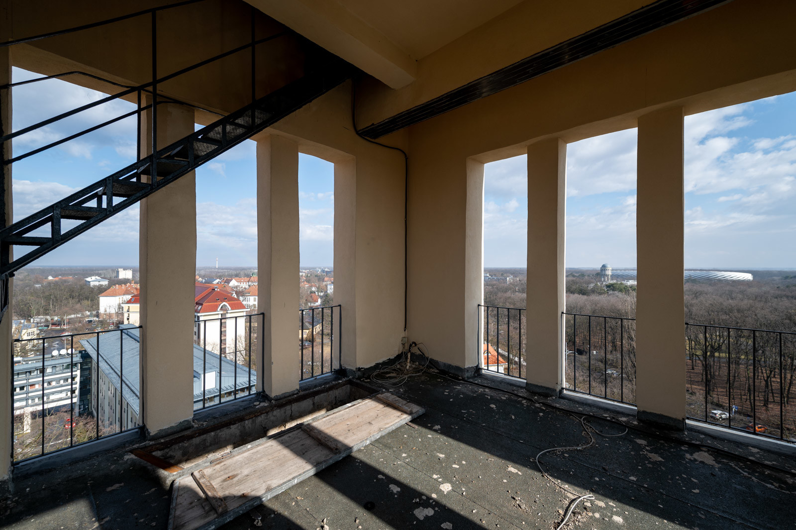 „Talán a legnagyobb és leglátványosabb kihívást a beruházásban ez a statikai munka jelentette, miután több tonna acél feldaruzását és helyszíni szerelését (ragasztását, hegesztését) igényelte 42 méteres magasságban, illetve a hozzá kapcsolódó gerenda karbonszálas megerősítését.”