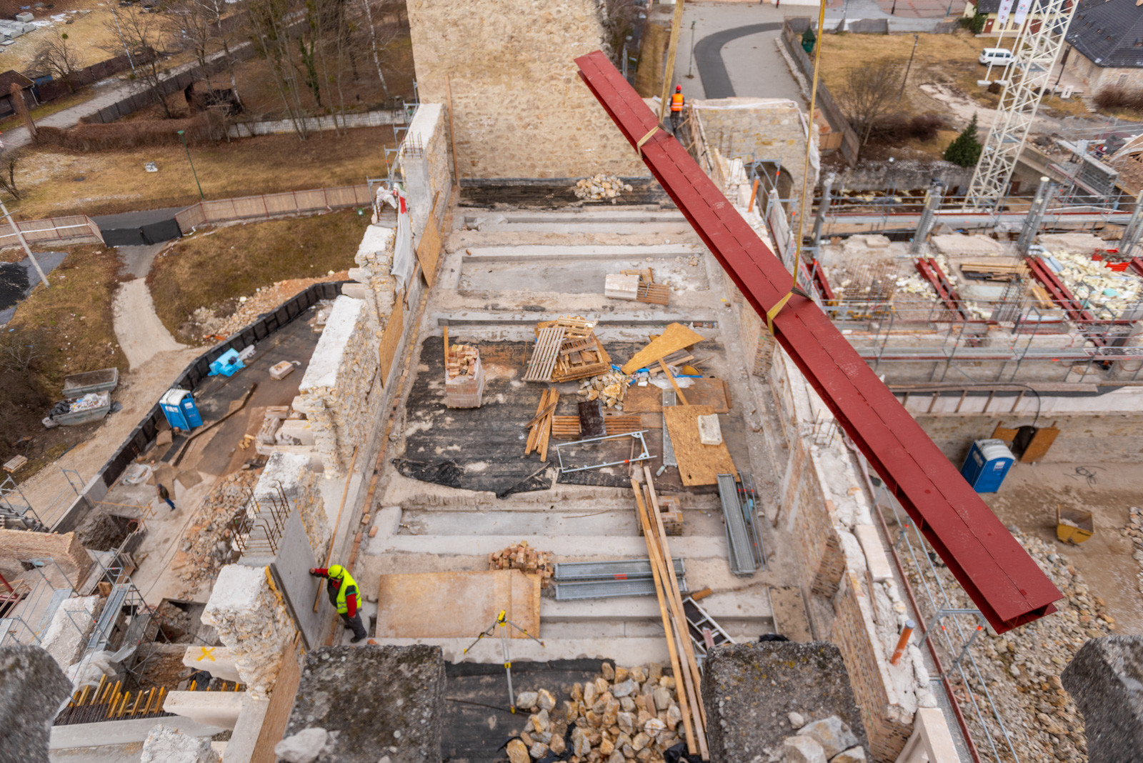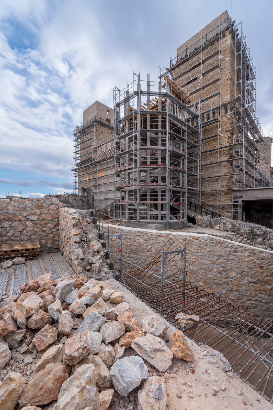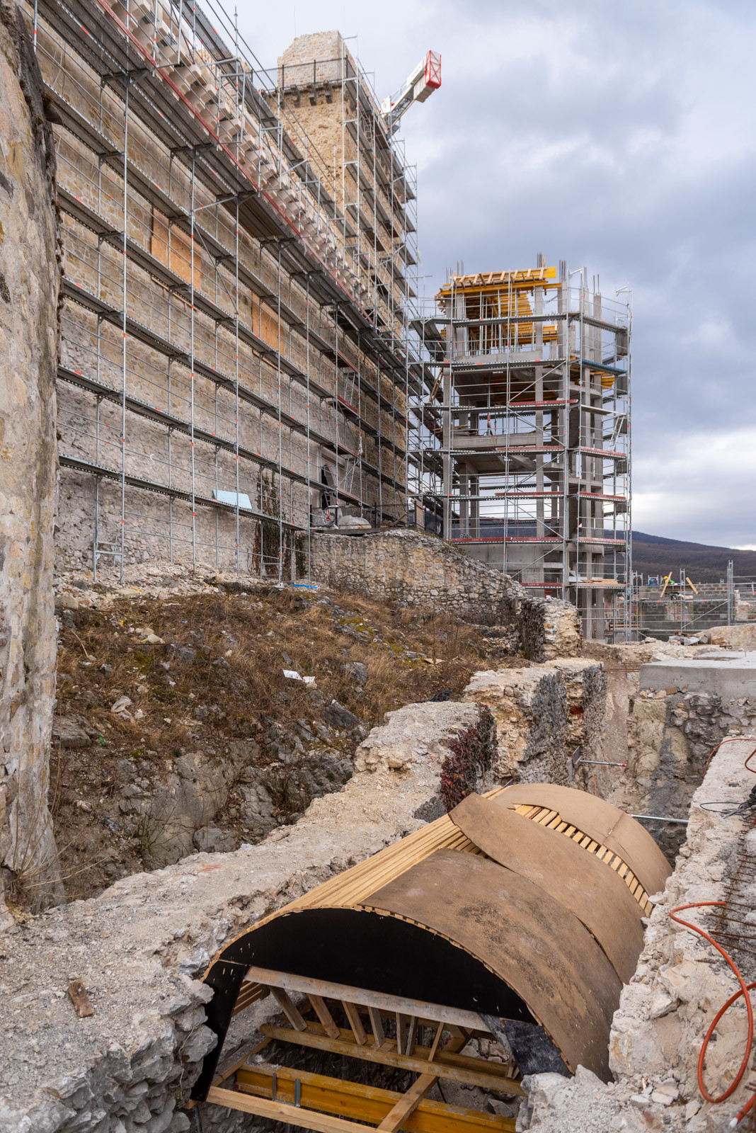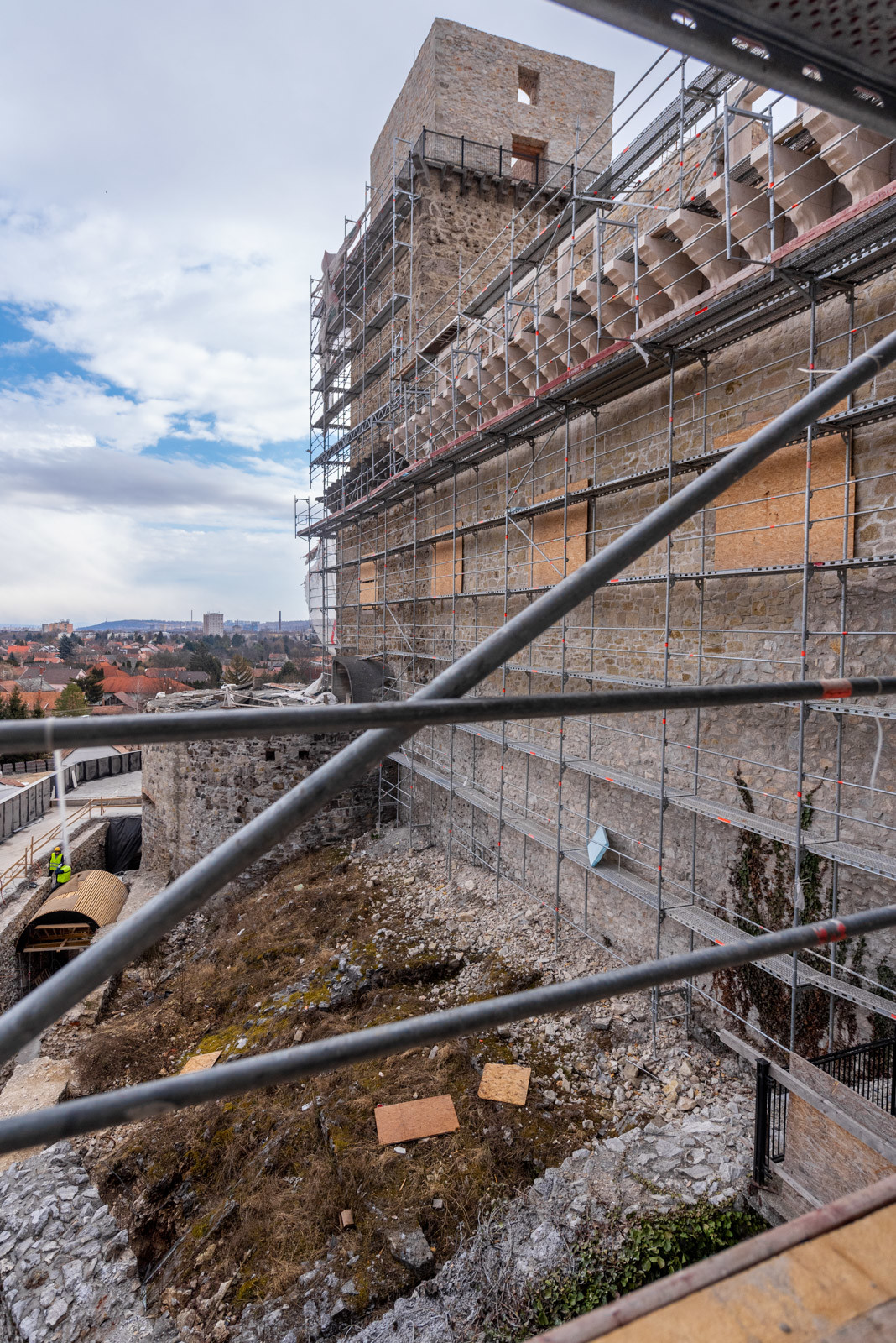 Emellett a kivitelezők belső vár második emeletén végeznek jelenleg födémmegerősítéseket: ezekre azért van szükség, hogy a korabeli állapotukat visszakapó palotaszárnyak terhelését elbírják majd a falak.
