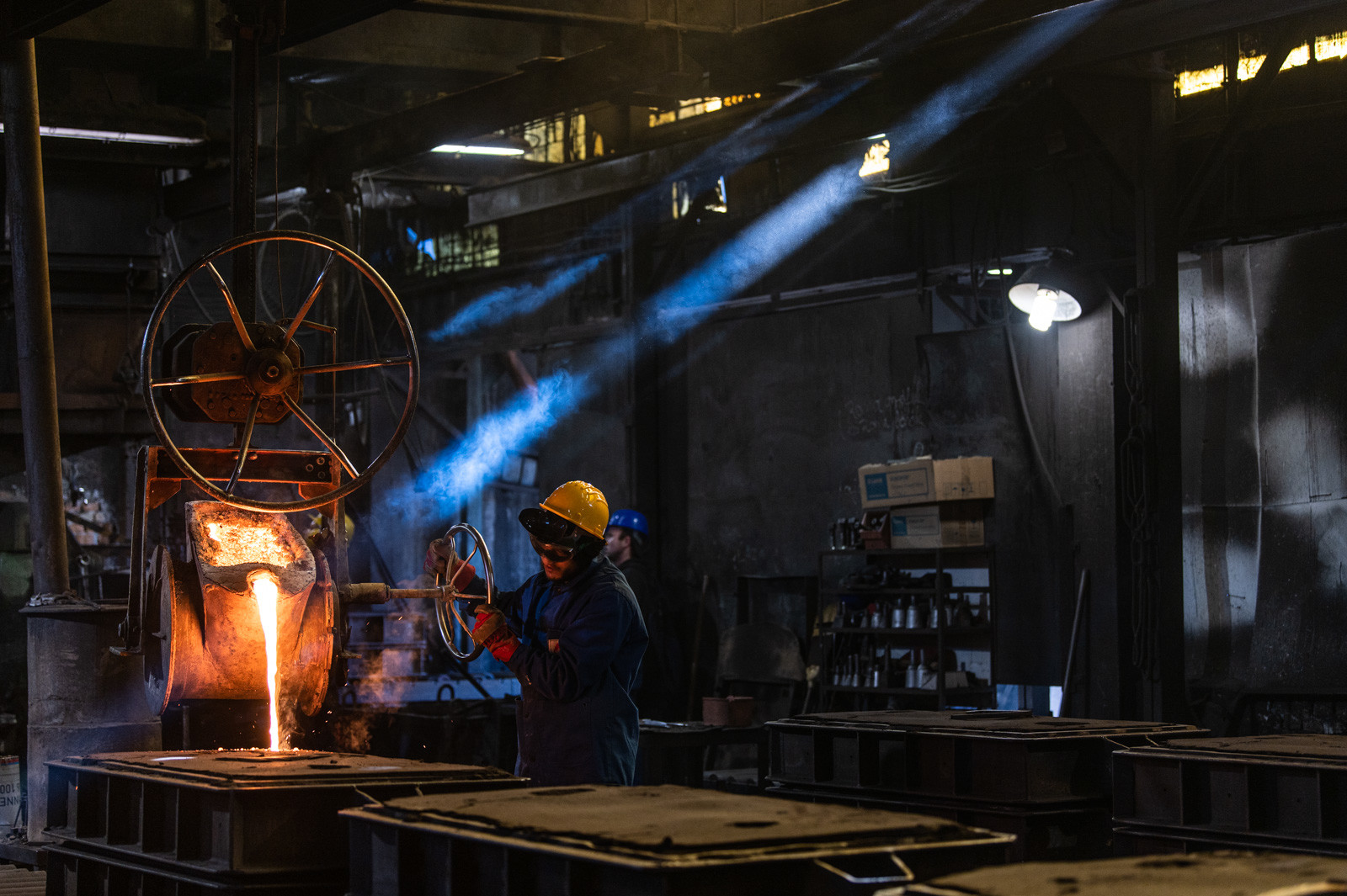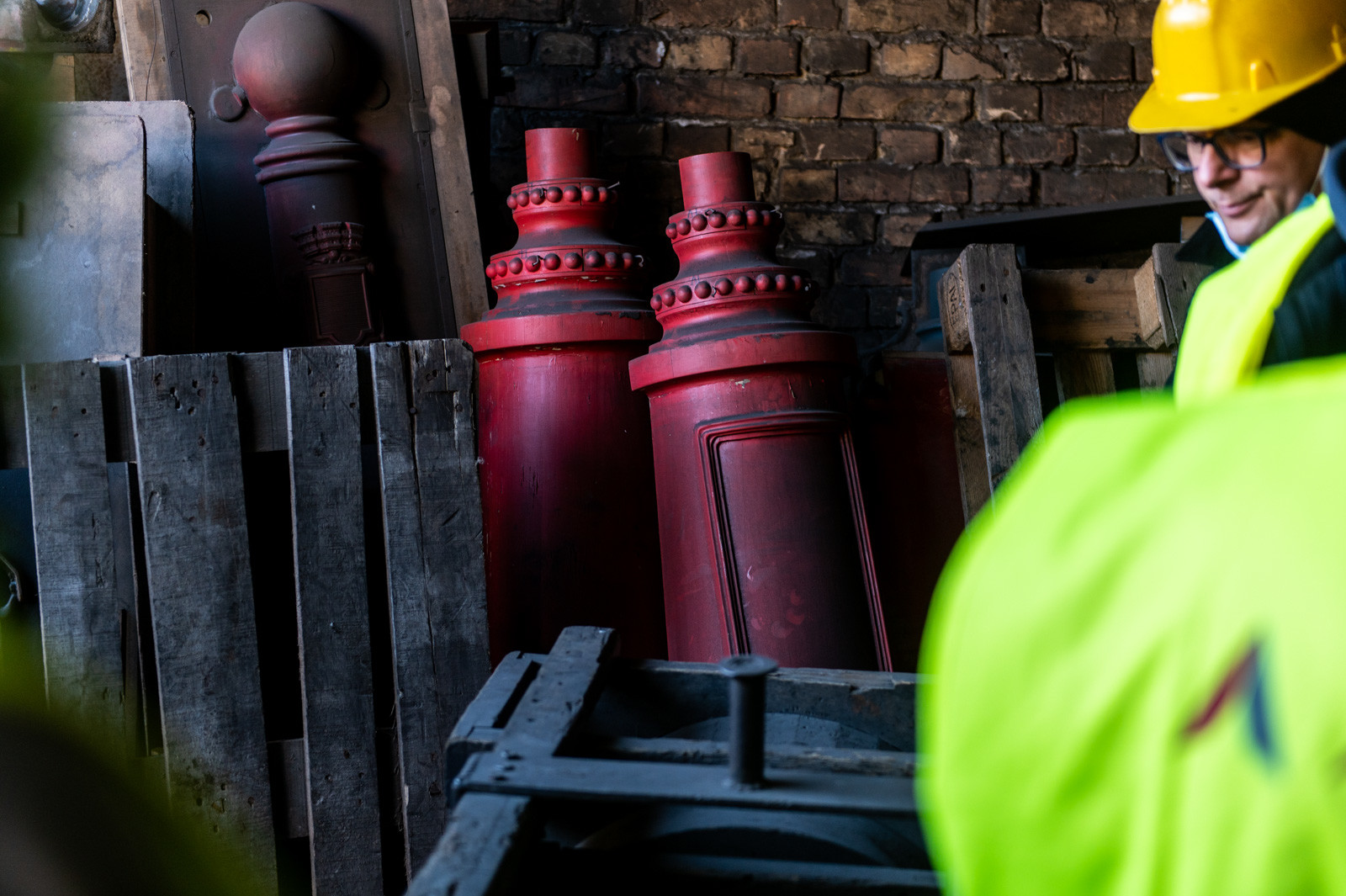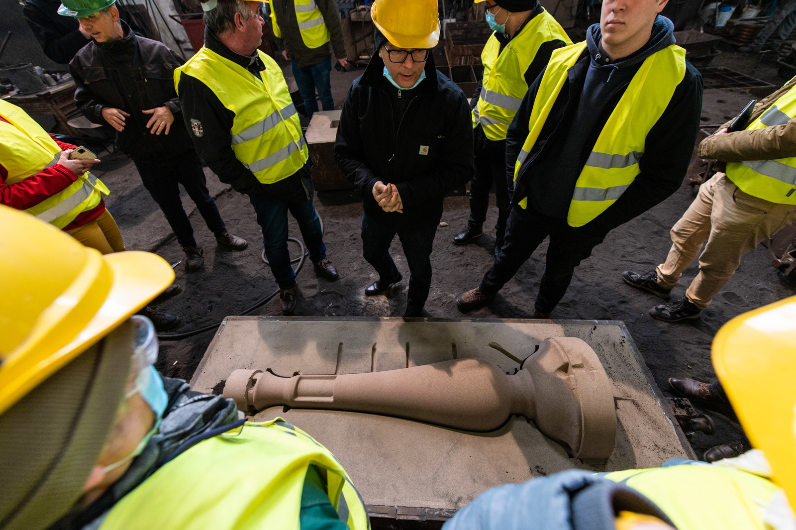 A vasöntödében a híd hosszú történelme során használt technológiákhoz hasonlóan, de modern eszközökkel folyik a munka.