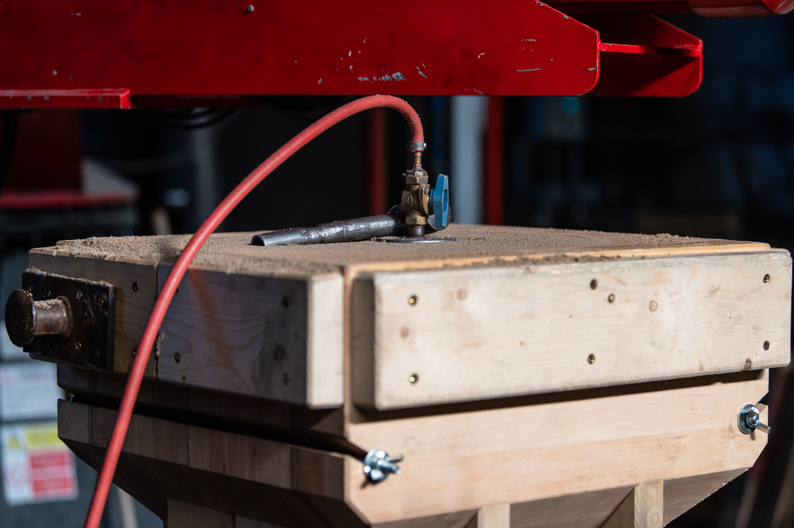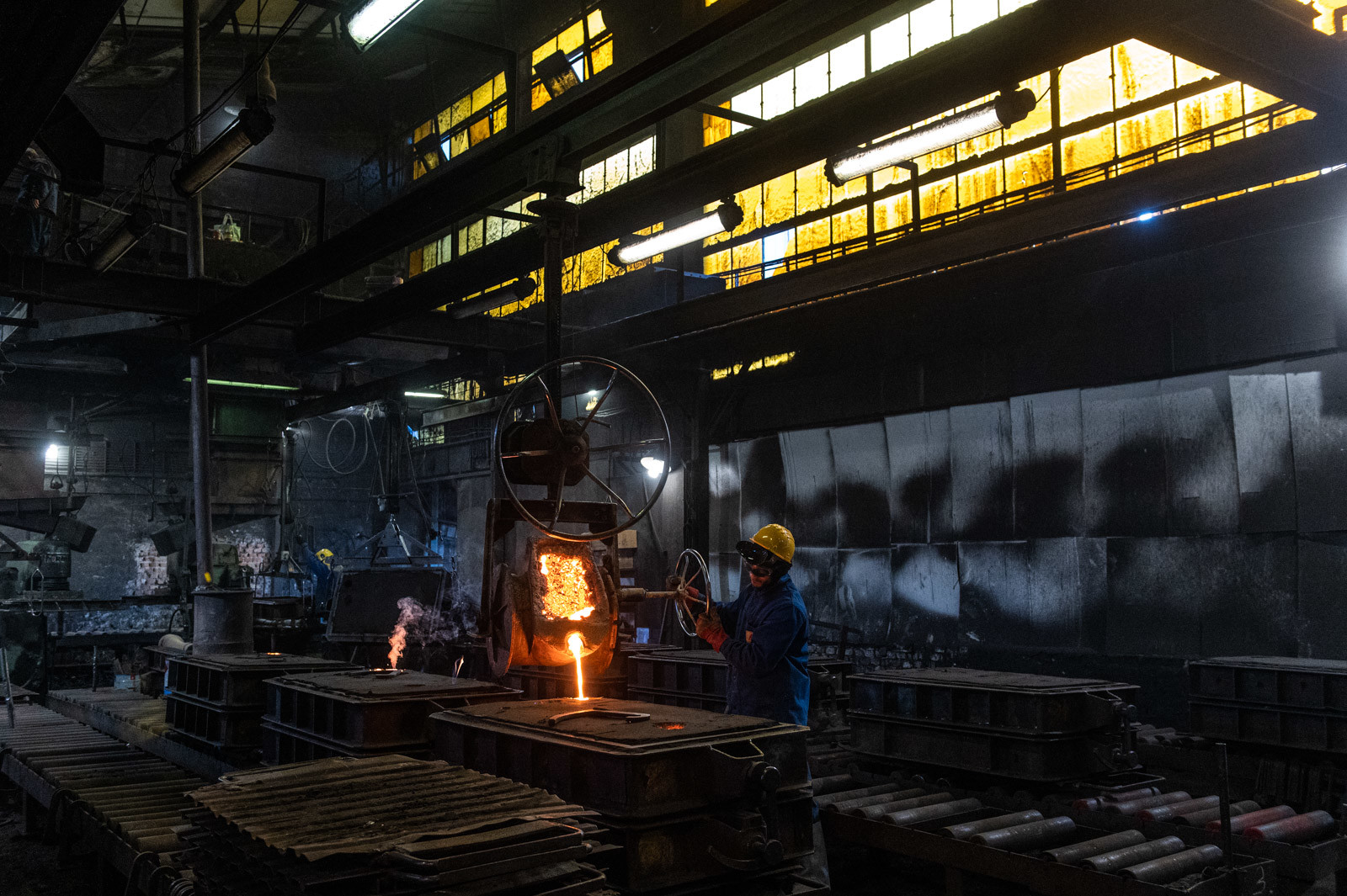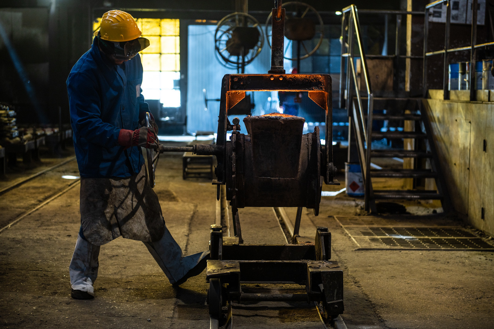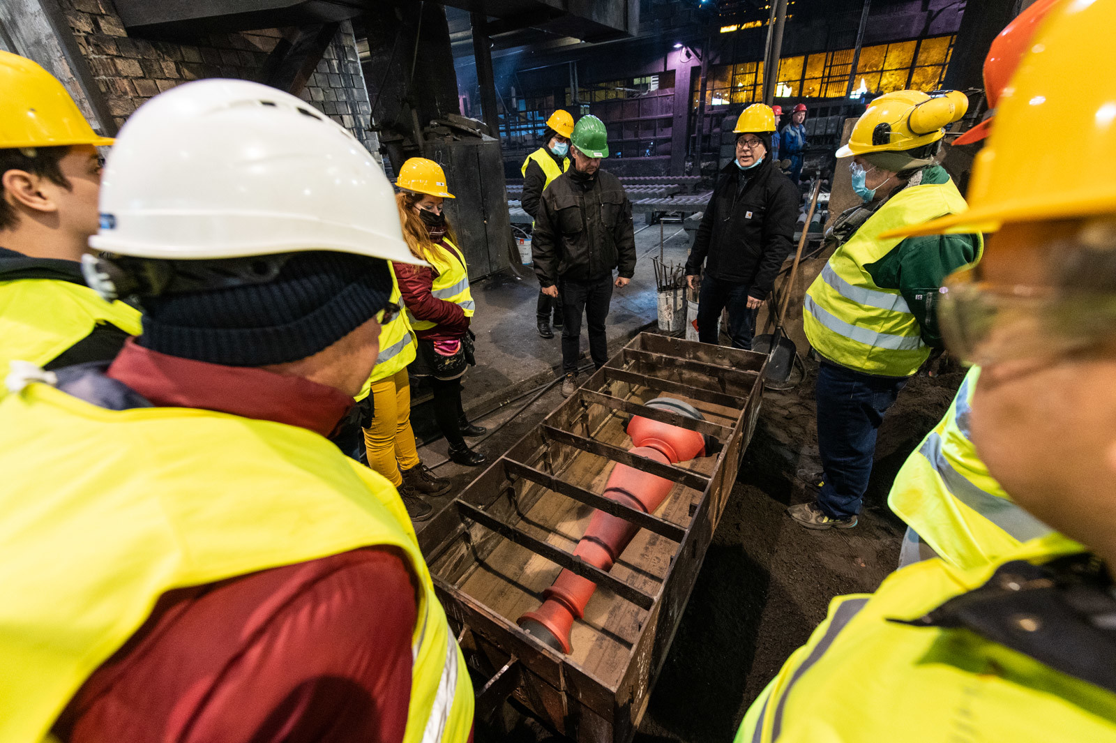 A vasöntödében a híd hosszú történelme során használt technológiákhoz hasonlóan, de modern eszközökkel folyik a munka.