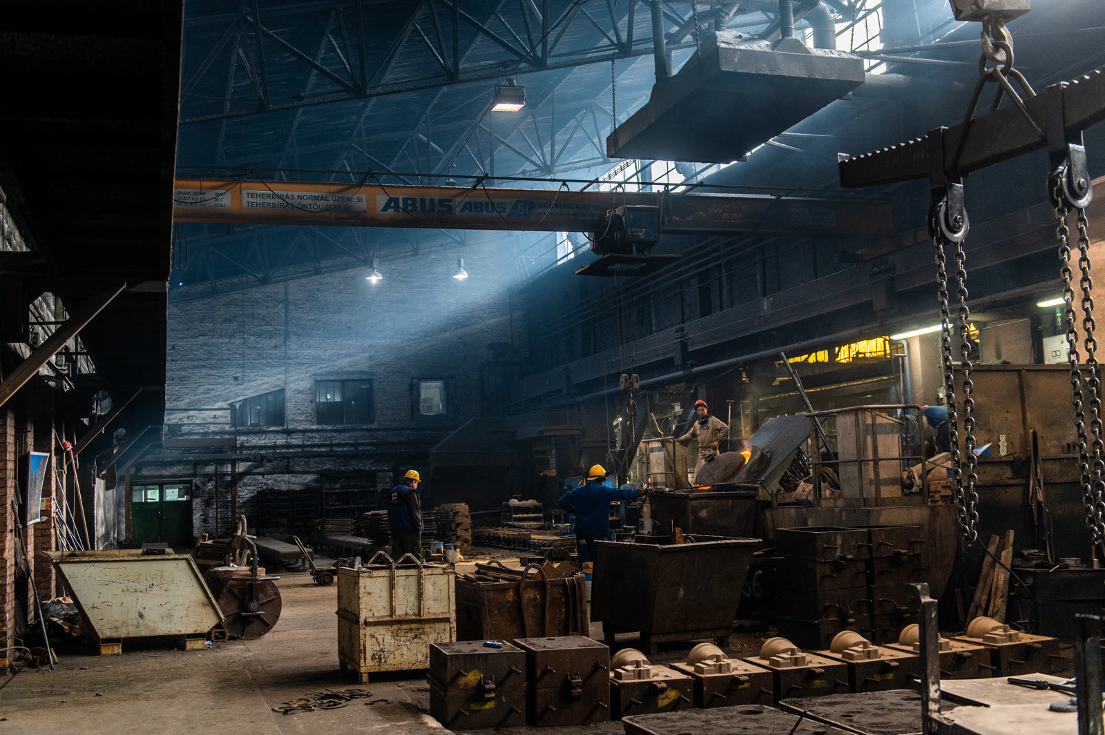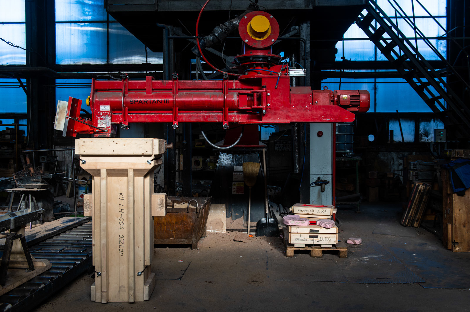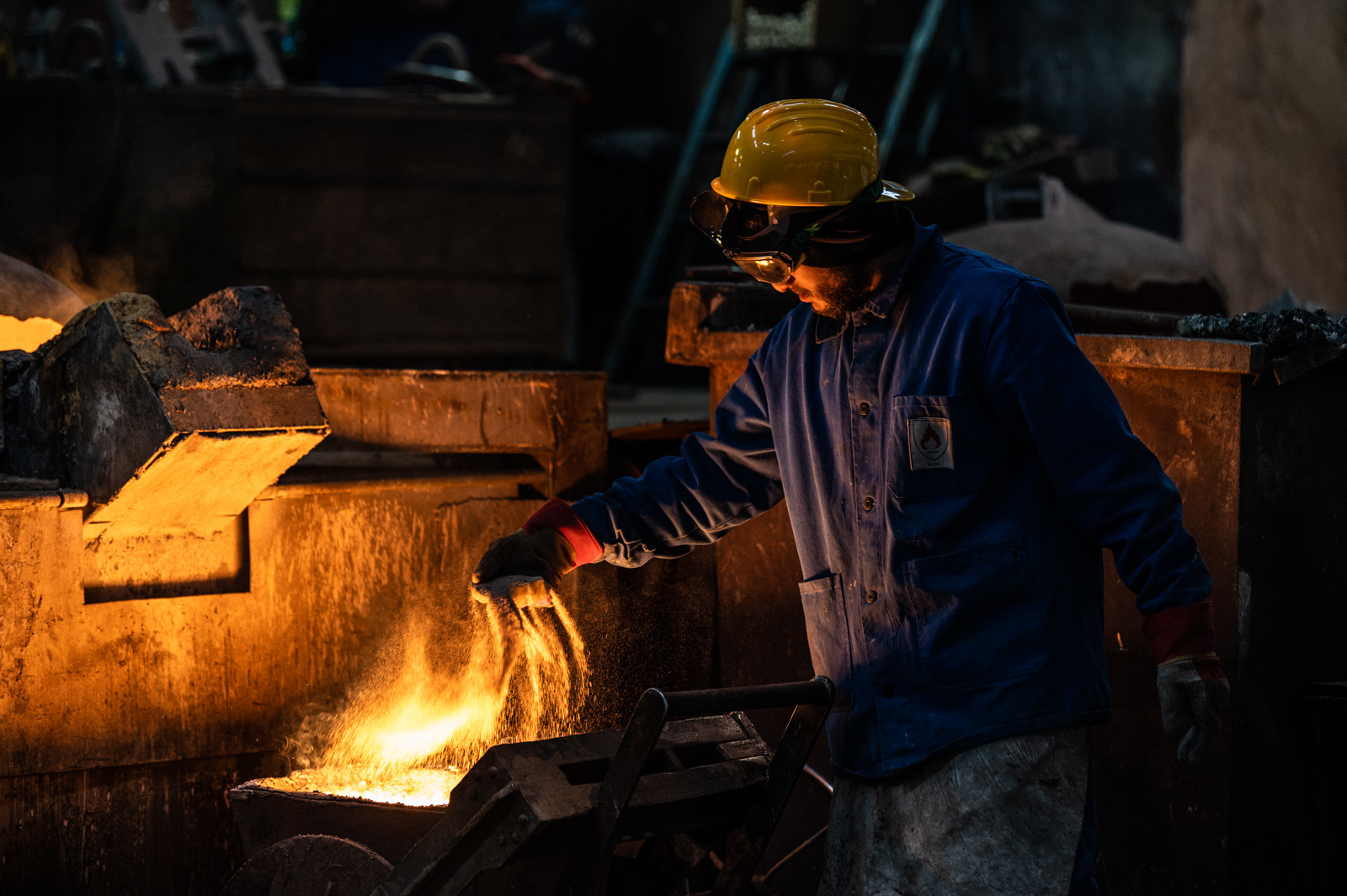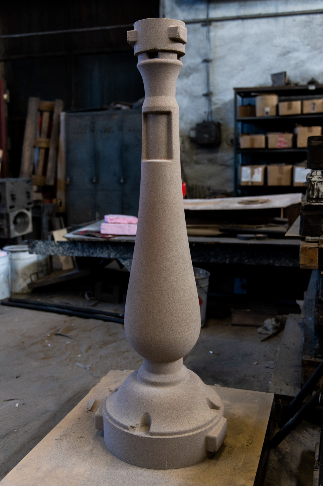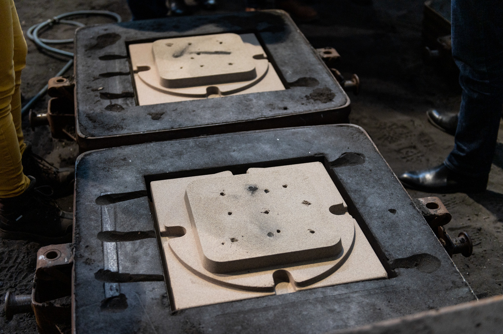 Úgynevezett homokszekrényekben először az öntőminták segítségével a kandeláberelemek negatív formáját hozzák létre, ezt követően homokból készült magminta behelyezésével alakítják ki a belső üregeket is. Az öntvényhez szükséges alapanyagot indukciós kemencékben melegítik, és ha a minősége megfelelő, 1400 fok körüli hőmérsékleten lecsapolják és üstökbe töltik az olvadékot. Innen öntik át a vasat a homokszekrényekbe, majd miután azok lehűlnek, kiveszik a kész vasöntvényeket, amelyek még egy gondos felülettisztítást követően kerülnek elszállításra az üzemből.