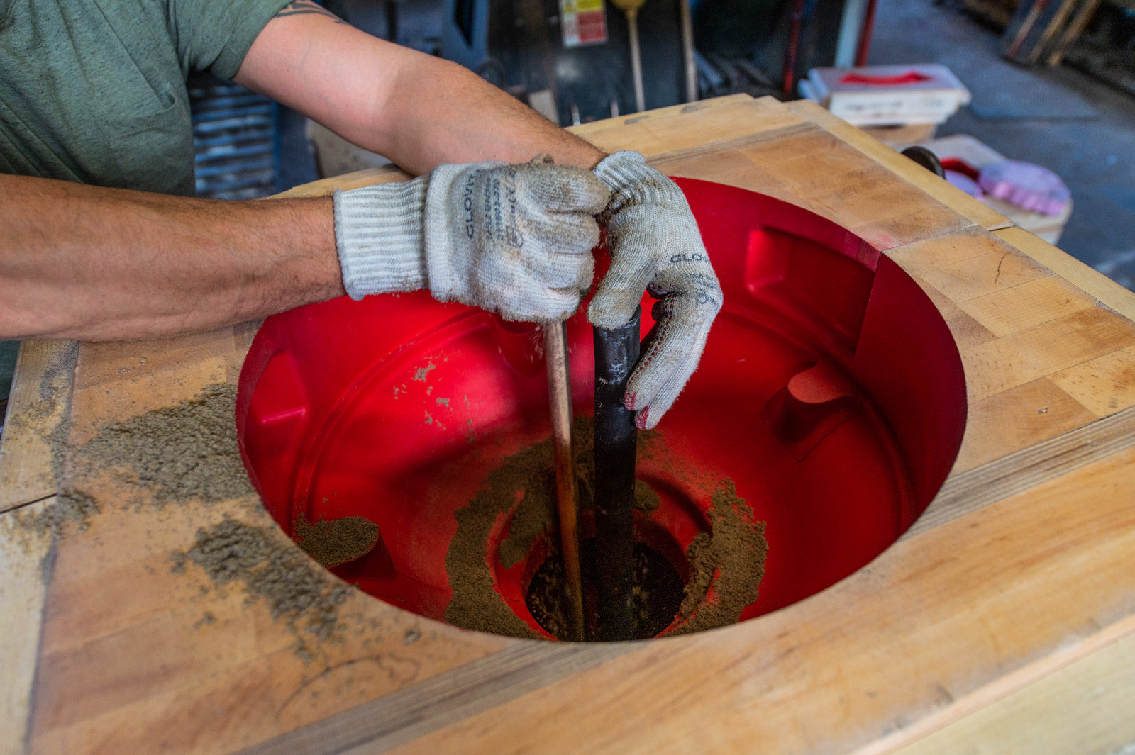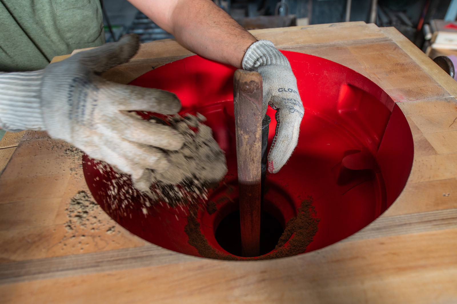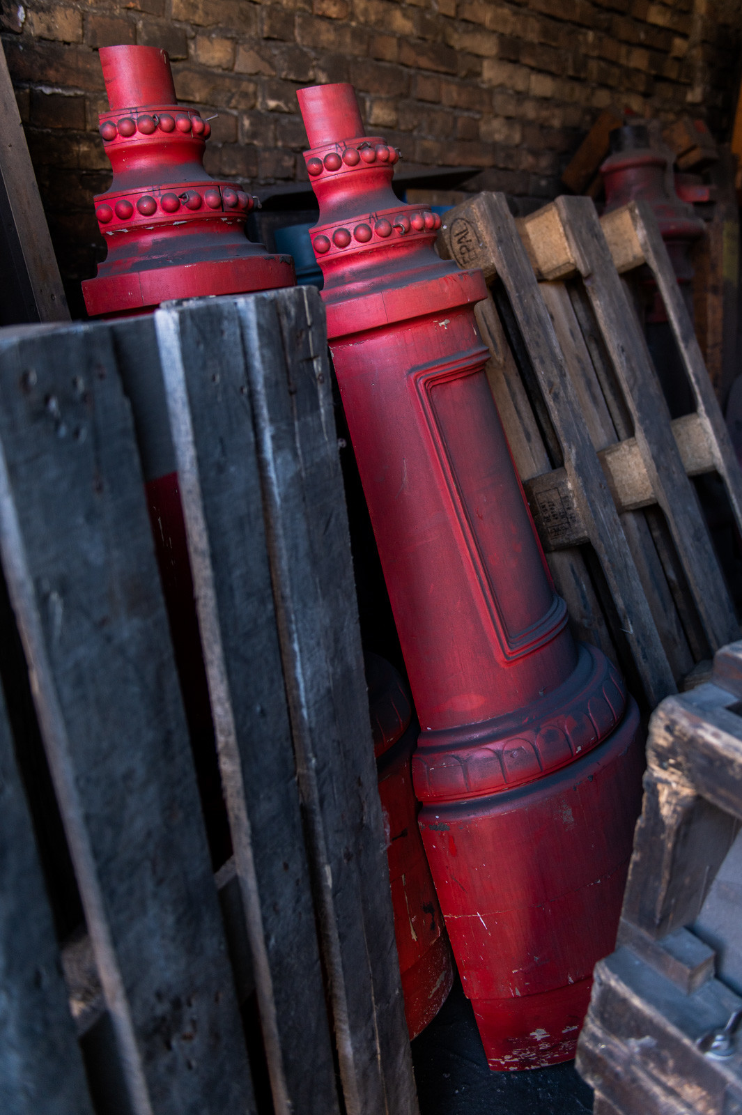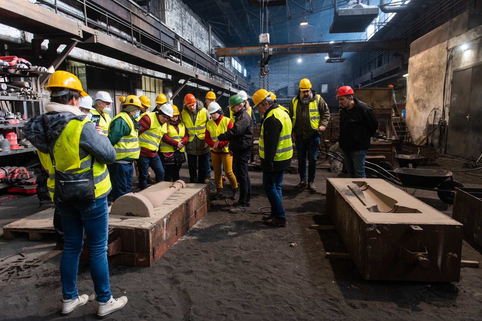 Úgynevezett homokszekrényekben először az öntőminták segítségével a kandeláberelemek negatív formáját hozzák létre, ezt követően homokból készült magminta behelyezésével alakítják ki a belső üregeket is. Az öntvényhez szükséges alapanyagot indukciós kemencékben melegítik, és ha a minősége megfelelő, 1400 fok körüli hőmérsékleten lecsapolják és üstökbe töltik az olvadékot. Innen öntik át a vasat a homokszekrényekbe, majd miután azok lehűlnek, kiveszik a kész vasöntvényeket, amelyek még egy gondos felülettisztítást követően kerülnek elszállításra az üzemből.