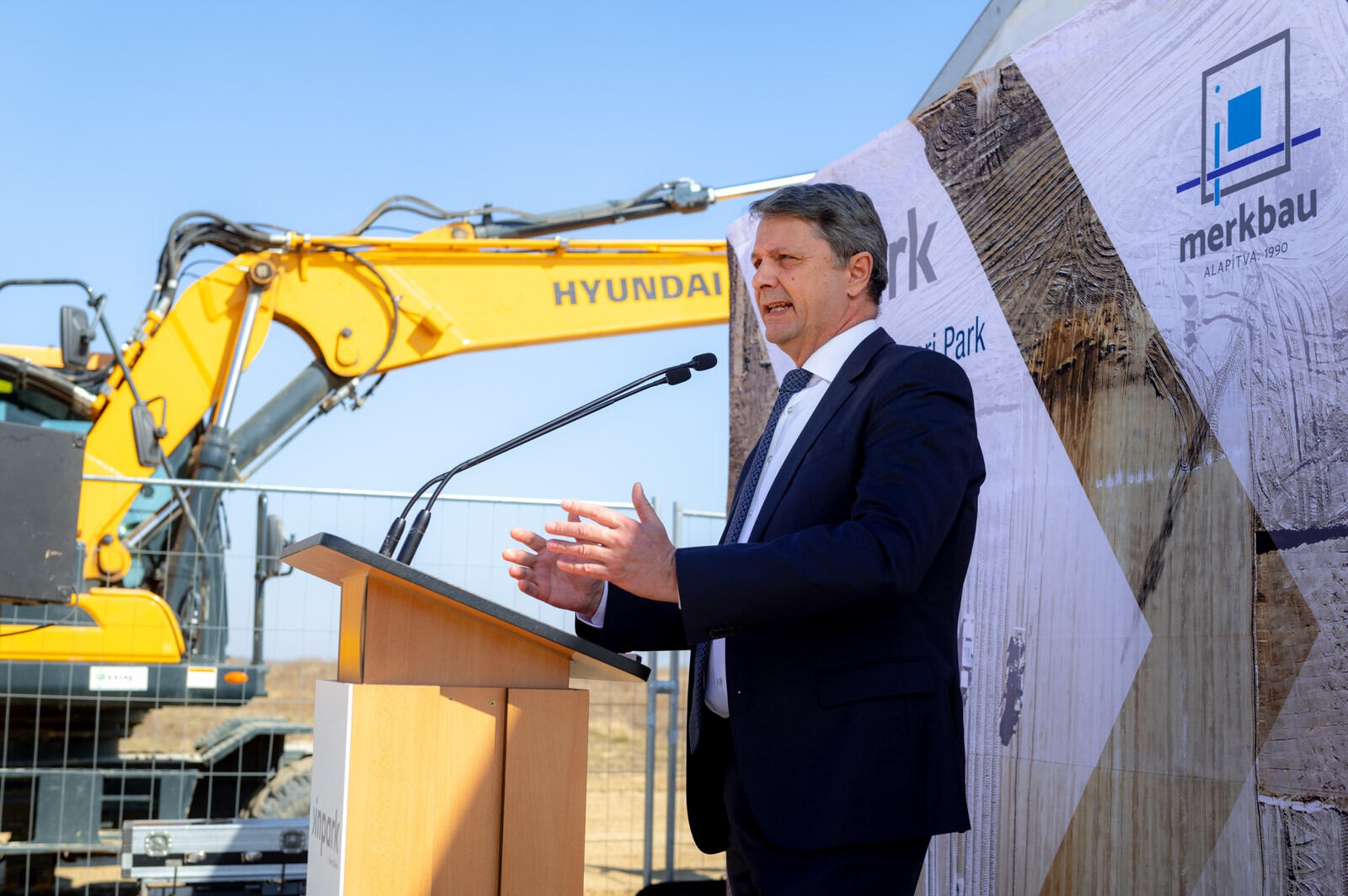 Az eseményen a kivitelező Merkbau Zrt. cégcsoportja nevében Mészáros Attila vállalkozási igazgatóhelyettes mutatta be a projektet. Szavaiból kiderült, a tervezési és kivitelezési munkákra egyéves határideje van a magyar cégnek. „A 70 hektáros területen 30 ezer négyzetméternyi beépítést hajtunk végre, ebből 10 ezer négyzetméternyi csarnok készül gyártó és logisztikai funkcióval” – árulta el a szakember. Mindezt részletezte is: a gyártóterület 5300 négyzetméteren, a raktár 3400 négyzetméteren, míg az iroda két szinten, 2100 négyzetméteren jön létre. „Ezt öleli körbe a nagyjából 16 ezer négyzetméternyi úthálózat és a hozzá tartozó infrastruktúra” – tette hozzá.