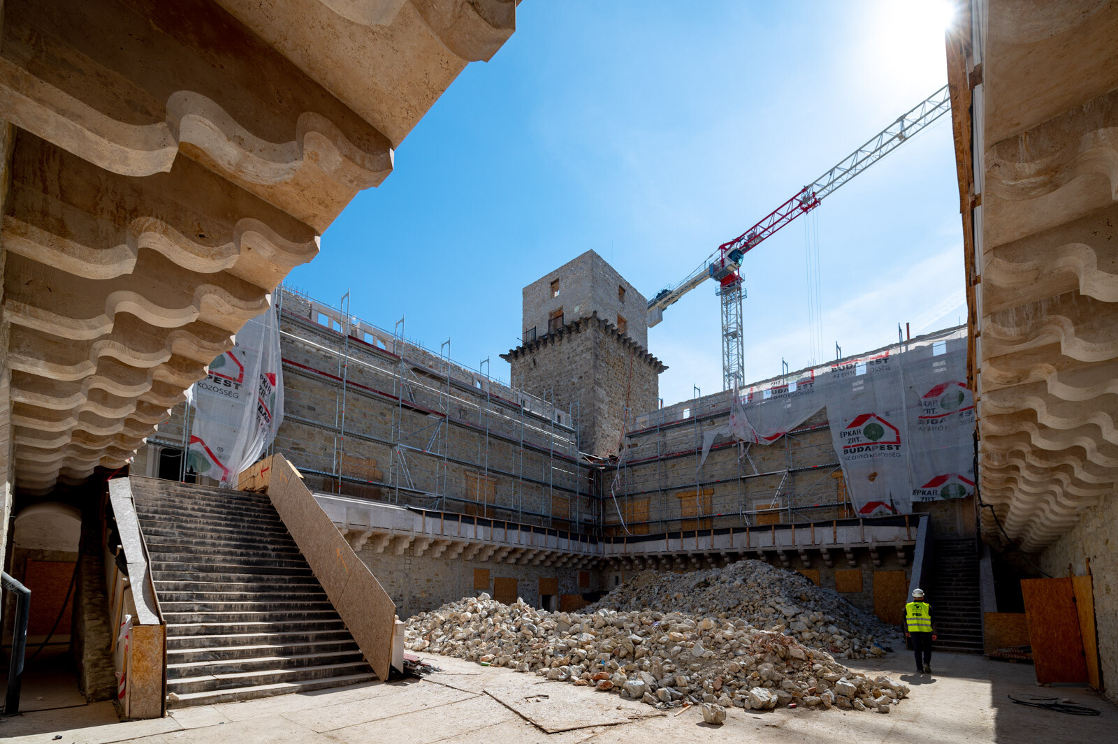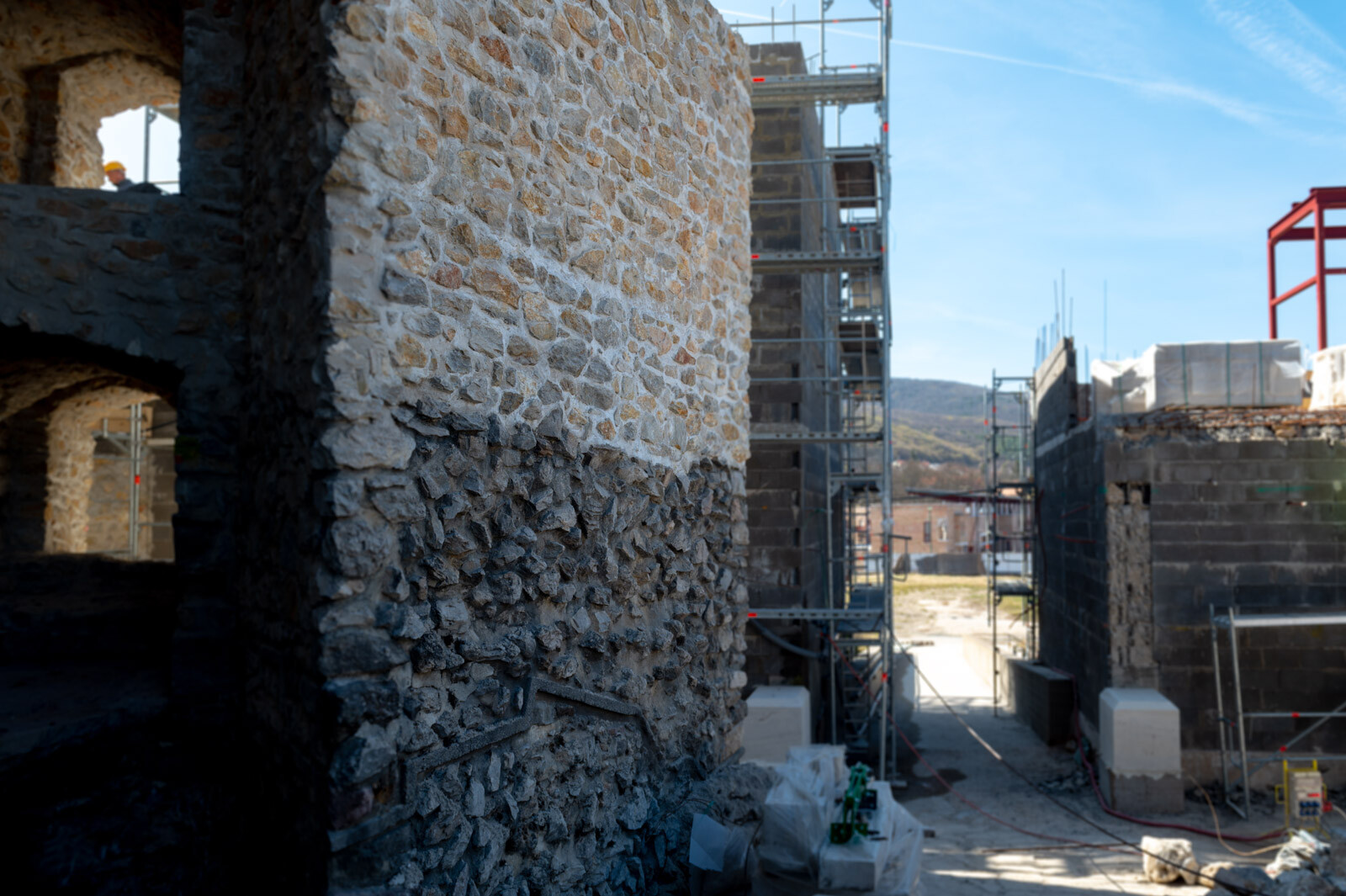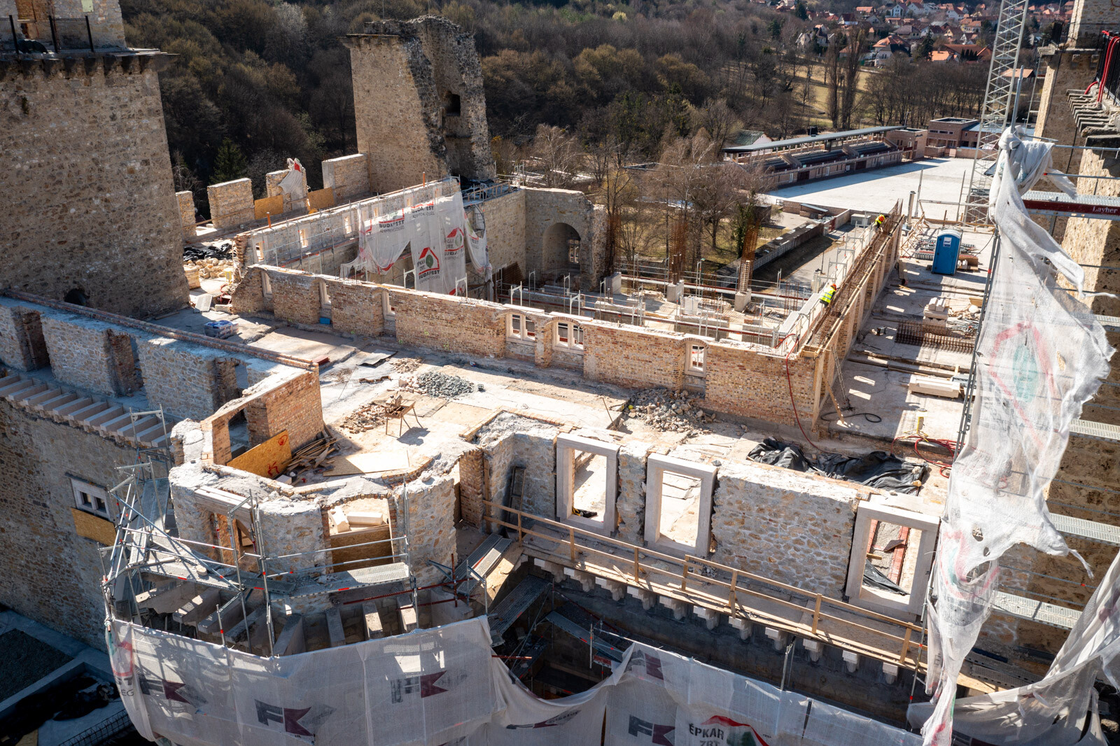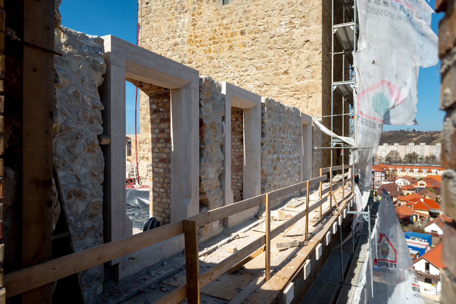 Az Épkar munkatársaitól végül megtudtuk még: a belső várban a nyugati oldal kivételével a második emeleten a belső udvar felé néző falakba már mindenhol beépítették a kő ablakkereteket és jelenleg a kávák finomításain dolgoznak.