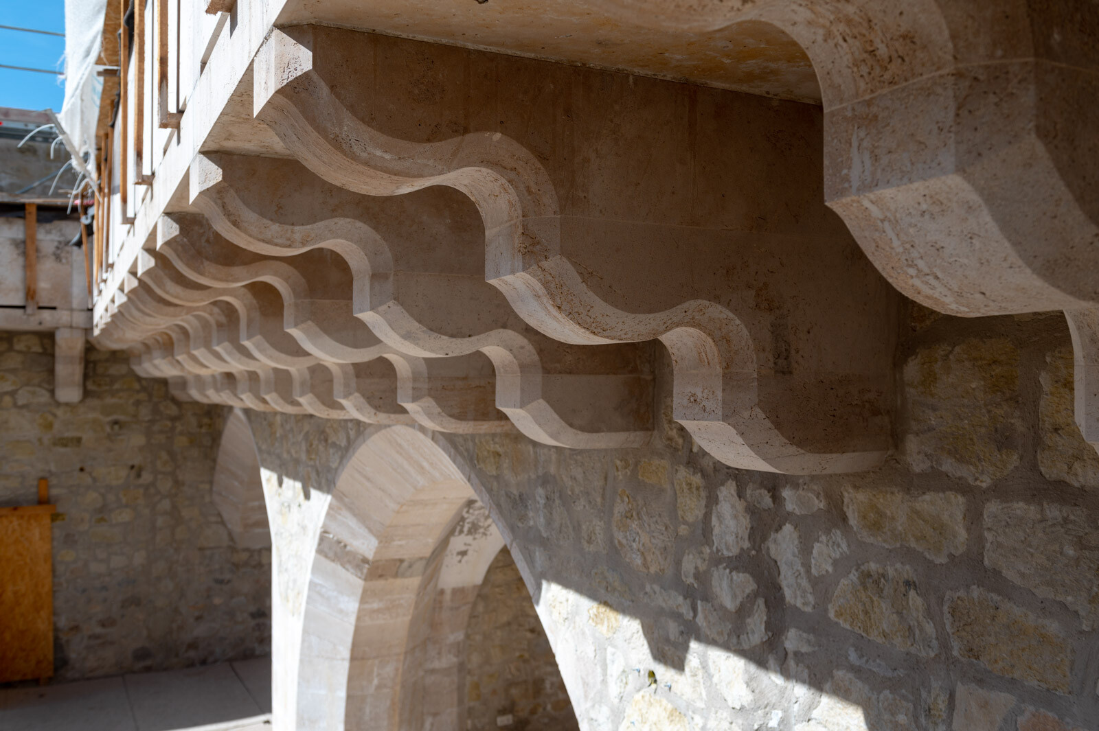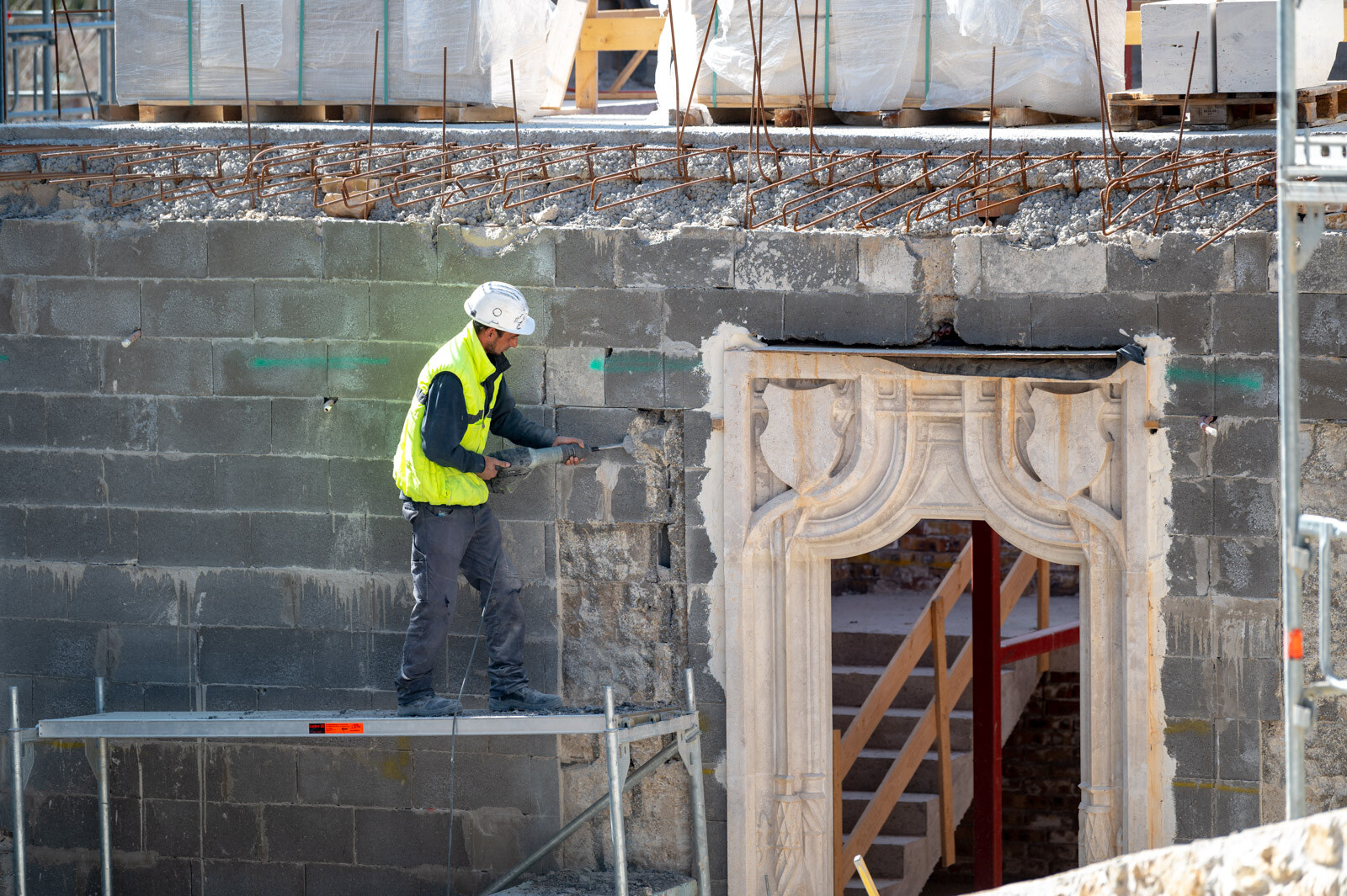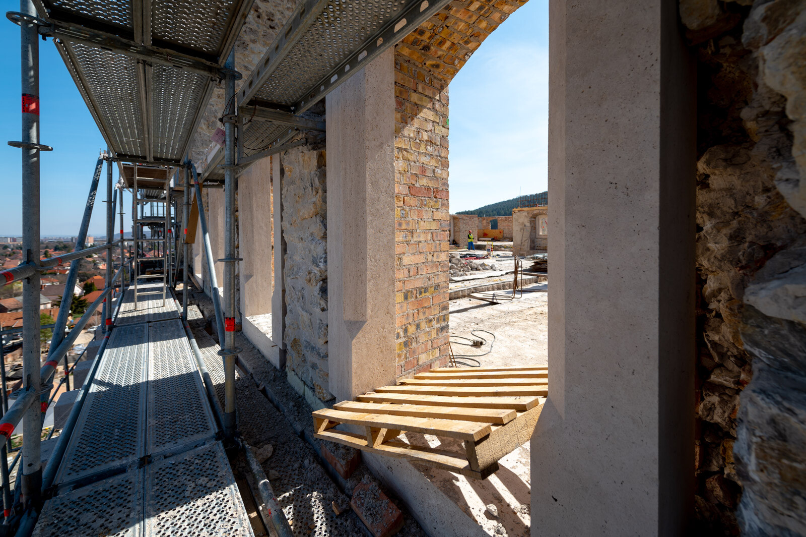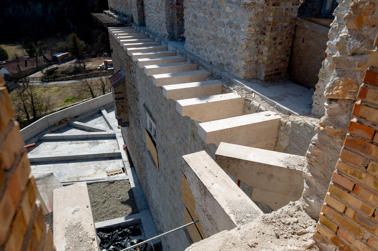 Az Épkar munkatársaitól végül megtudtuk még: a belső várban a nyugati oldal kivételével a második emeleten a belső udvar felé néző falakba már mindenhol beépítették a kő ablakkereteket és jelenleg a kávák finomításain dolgoznak.