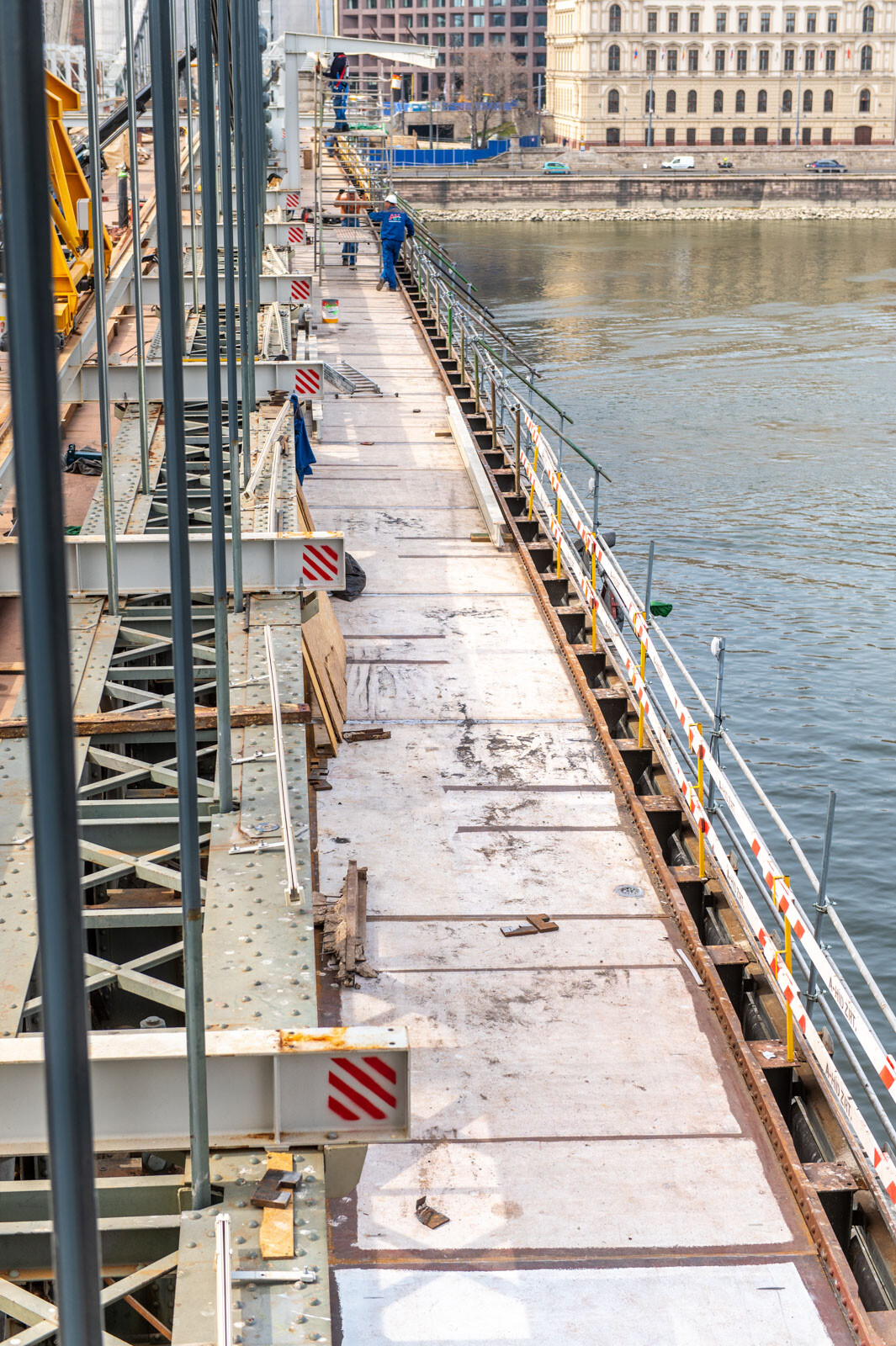 A medernyílásban a két pillér között a pályaszint alatti acélszerkezetek – vagyis a kijavított tartószerkezetek és a beépített új, ortotróp acél pályatáblák – rozsdásodás elleni védelme heteken belül kezdetét veszi. A láncok fennmaradó része a híd közepéről indulva már ezekkel a szerkezetekkel együtt újul meg.