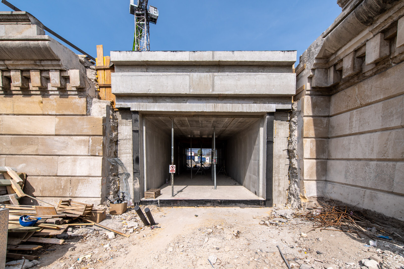 Elkészült a pesti hídfőben a láncok föld alatti szakaszának, valamint a lehorgonyzó öntvények rozsdásodás elleni védelme.