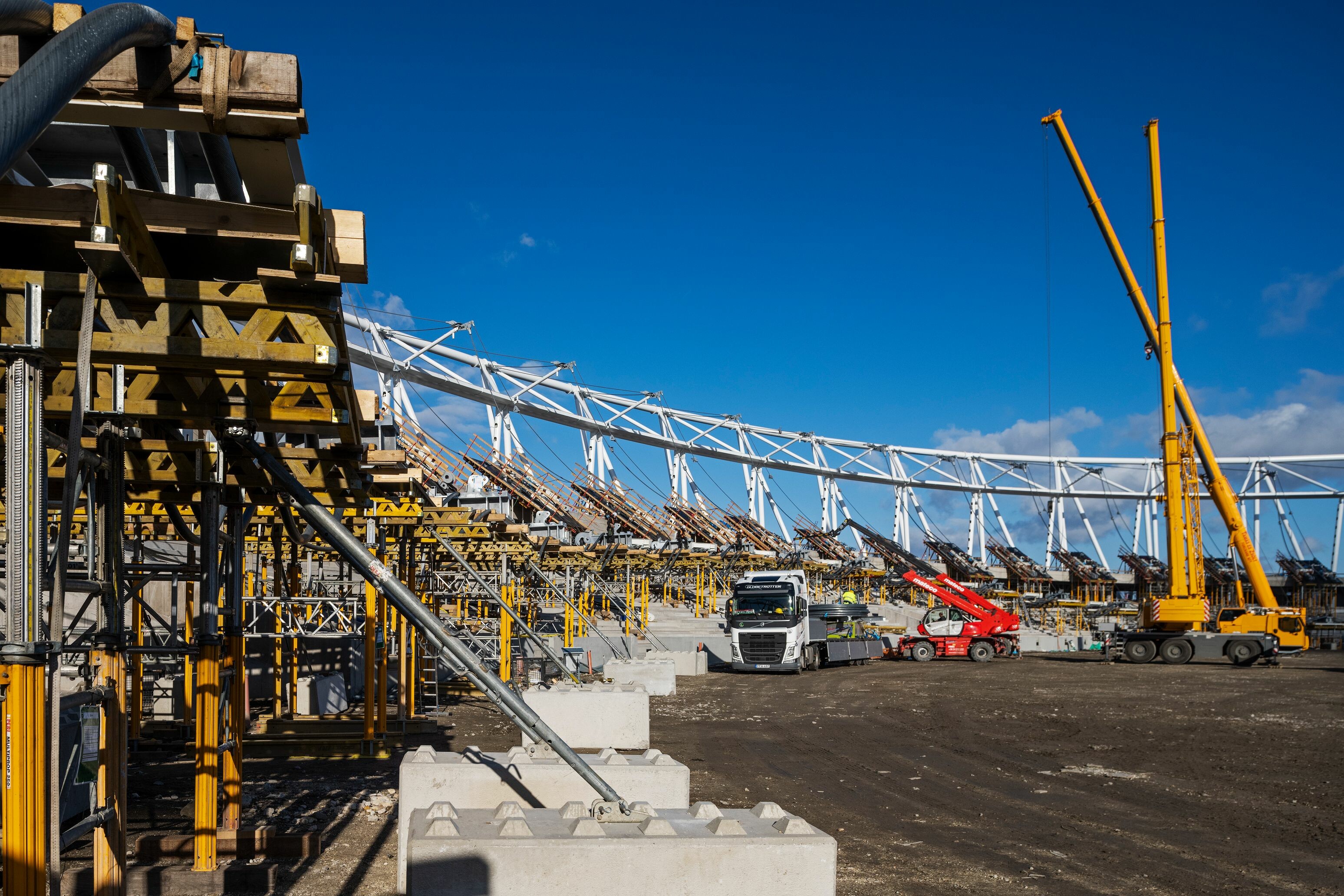 A Nemzeti Atlétikai Stadionnál zajló munkálatok egyik leglátványosabb folyamata tavaly nyáron indult meg a tetőszerkezeti elemek helyére emelésével. A projekt fő kivitelezője a ZÁÉV Zrt. és a Magyar Építő Zrt. alkotta konzorcium, építtetője pedig a Beruházási Ügynökség BMSK Zrt.