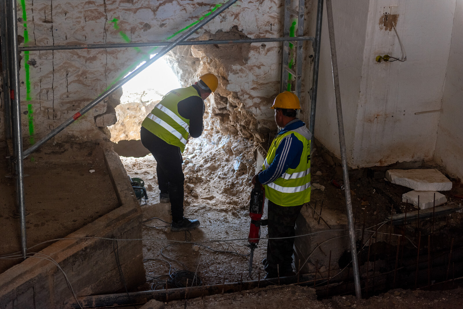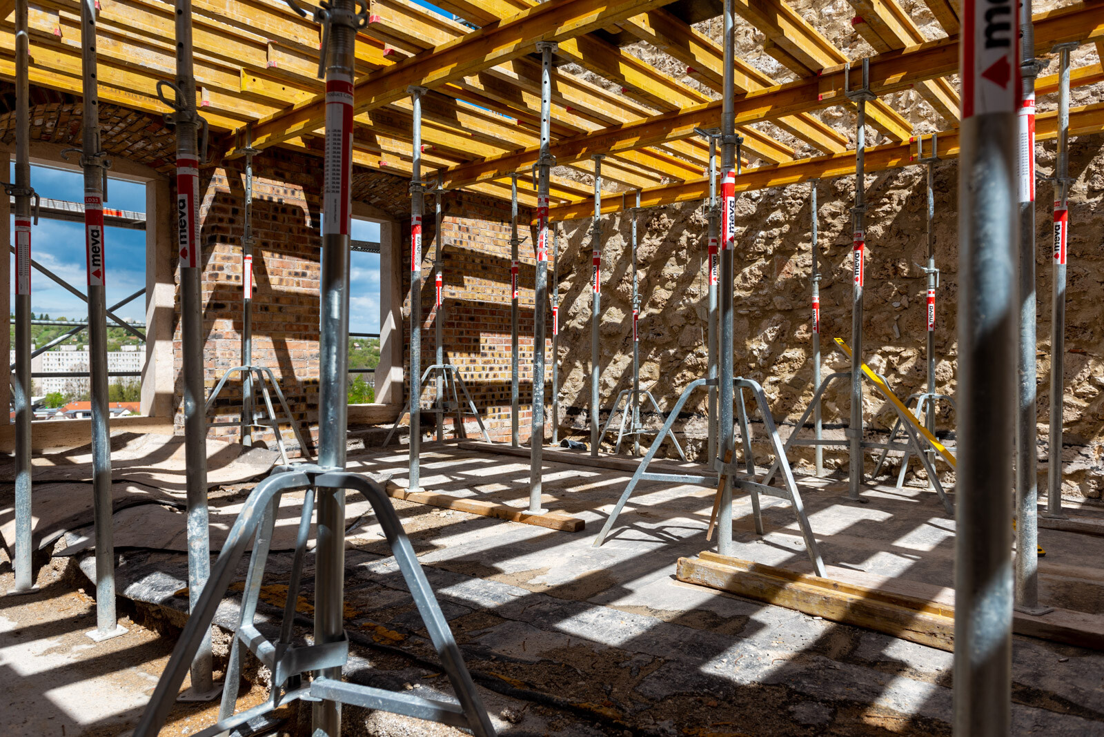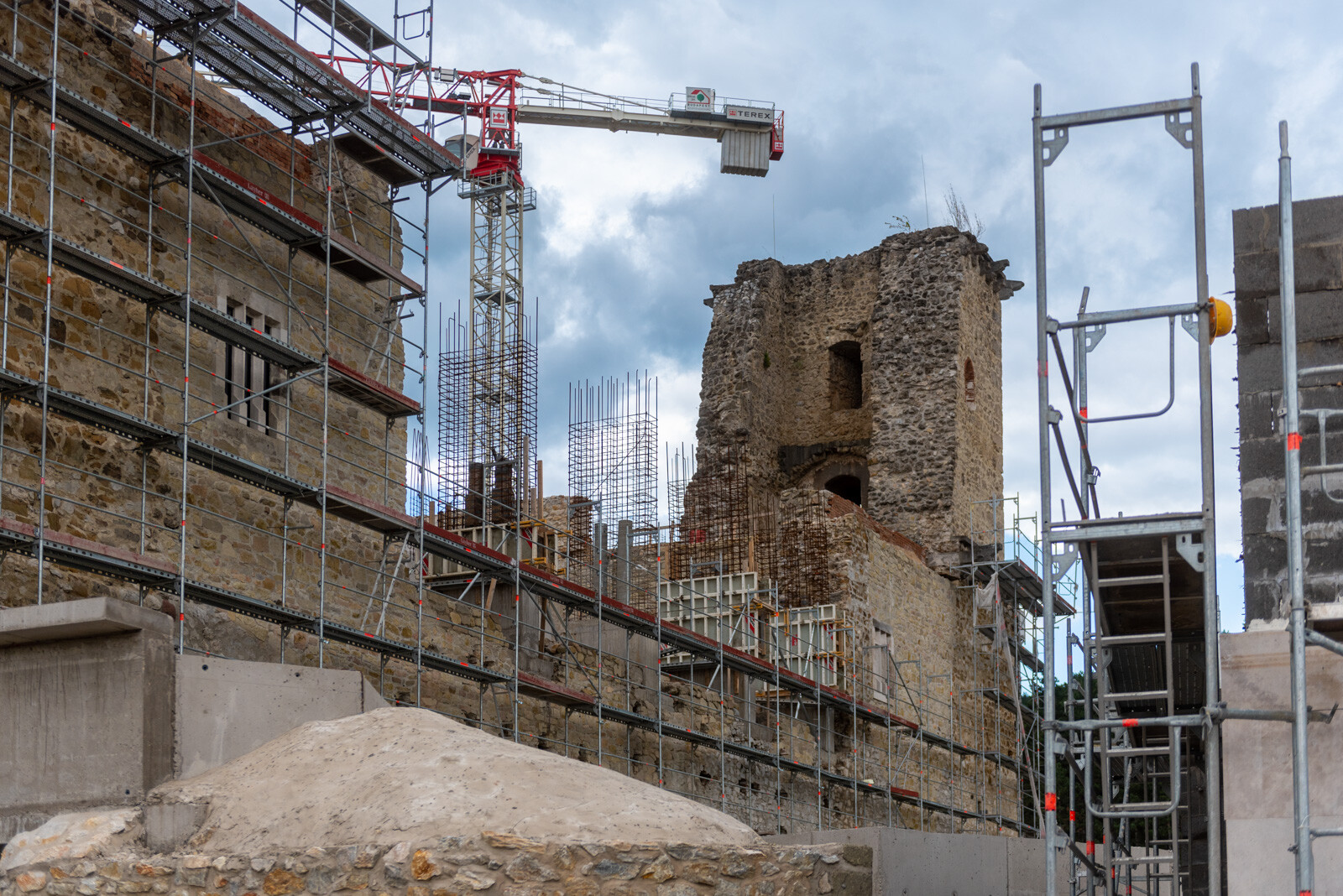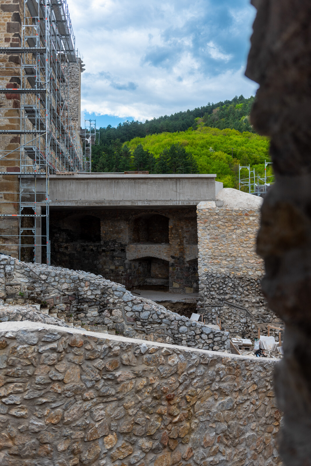 Végül egy modern elemet a várba építő munkáról is szó esett: a szintén a külső várban található a hatszögletű, lépcsőházi funkciót ellátó toronynak nem csupán a szerkezete készült el, hanem előkészíttették két lift beépítésére is.