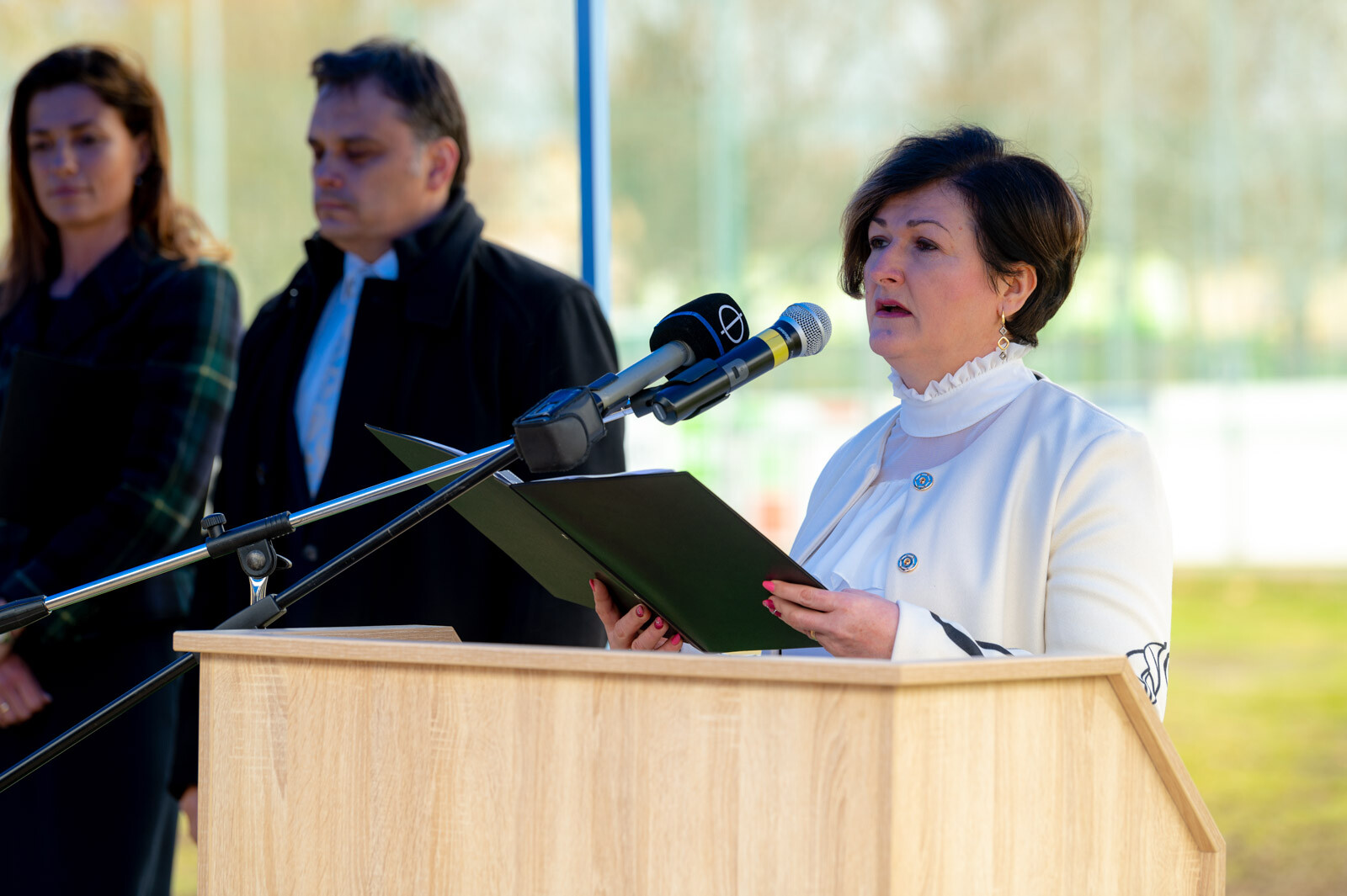 Az eseményen felszólalt Dr. Varga Judit igazságügyi miniszter, aki beszédében a létesítmény egyediségét emelte ki, hiszen úgy fogalmazott, a jelen beruházás keretében megvalósuló kulturális és sportközpont Magyarország első ilyen jellegű nagy és összetett multifunkcionális rendezvényközpontja lehet, amely egyaránt alkalmas lesz sportolásra, művelődésre és valamennyi közösségi pillanat átélésére.