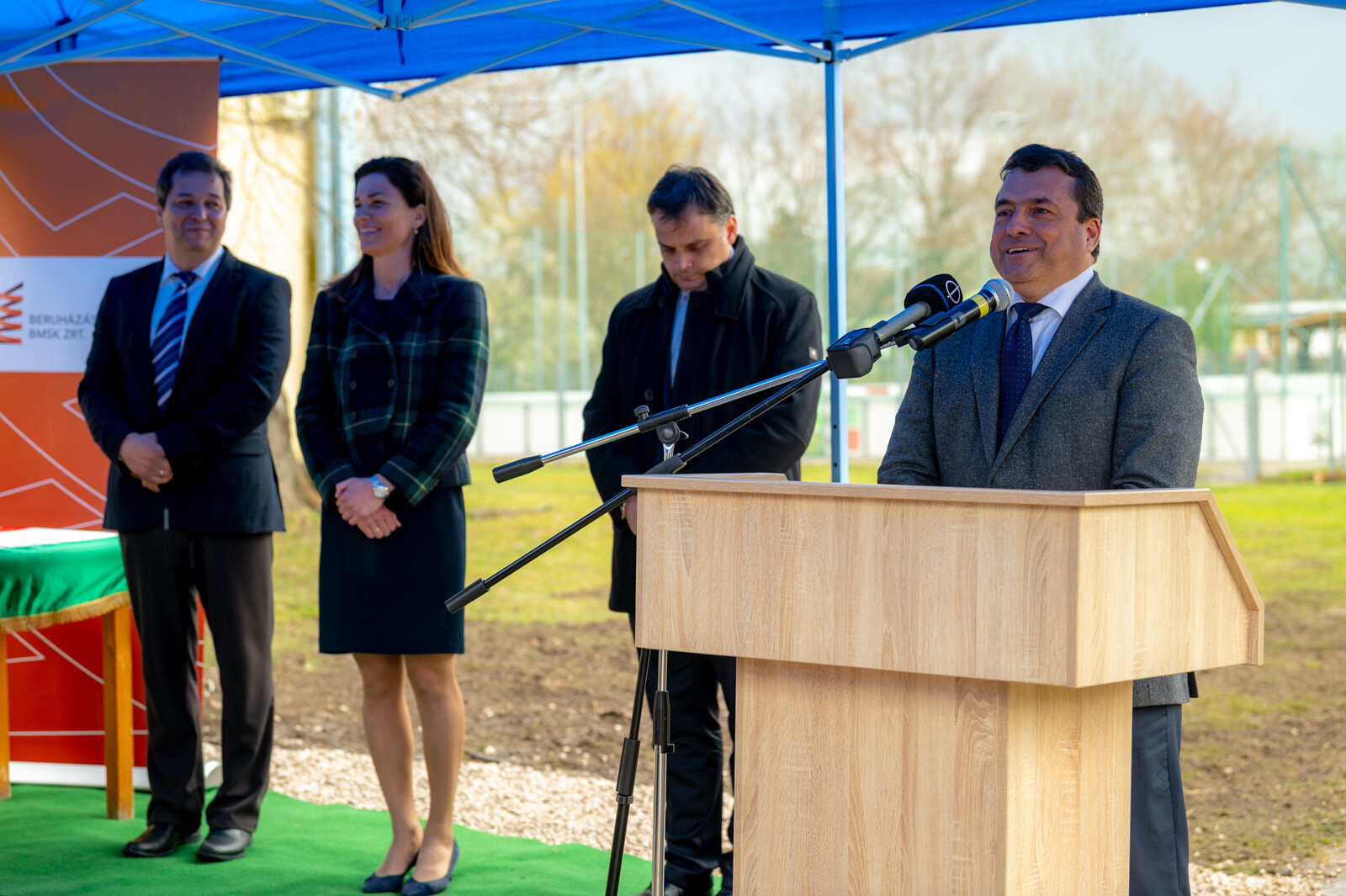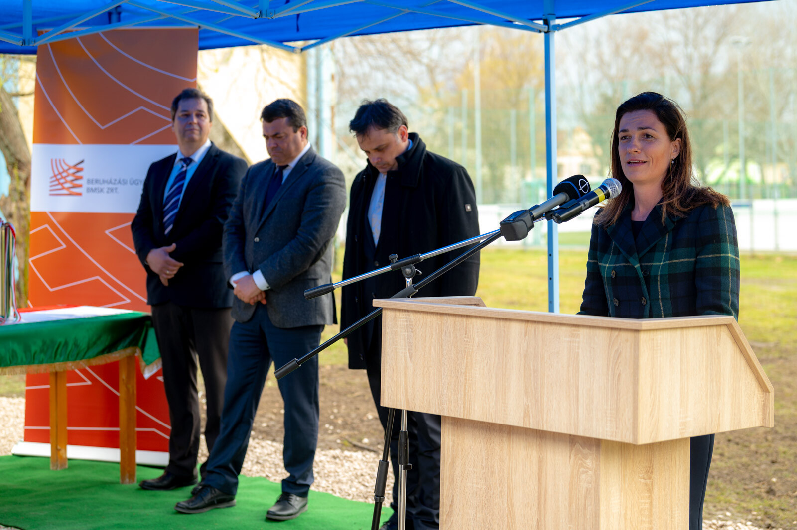 Hozzátette: a sportközpont nem csak a közösségi életnek ad teret, hanem Magyarország megújuló energiát is fel fogja használni, hiszen rámutatott, a projektnek köszönhetően zöldfelület, valamint elektromos töltőállomás is létesül, továbbá minden, ami a 21. századi innovációhoz szükséges, és amit lehet hasznosítani a közösségi létben.