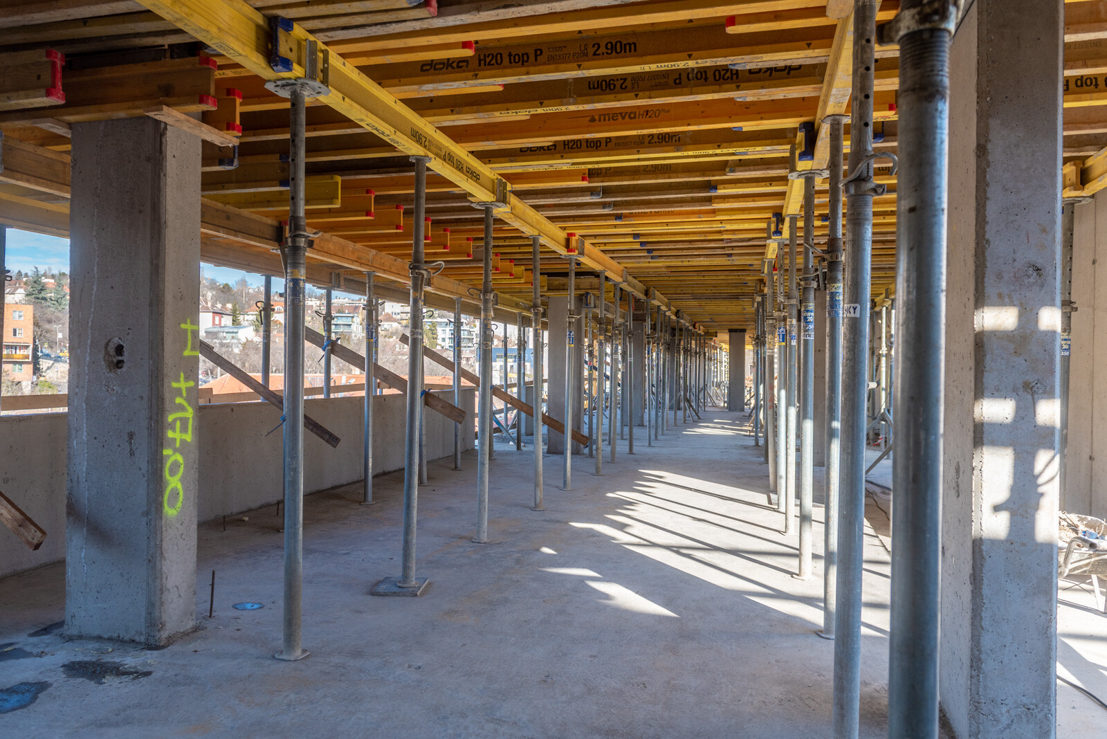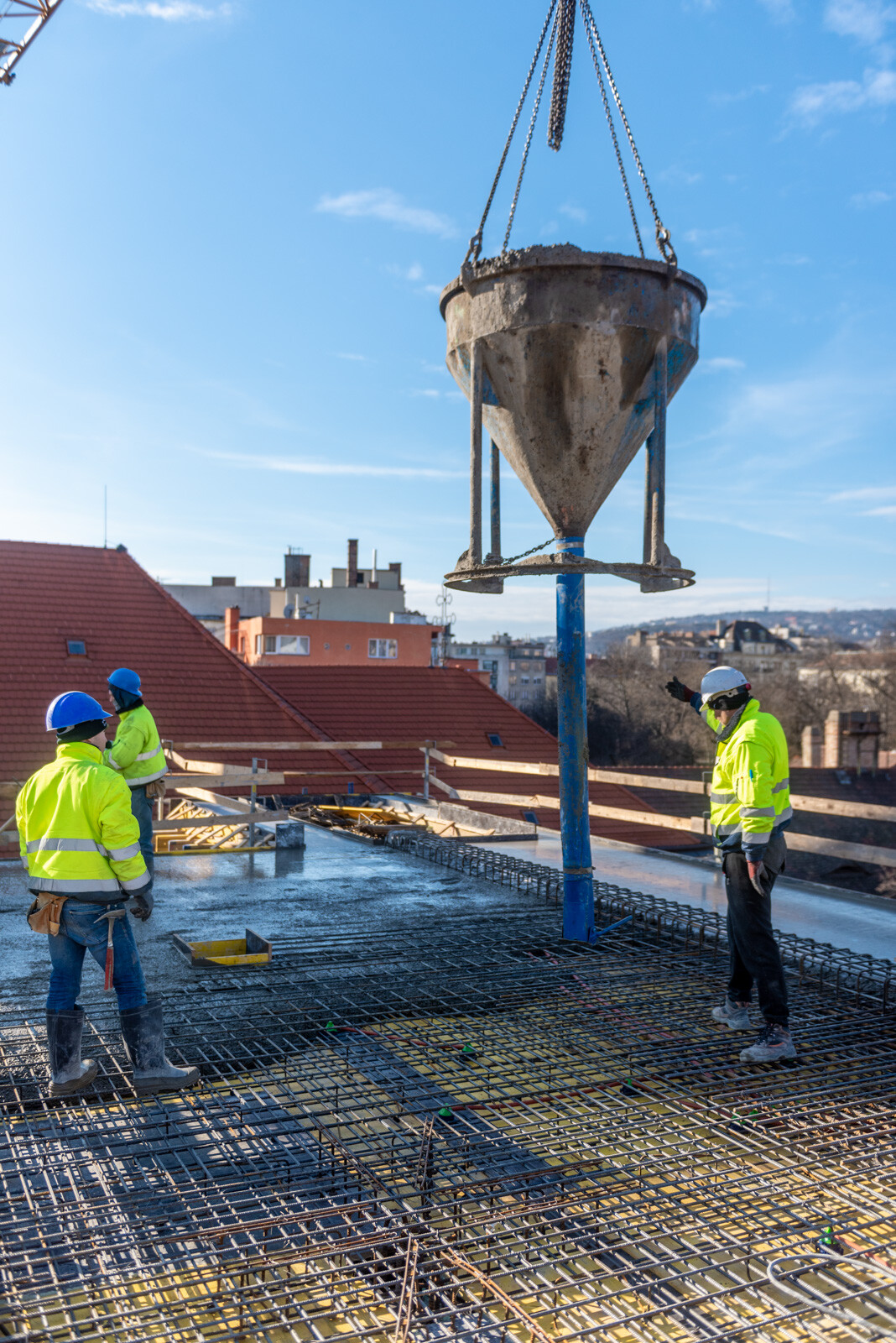 Miután a vasbeton szerkezetet felhúzták a felső szintekig, elbontották a tetőt, helyére kétszintes tetőt alakítottak ki koporsófödémmel, ami egy magas komfortfokozatot és életminőséget nyújtó szerkezeti kialakítás.