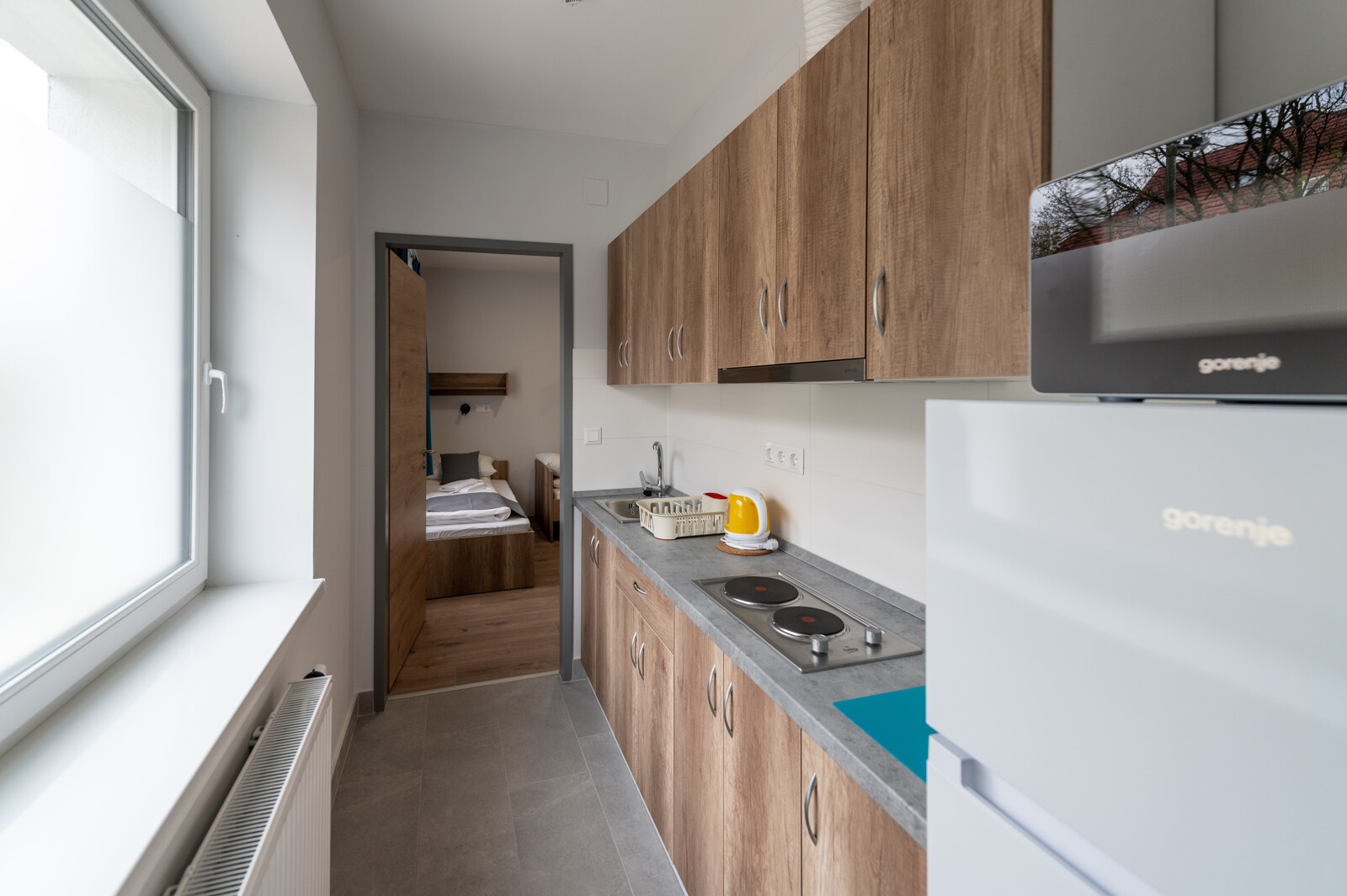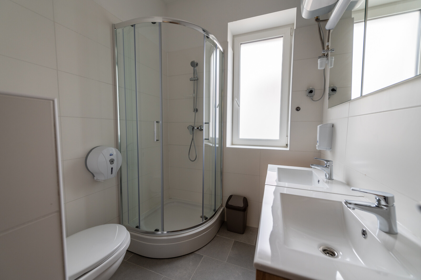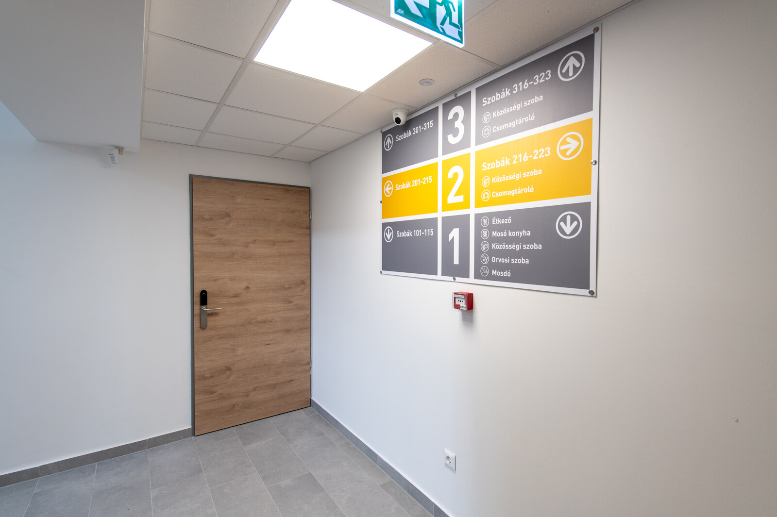 Az épületben helyet kapott egy akadálymentesített apartman, orvosi vizsgáló és beteg szoba is. A közös használatú helyiségekben főzésre, étkezésre, mosásra is lehetőség adódik. A munkaidő utáni szabadidő eltöltésére televízióval is felszerelt, kényelmes közös használatú belső terek állnak rendelkezésre, továbbá az épület körüli parkosított területen kerti kiülőket is kialakítottak.