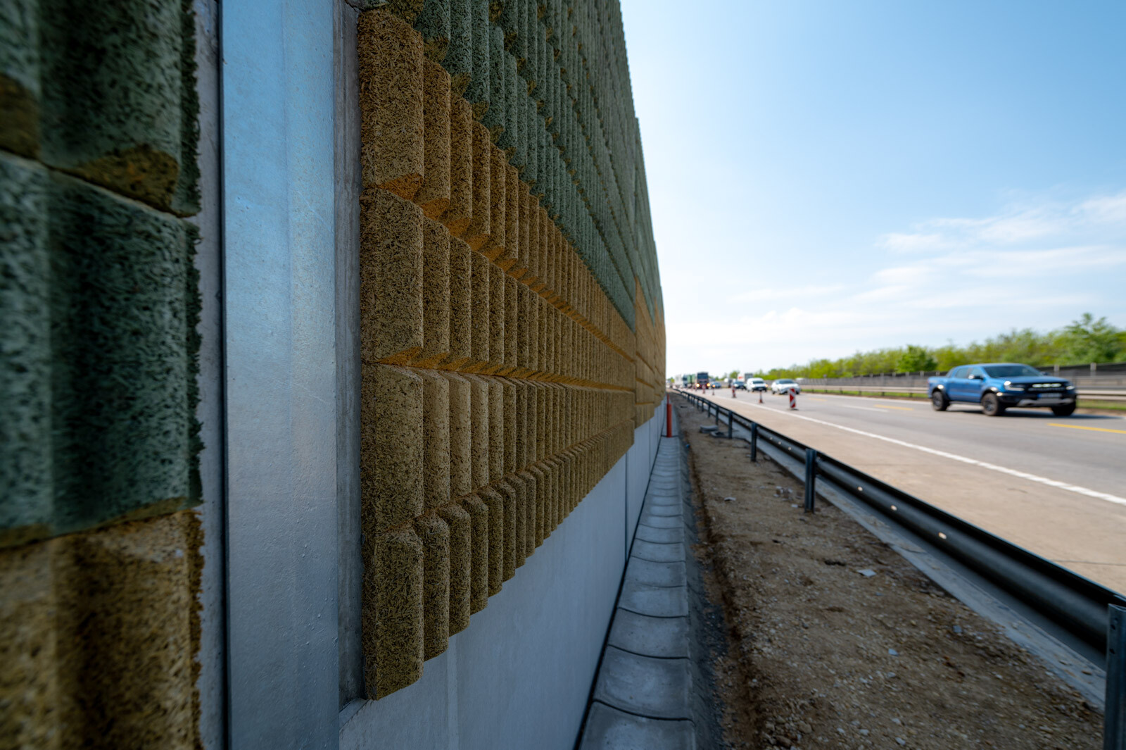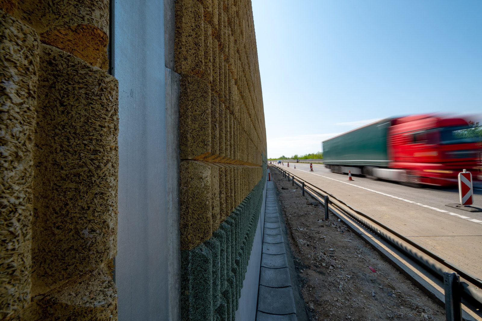 Az említett szakaszon a teljes, beépítésre szánt tömör, fabetonos Durisol zajfal panelek mennyisége 2567 négyzetmétert tesz ki.