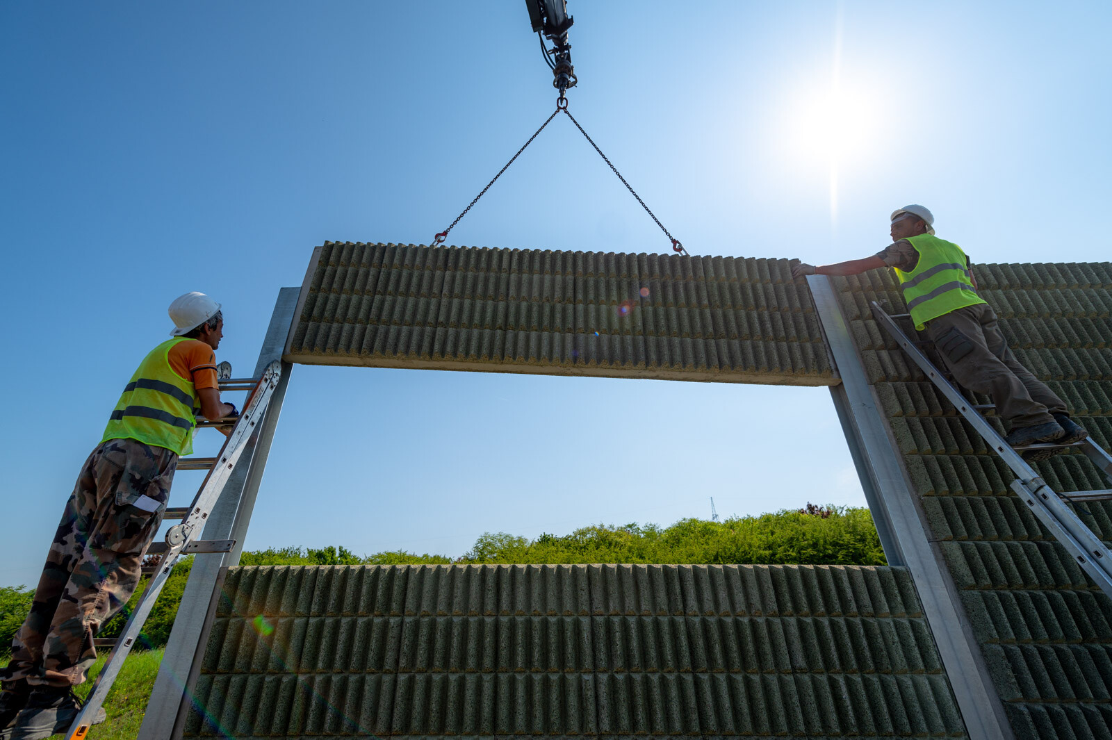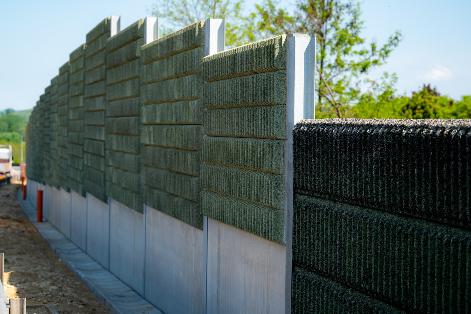 A projekt során a meglévő zajárnyékoló falak átépítése és magasítása történik meg átlátszatlan tömör, fabetonos Durisol panelek felhasználásával.