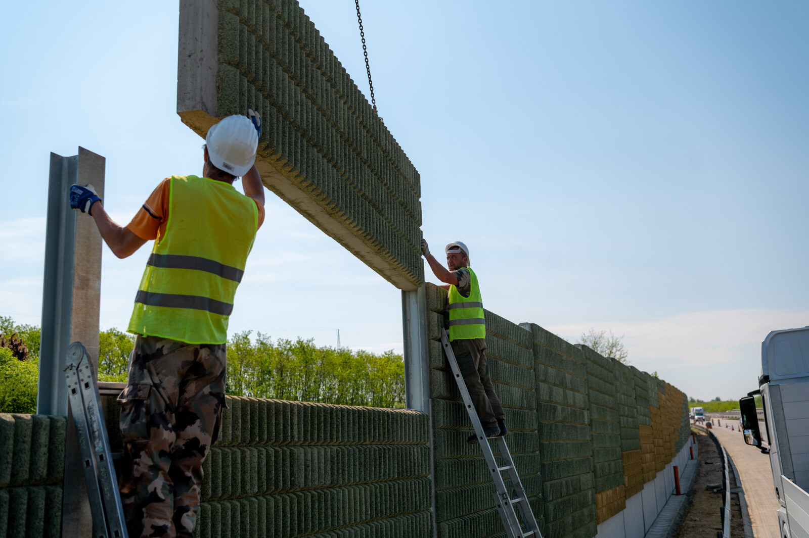A vállalkozás vezető elmondta, jelenleg alapozási munkák folynak, valamint a tartóoszlopok beépítési és lábazati elemeinek elhelyezési munkái. A Durisol zajfalak előnyeiről hozzátette: vandálbiztosak, magas zajelnyelő és léghanggátló képességgel bírnak, az előírt paraméterek szerinti, gyors és egyszerű beépíthetőség jellemző rájuk, és nem mellesleg környezetbarát alapanyagból készülnek.