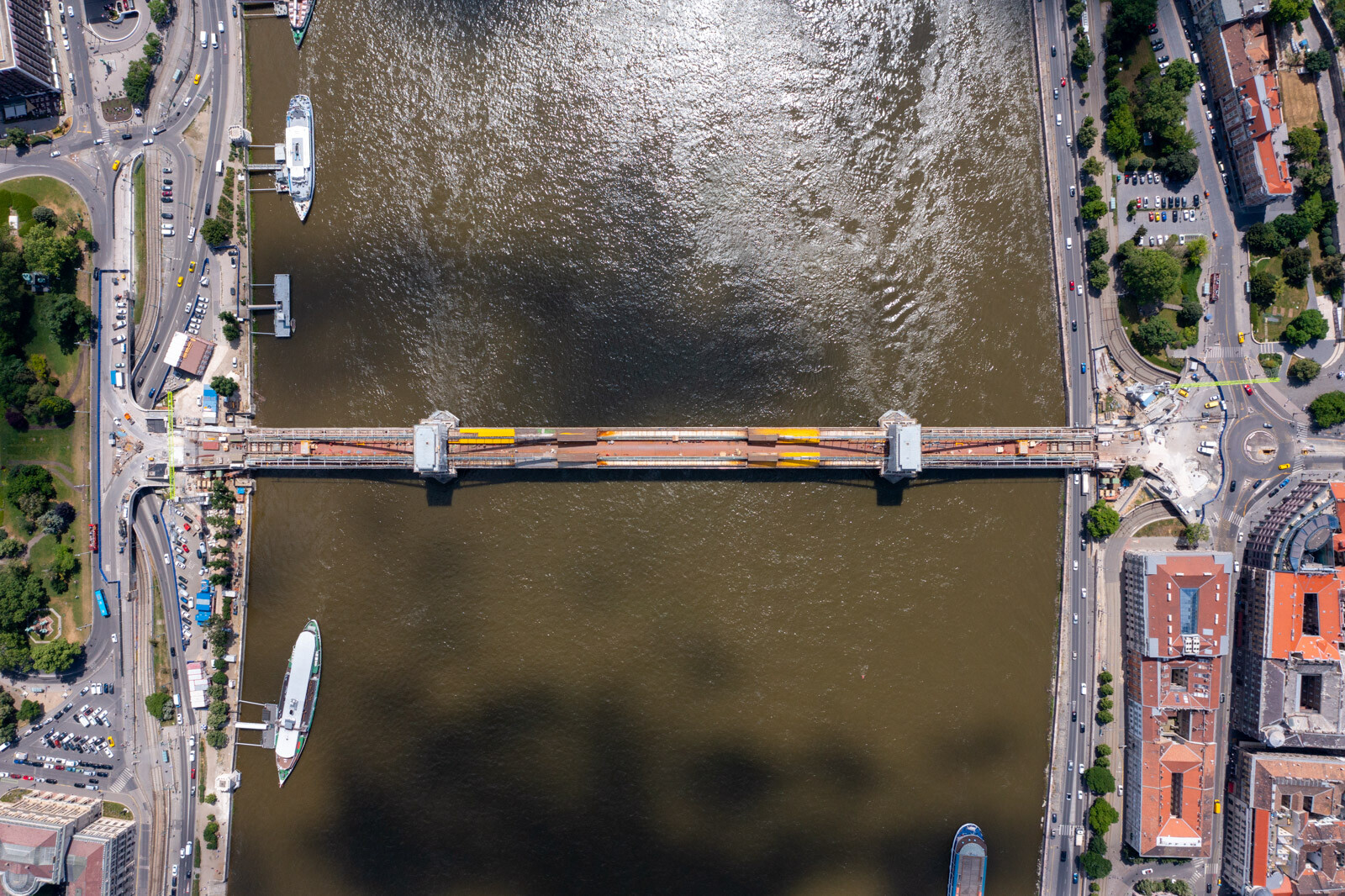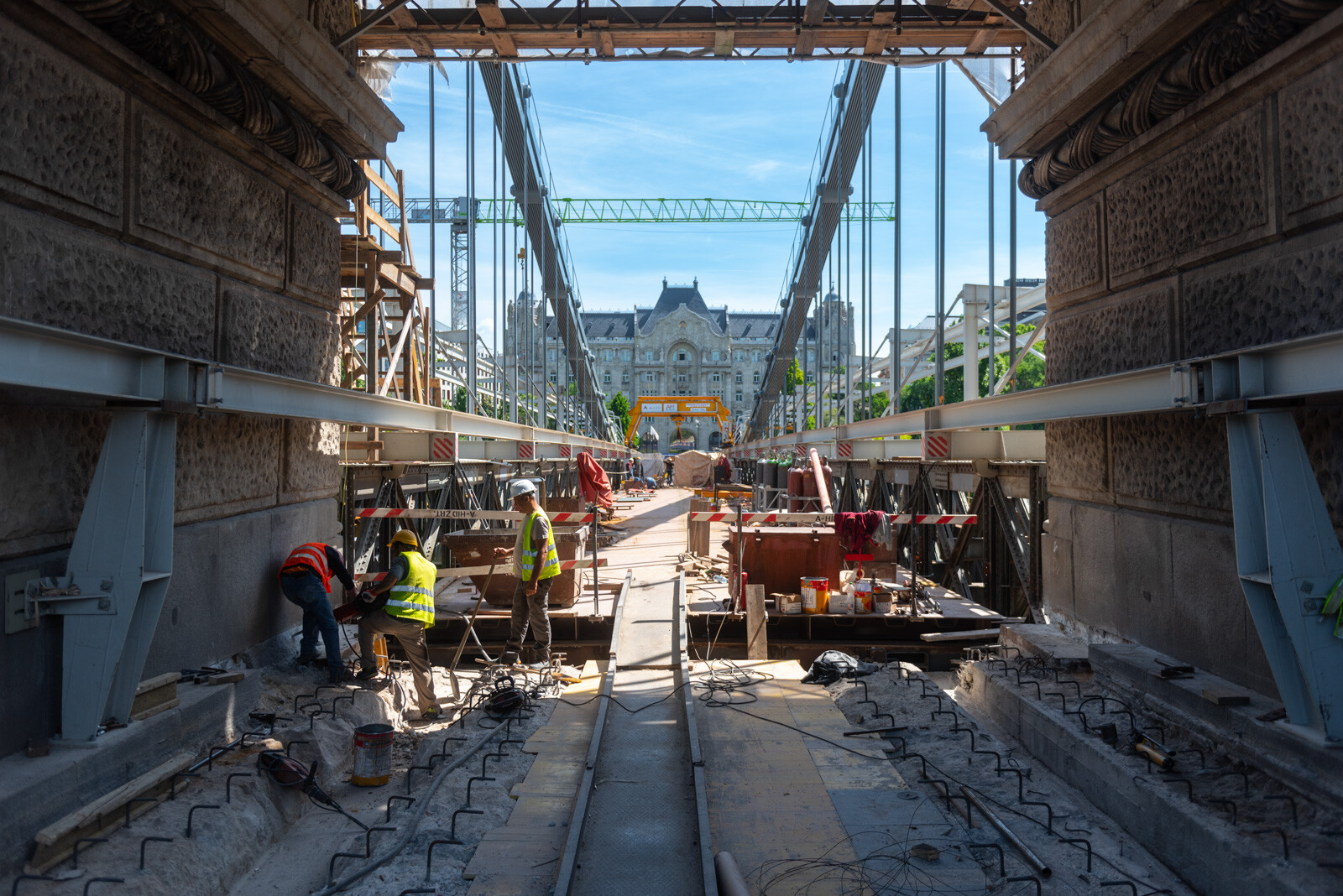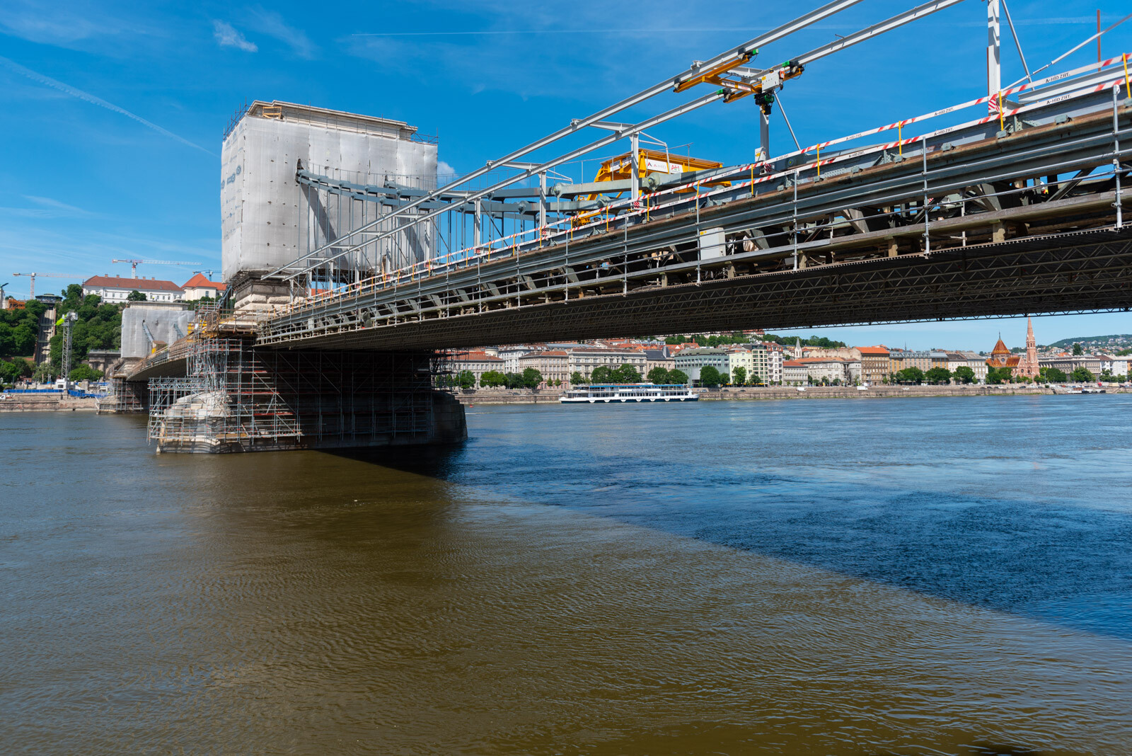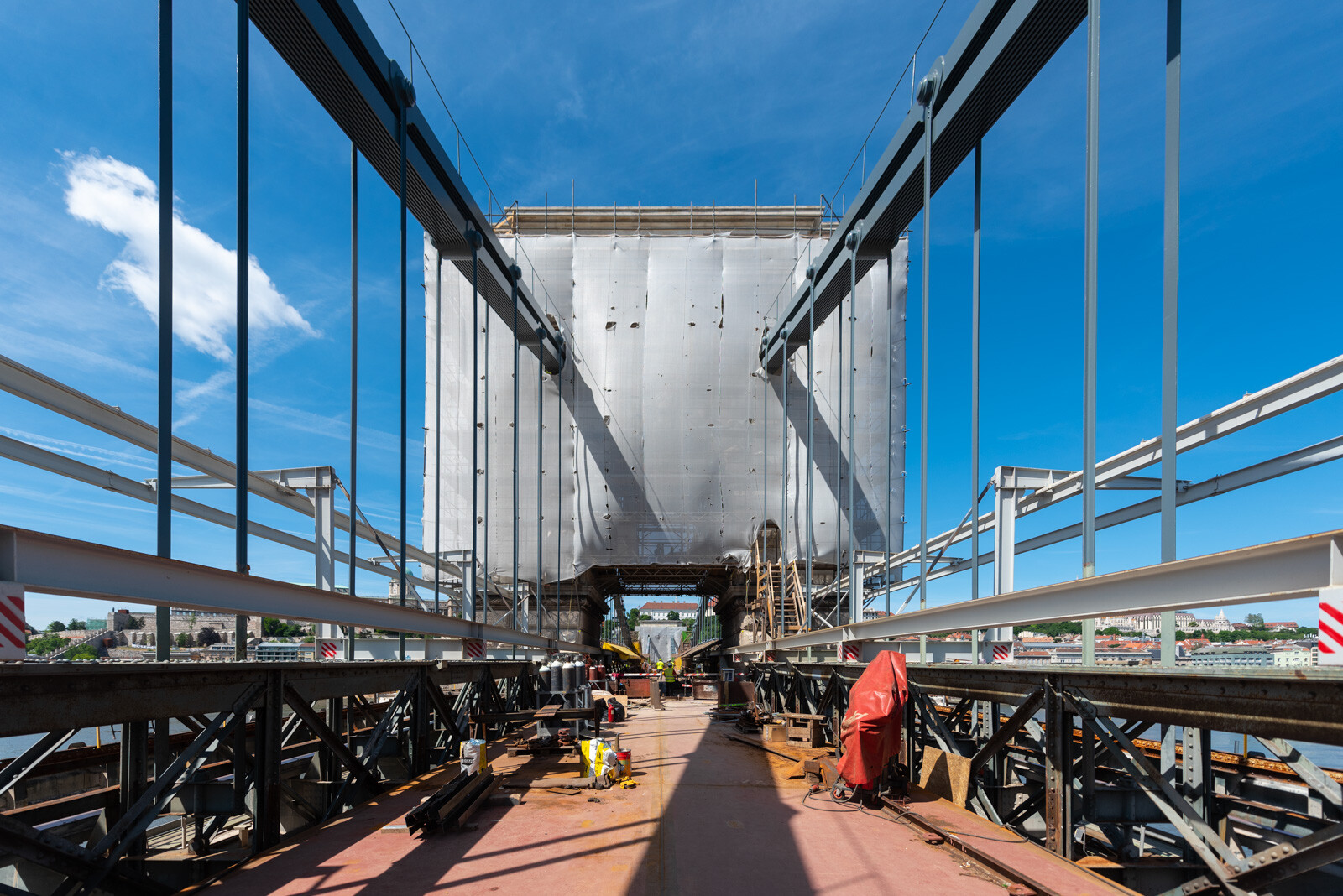 Az A-Híd Zrt. továbbra is gőzerővel dolgozik a Lánchíd felújításán. A helyszínen folyó munkákról rendszeresen közlünk fotókat, a legfrissebb képek május 26-án készültek. A híd újjászületése a Budapesti Közlekedési Központ (BKK) beruházásában zajlik.